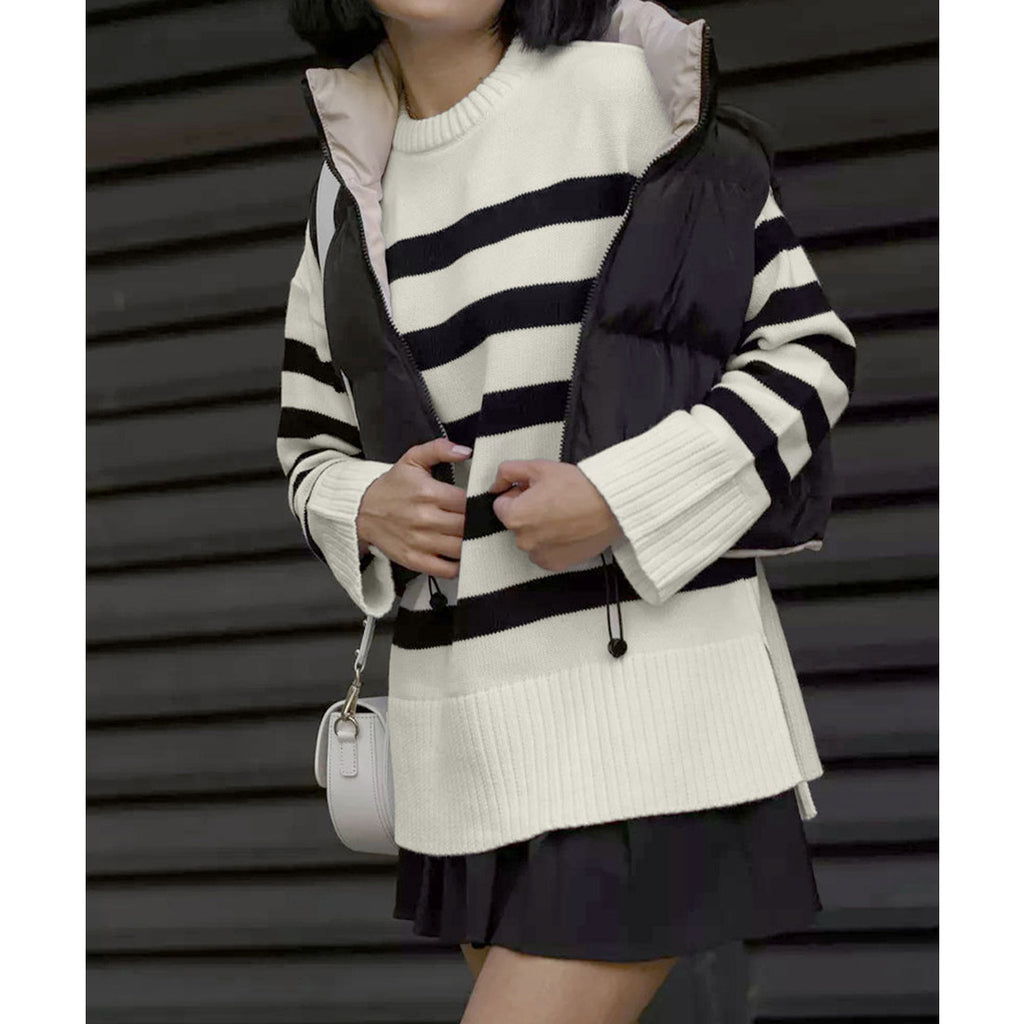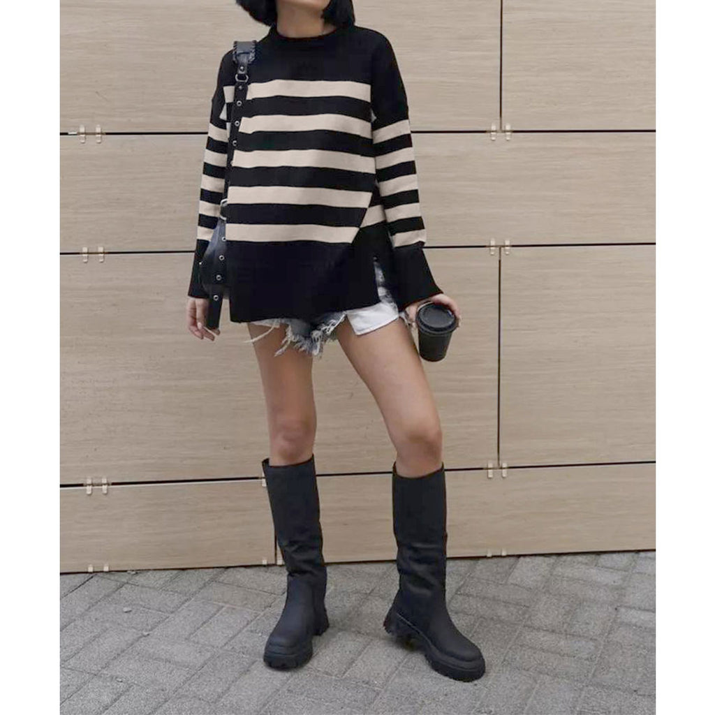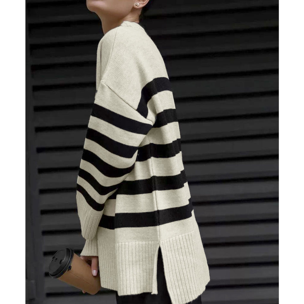 毛衣 圓領套頭衫 側邊開衩 顯瘦 百搭 成人 可愛 休閒 時尚 春秋