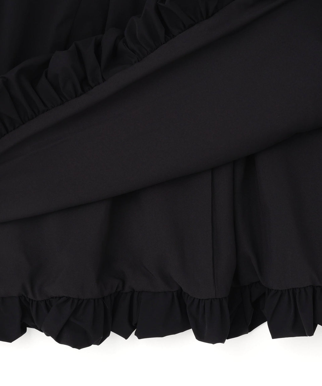 具有豐富感的輪廓引人注目的氣球裙。為了讓腰部看起來更為修身,設計了接縫的氣球輪廓。裙擺向外擴展的設計與充足的插片形成對比,讓腰圍看起來也更加修身。附有方便的斜口袋。後腰部採用橡筋設計,因此穿著感覺FREE。