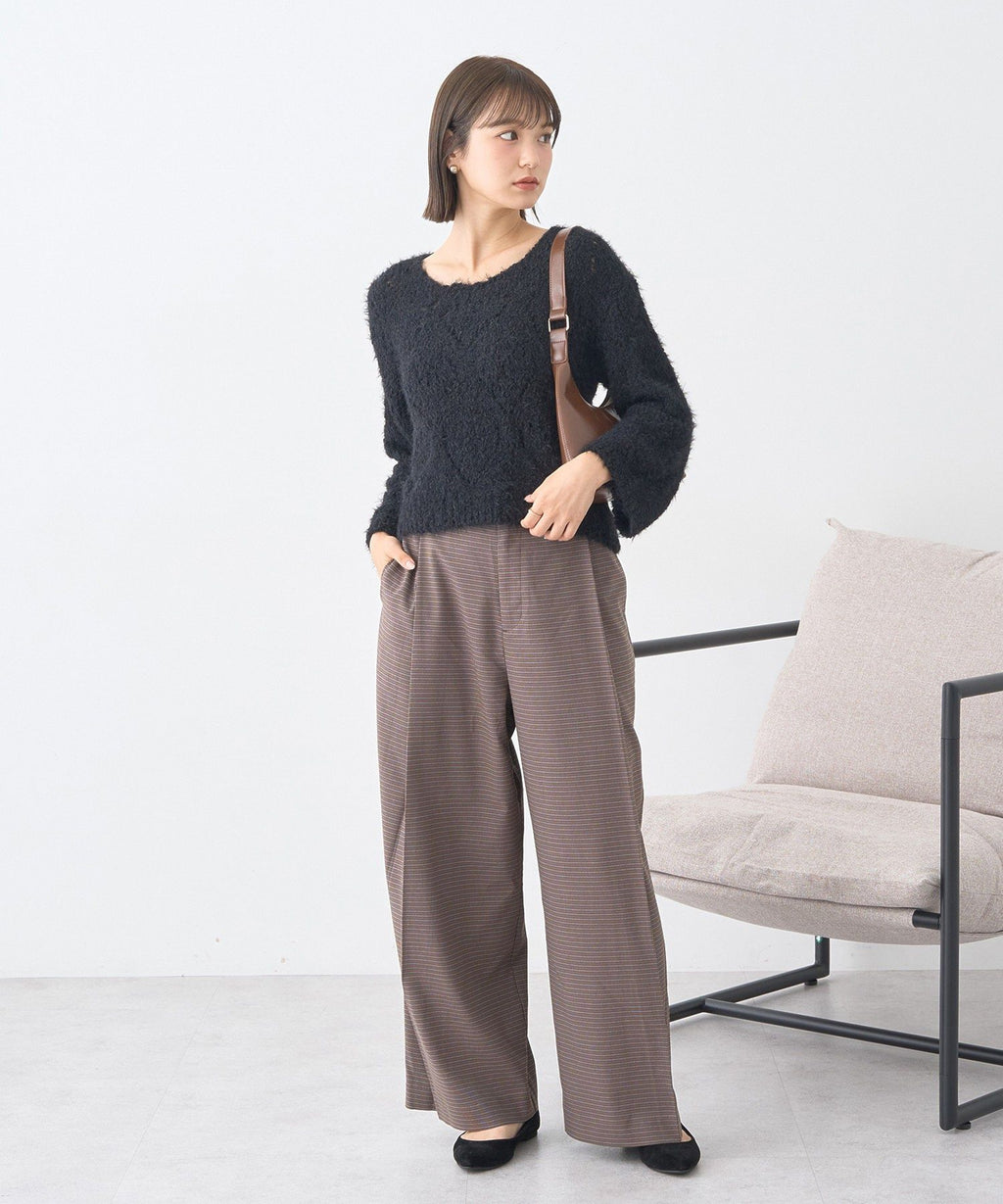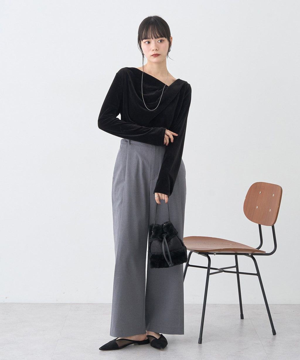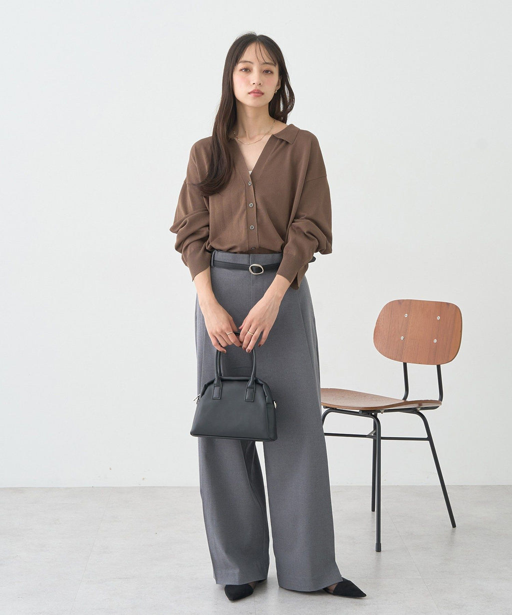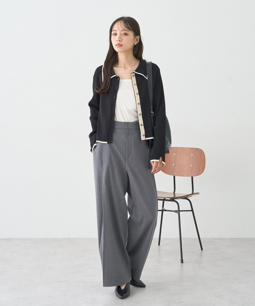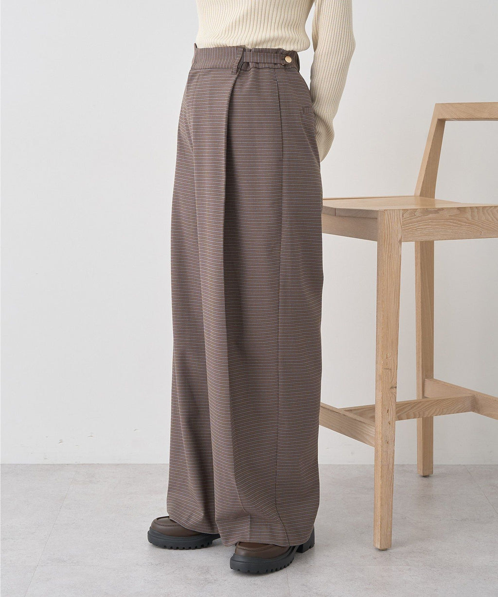 深邃的摺痕給人印象深刻的優雅寬鬆褲。後面鬆緊帶設計和深襠的設計,提供舒適的穿著感受。腰部的標籤位置可以調整,能夠以高腰的方式穿著,這也是一個令人高興的特點。無論搭配什麼上衣,都容易搭配,從休閒到優雅的各種場合都能發揮作用,是一個推薦的單品。