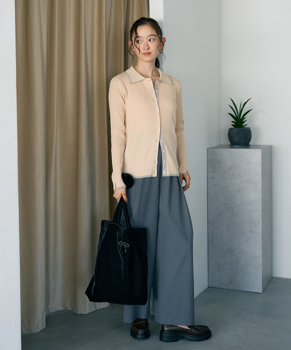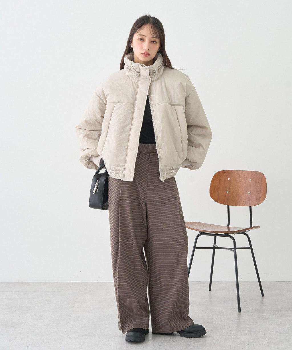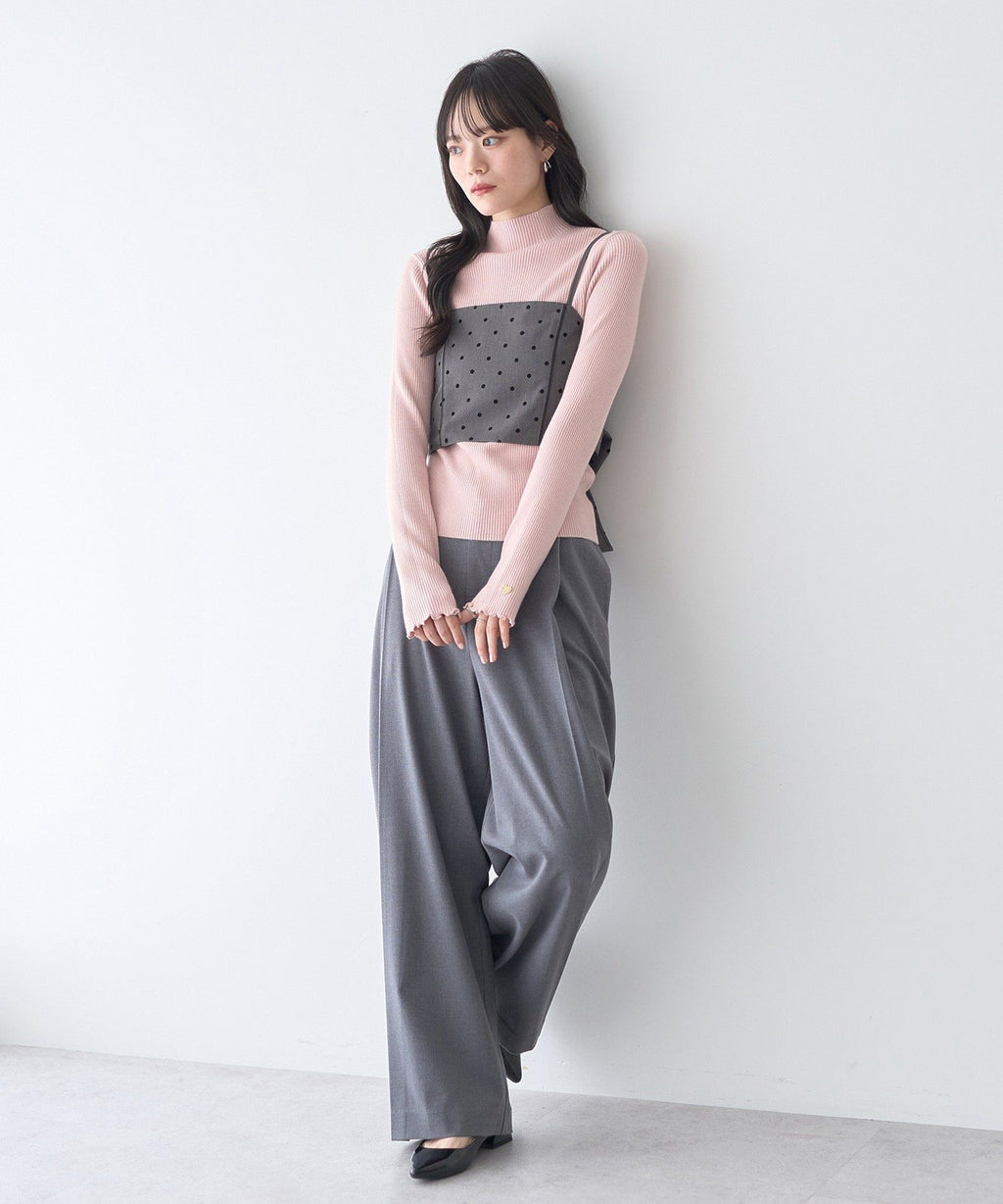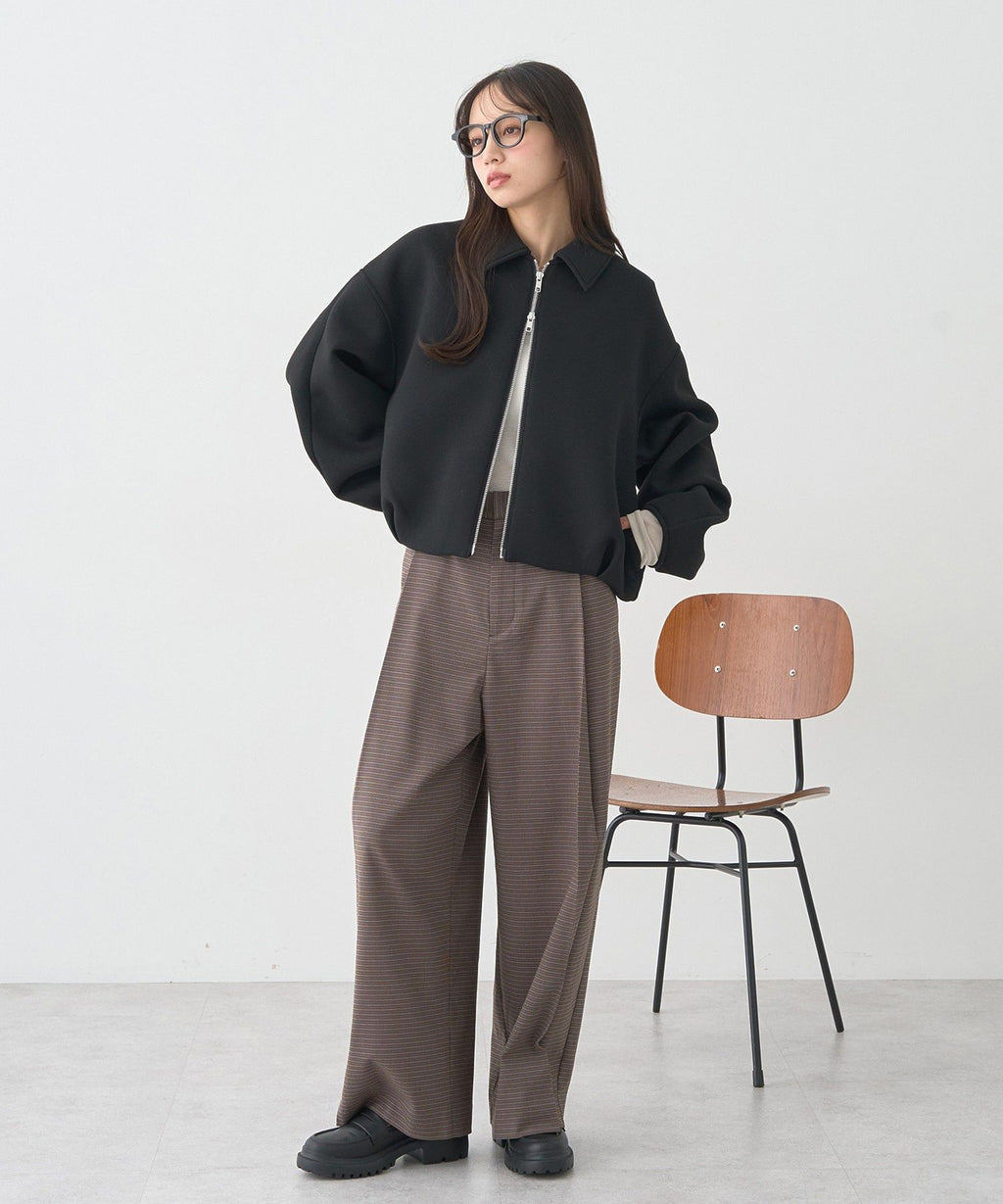 深邃的摺痕給人印象深刻的優雅寬鬆褲。後面鬆緊帶設計和深襠的設計,提供舒適的穿著感受。腰部的標籤位置可以調整,能夠以高腰的方式穿著,這也是一個令人高興的特點。無論搭配什麼上衣,都容易搭配,從休閒到優雅的各種場合都能發揮作用,是一個推薦的單品。