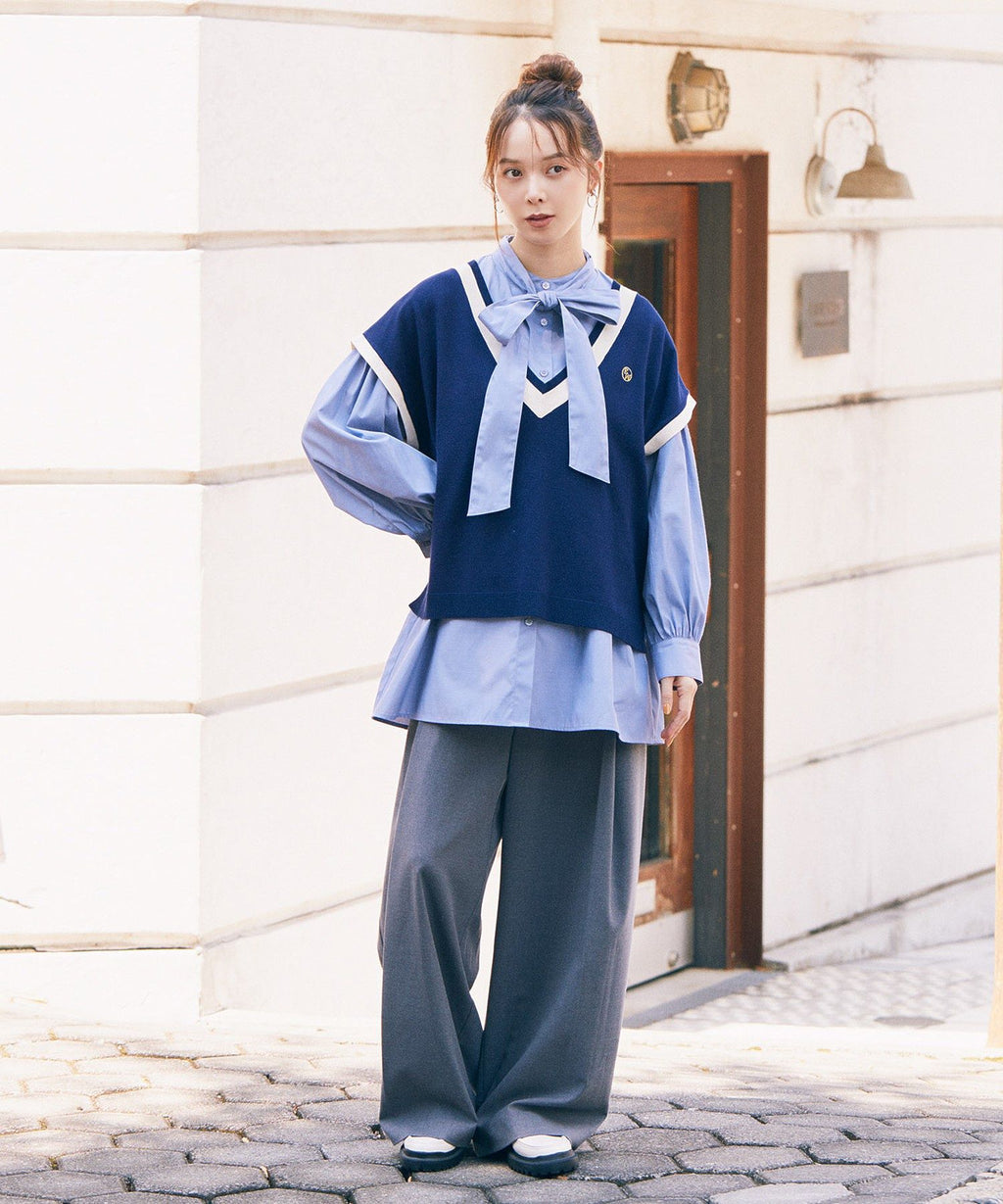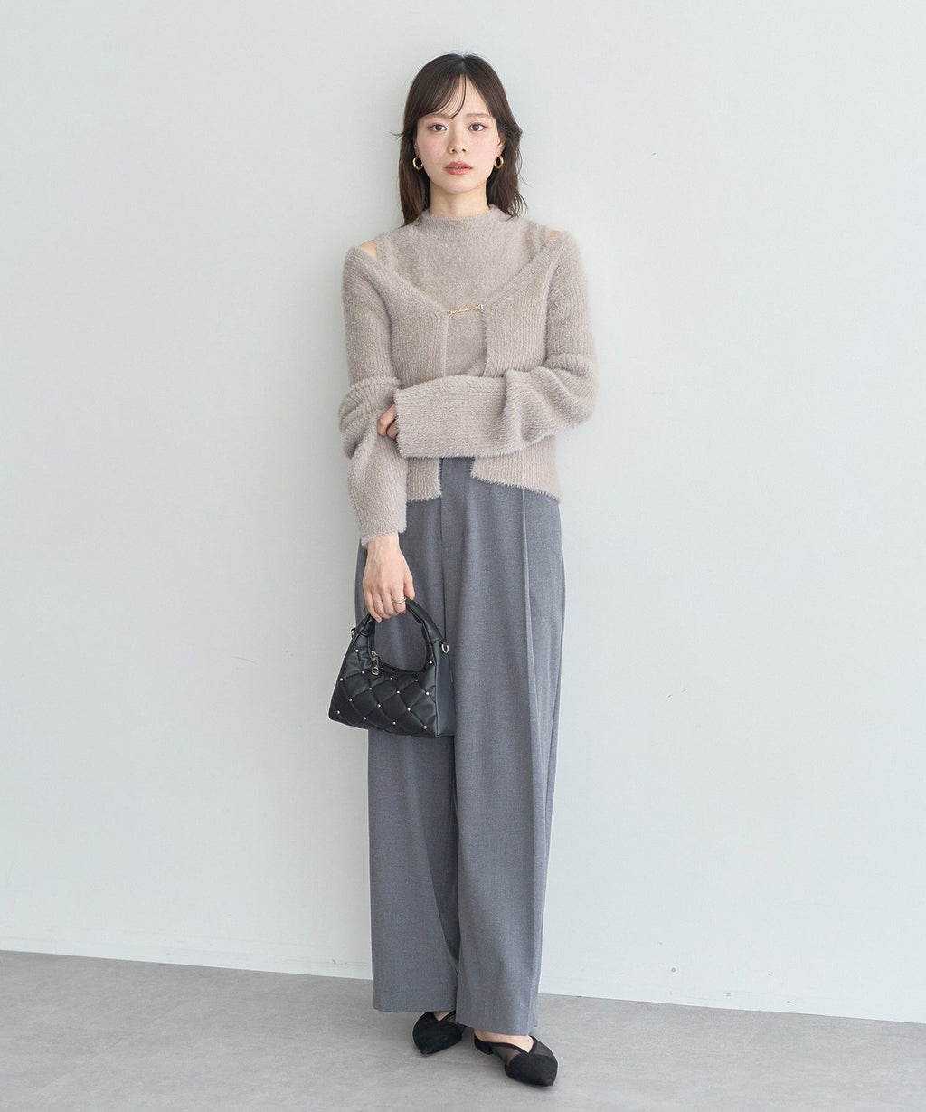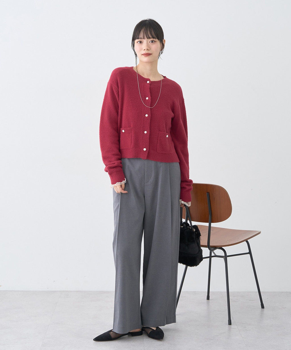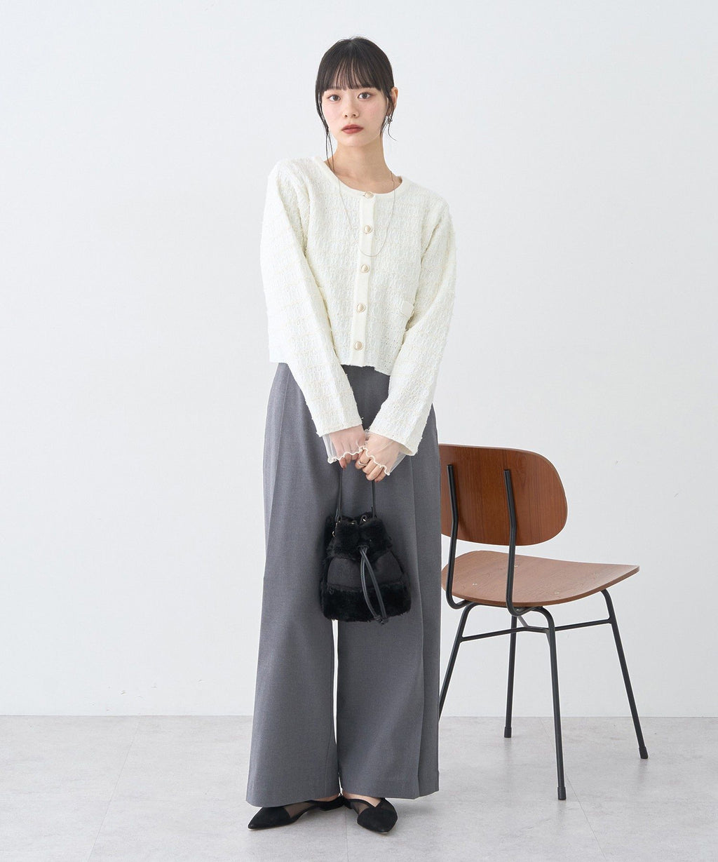 深邃的摺痕給人印象深刻的優雅寬鬆褲。後面鬆緊帶設計和深襠的設計,提供舒適的穿著感受。腰部的標籤位置可以調整,能夠以高腰的方式穿著,這也是一個令人高興的特點。無論搭配什麼上衣,都容易搭配,從休閒到優雅的各種場合都能發揮作用,是一個推薦的單品。