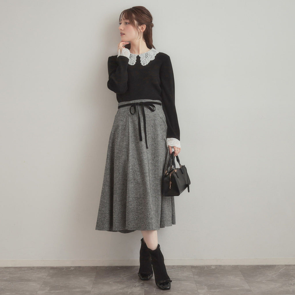 6枚接ぎ的喇叭裙,豐富的分量感可愛,輪廓優美。