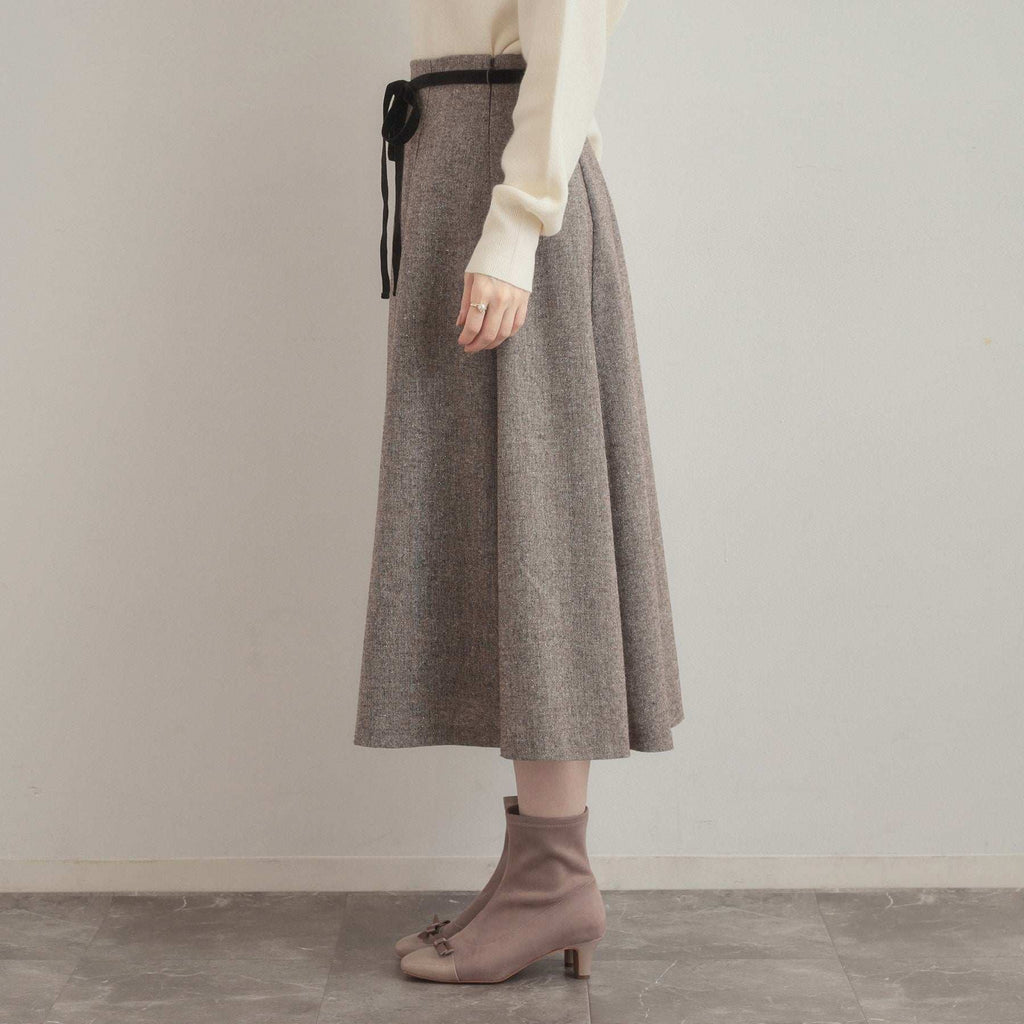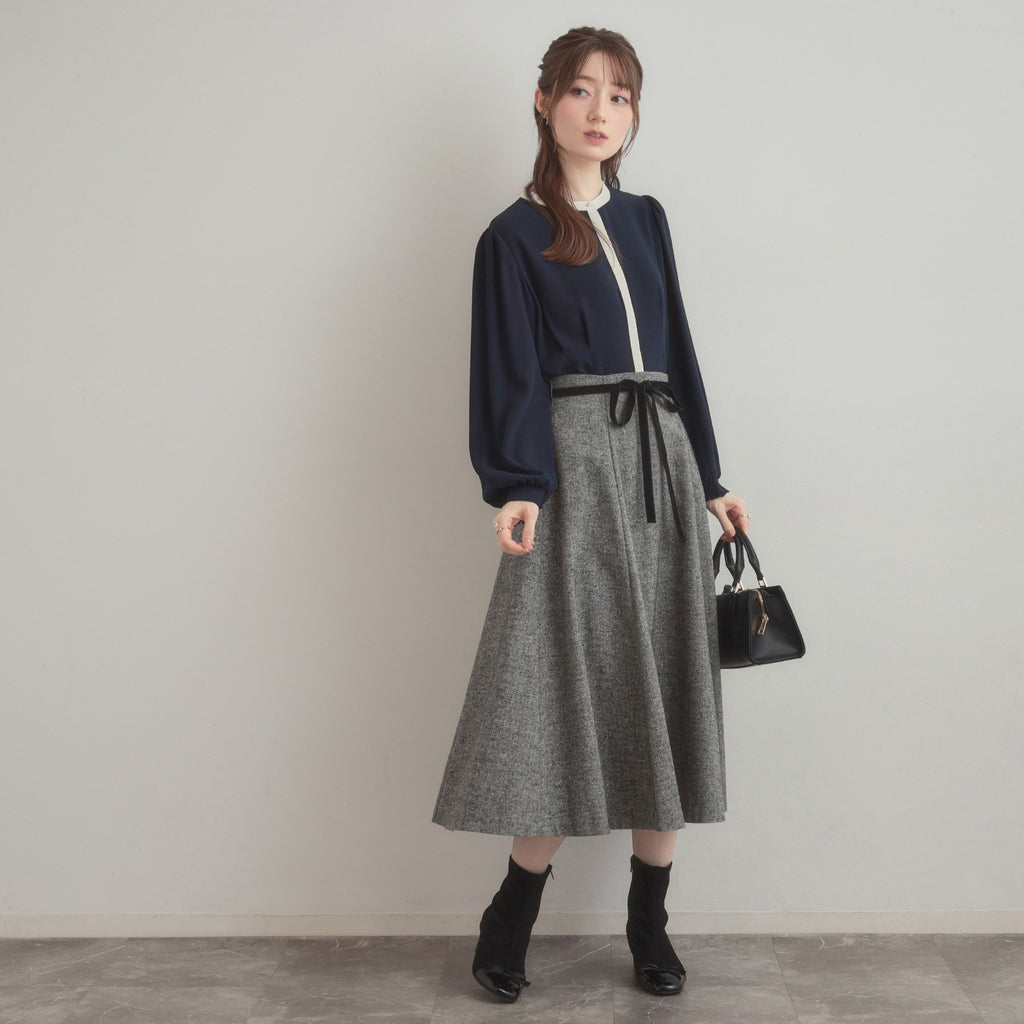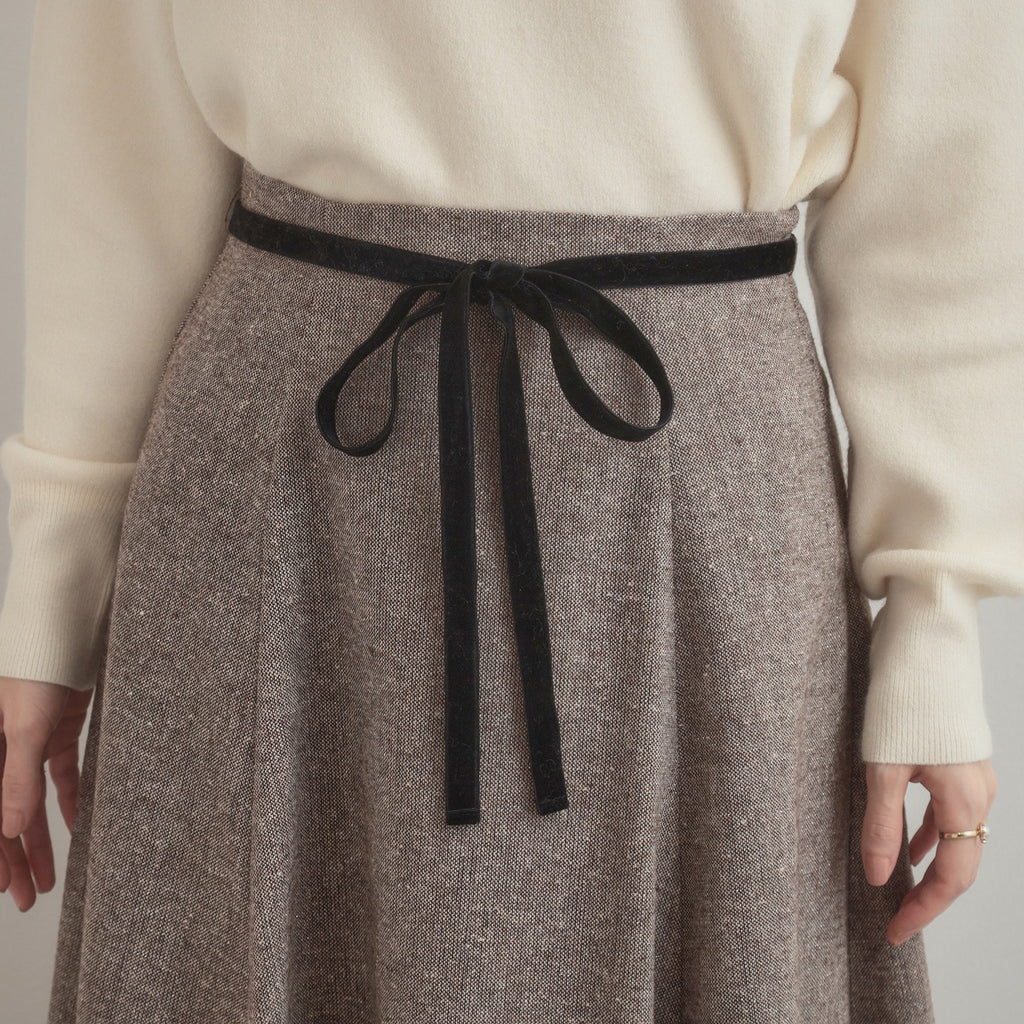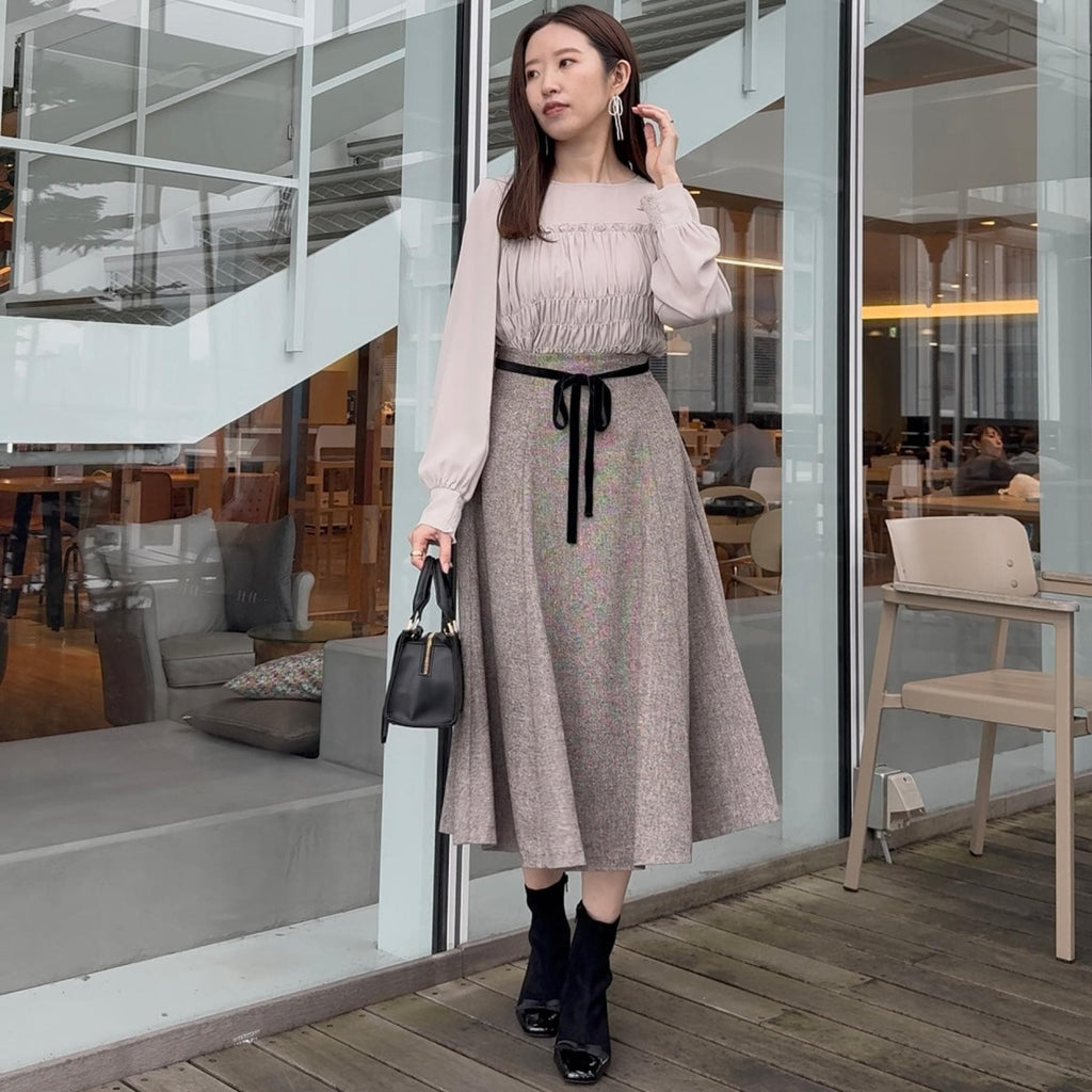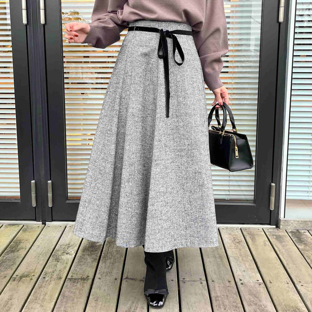 這是一件無論在工作還是休閒場合都能使用的漂亮喇叭輪廓單品!腰圍的絲帶設計讓搭配看起來更加華麗。當搭配設計感強的上衣時,建議可以選擇去掉絲帶的風格。