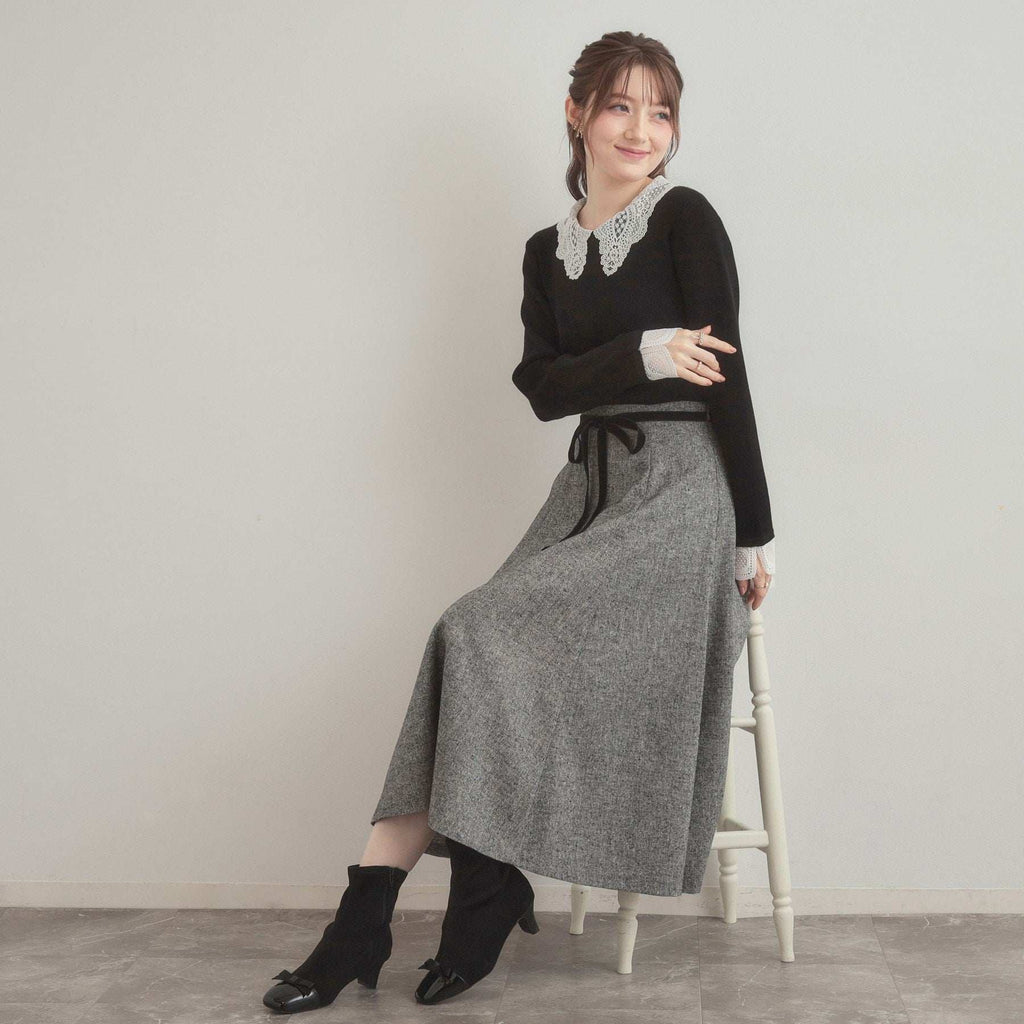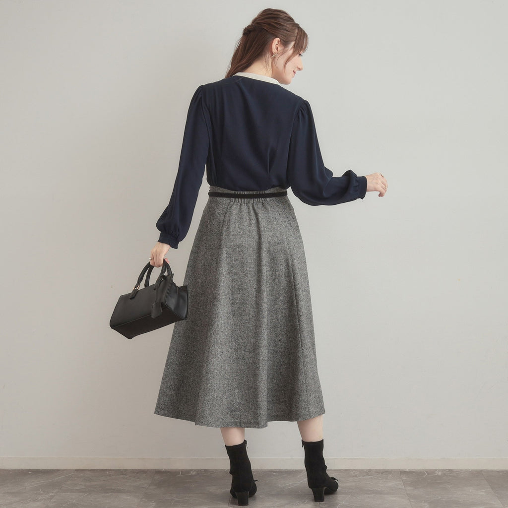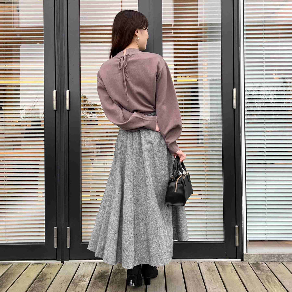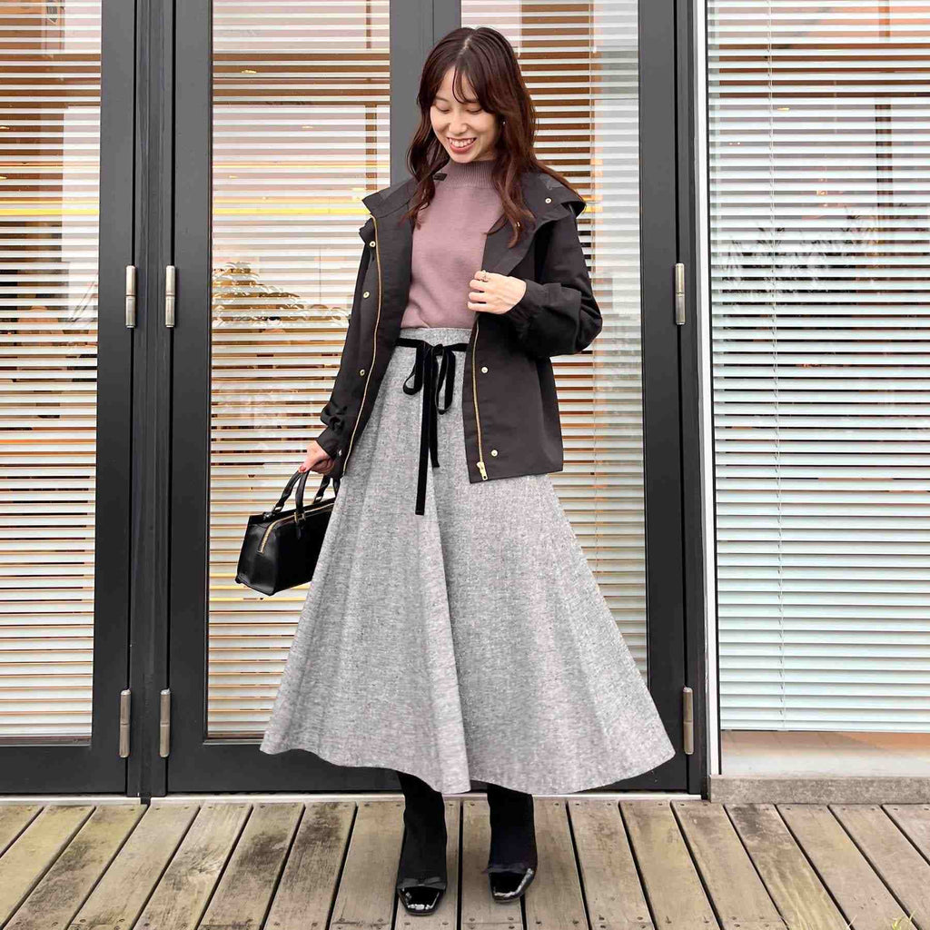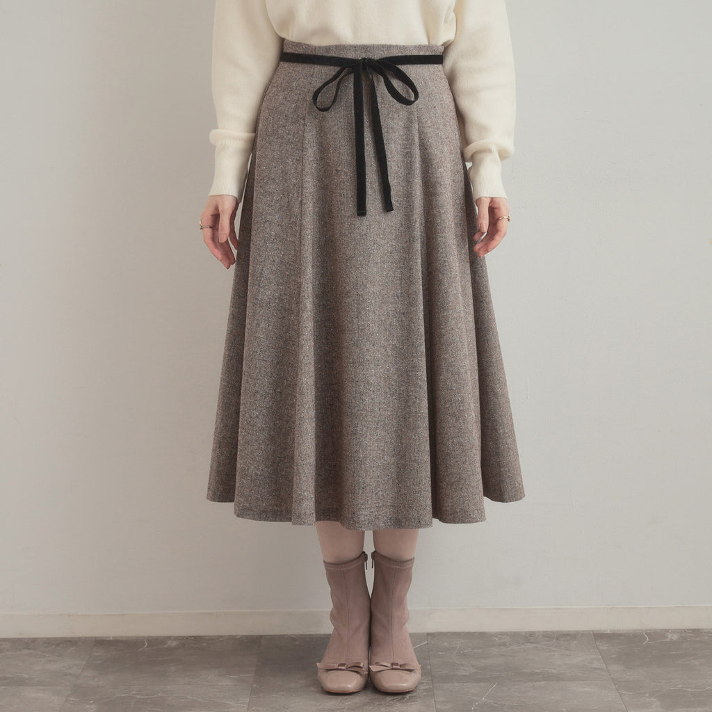 這是一件無論在工作還是休閒場合都能使用的漂亮喇叭輪廓單品!腰圍的絲帶設計讓搭配看起來更加華麗。當搭配設計感強的上衣時,建議可以選擇去掉絲帶的風格。