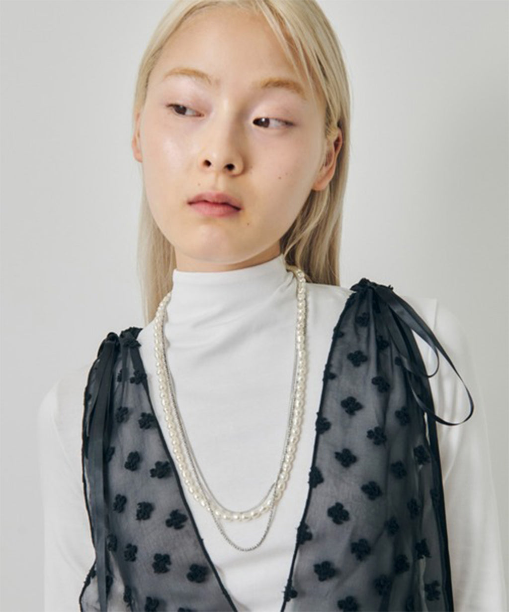 ・將三條項鍊全部重疊佩戴於休閒T恤或毛衣上,為頸部增添豐富感和華麗感。