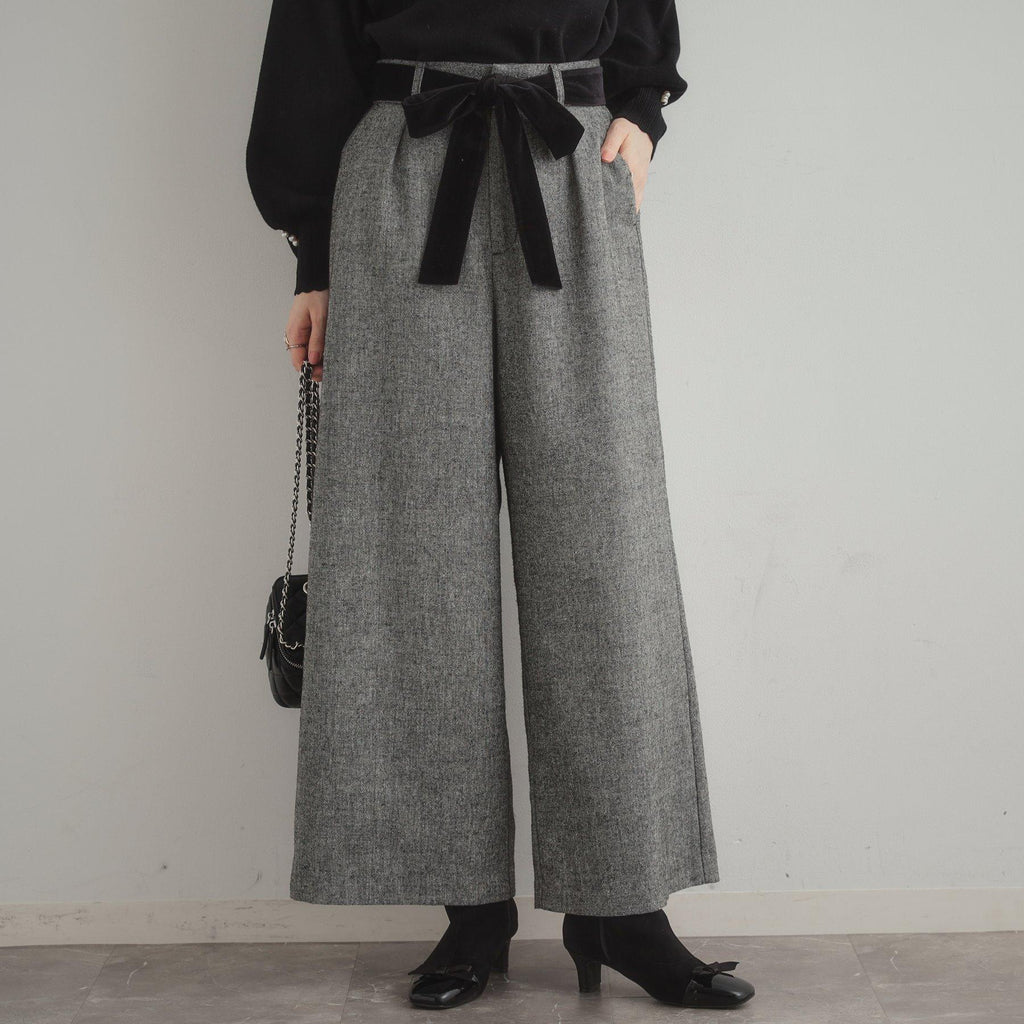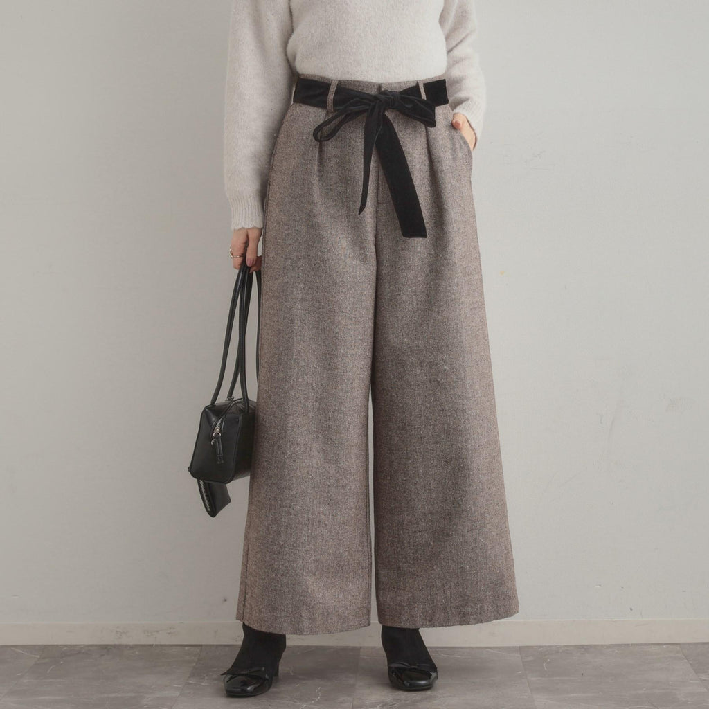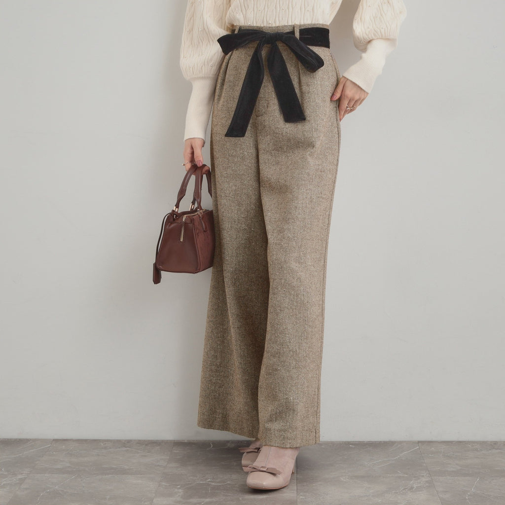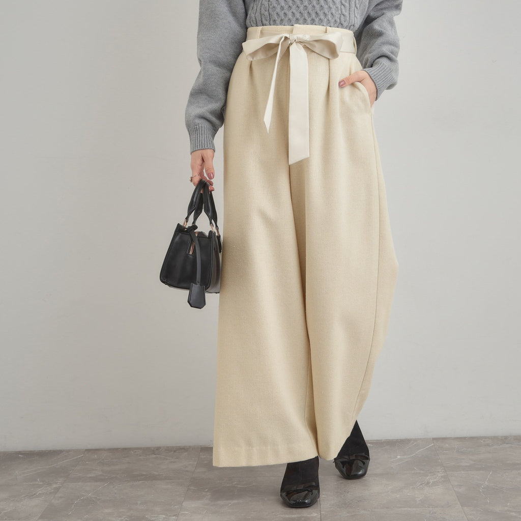 腰圍的絲帶腰帶的配色效果突出的寬鬆褲子