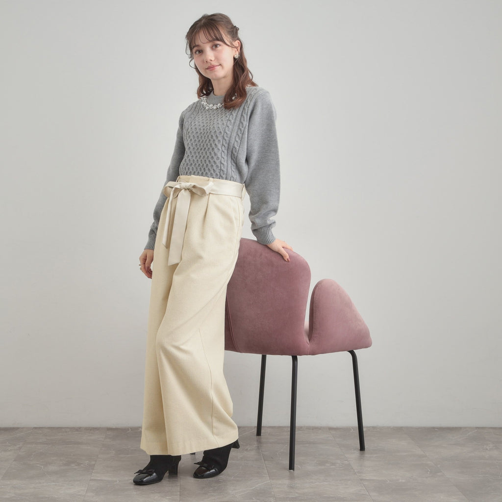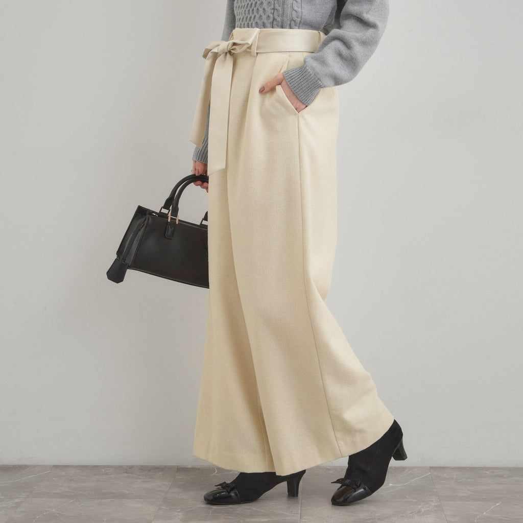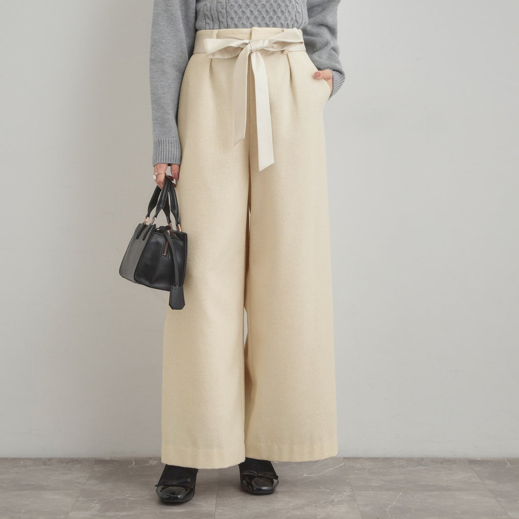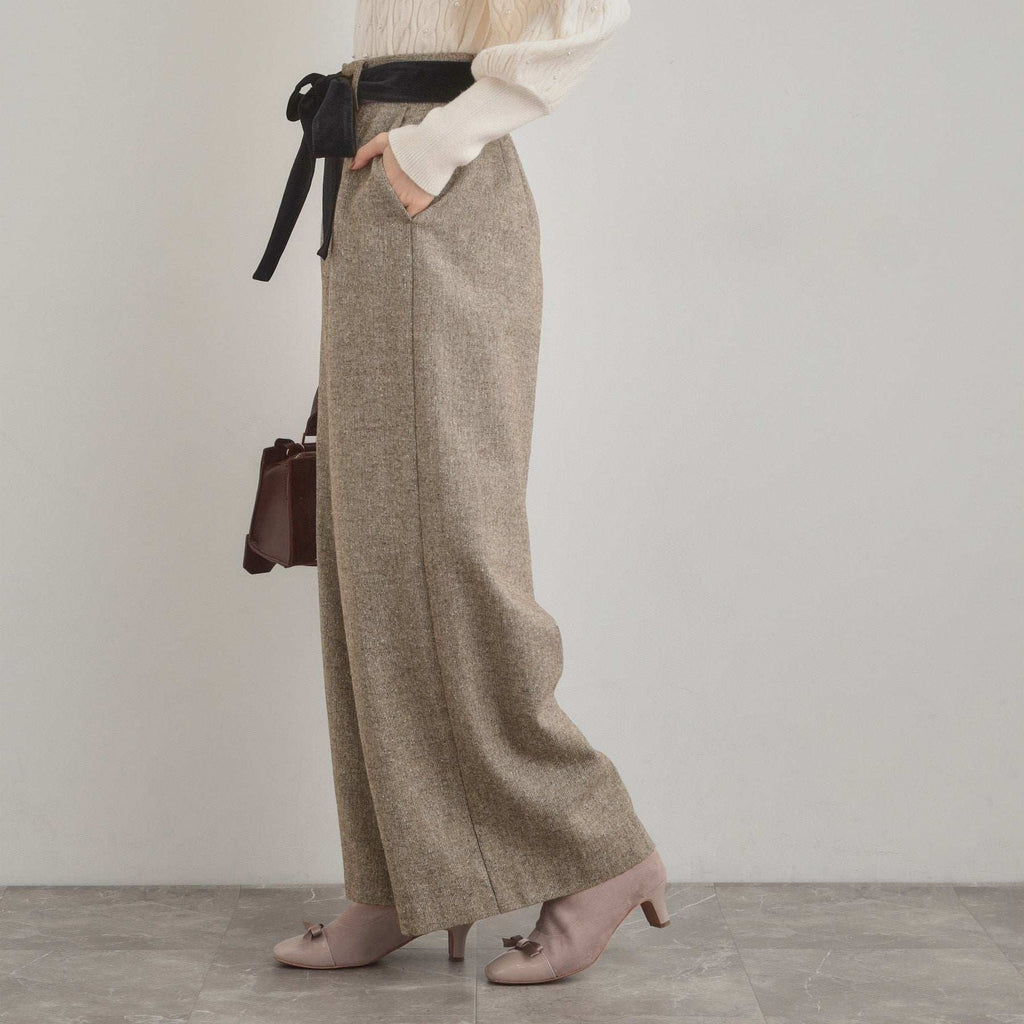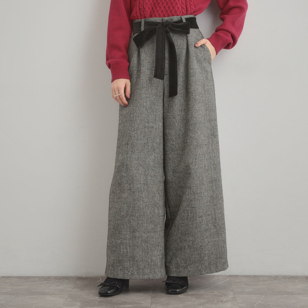腰圍的絲帶腰帶的配色效果突出的寬鬆褲子