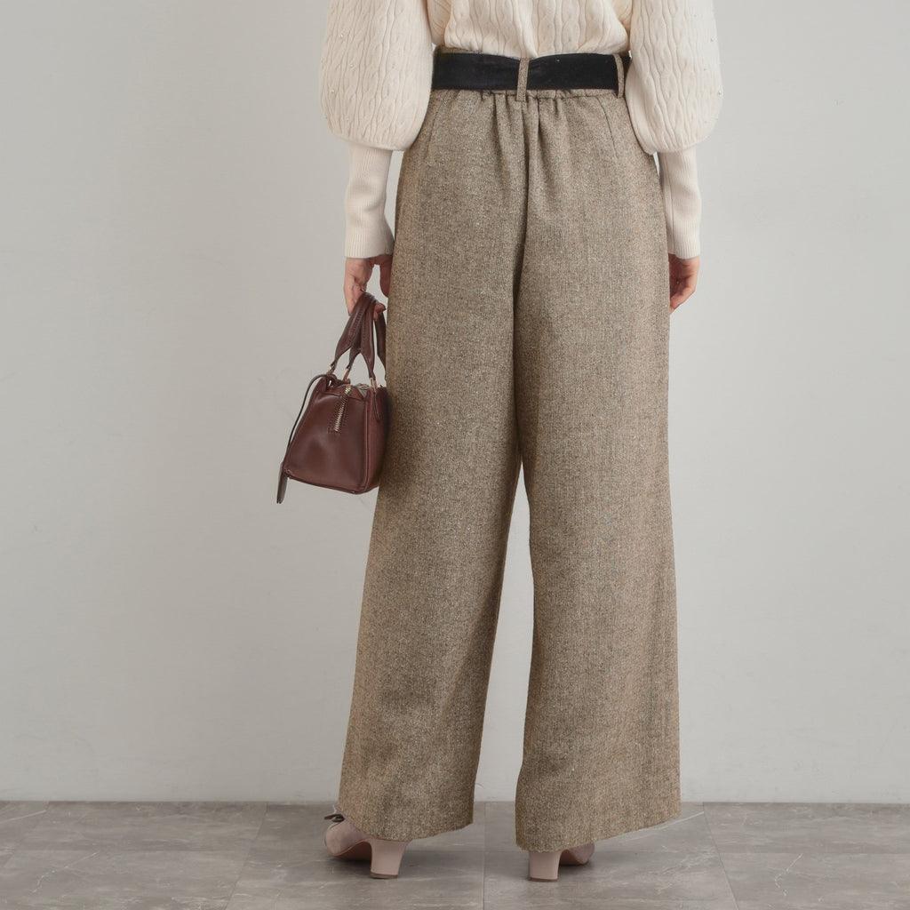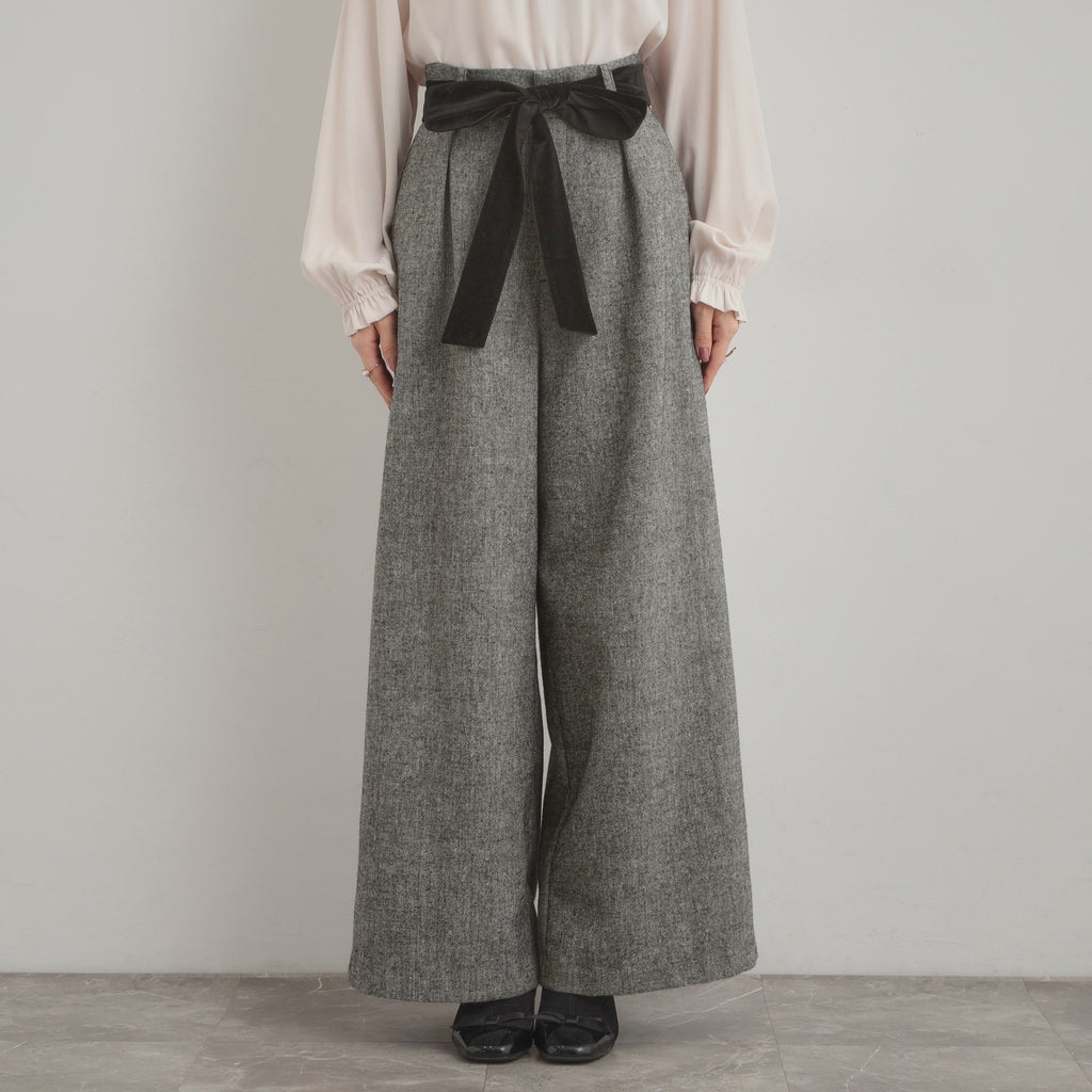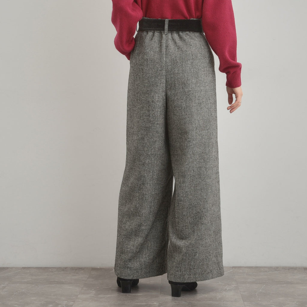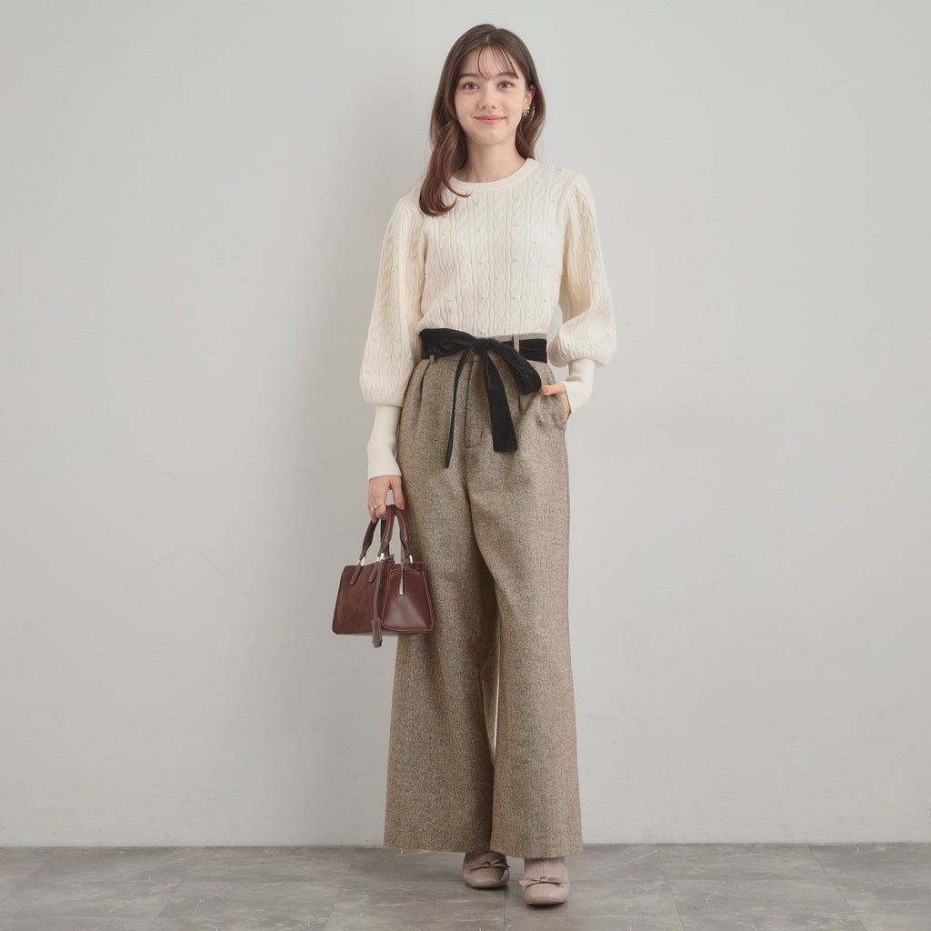 腰圍的絲帶腰帶的配色效果突出的寬鬆褲子