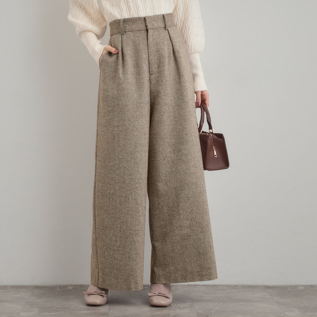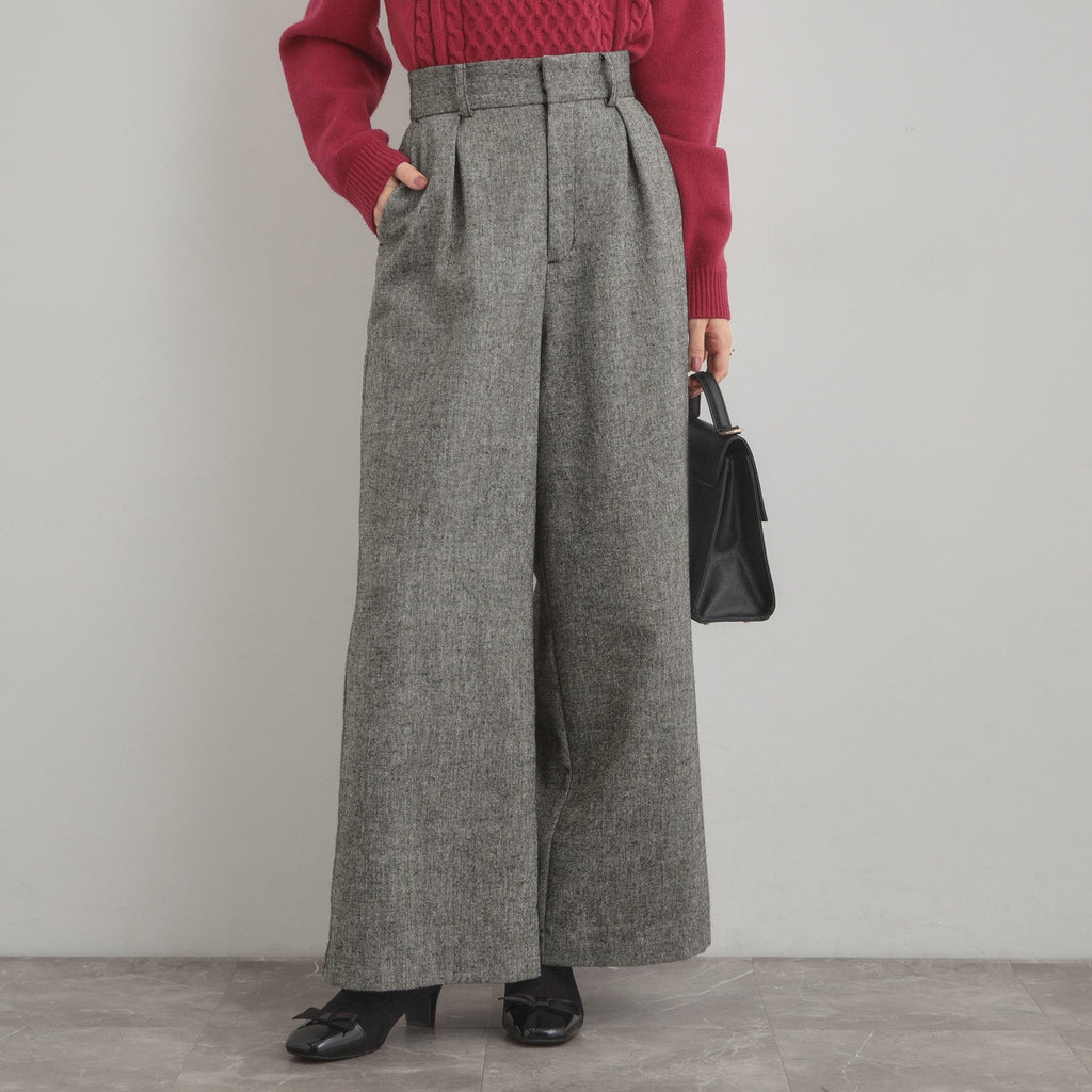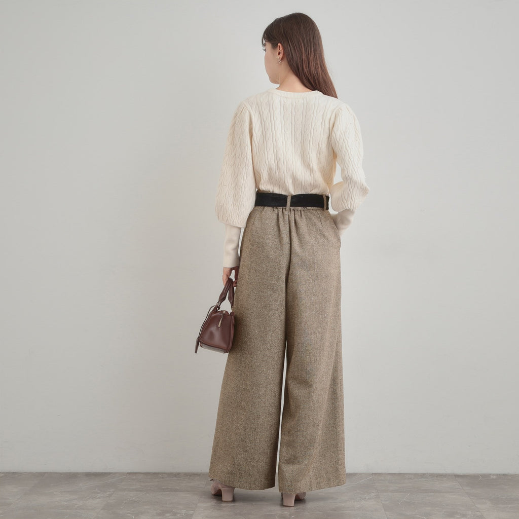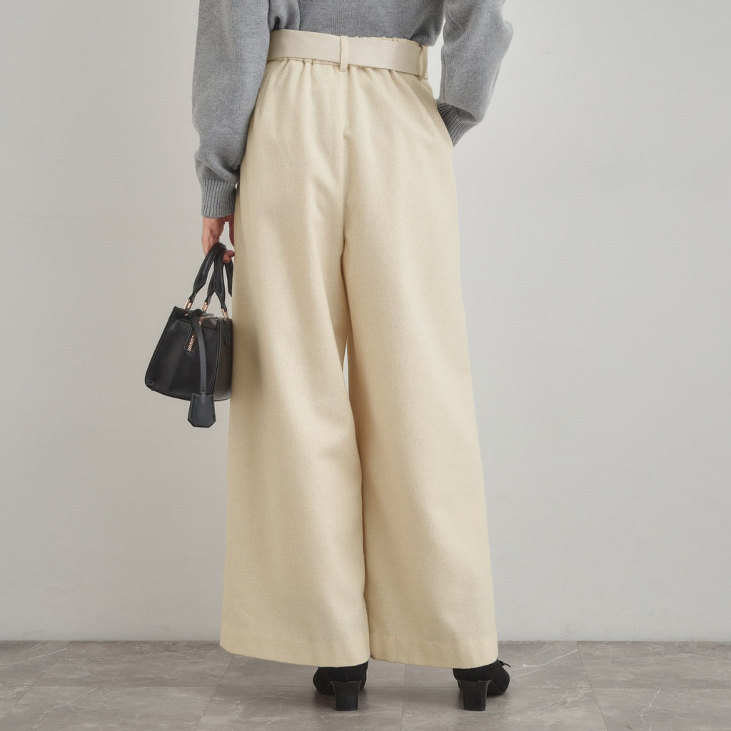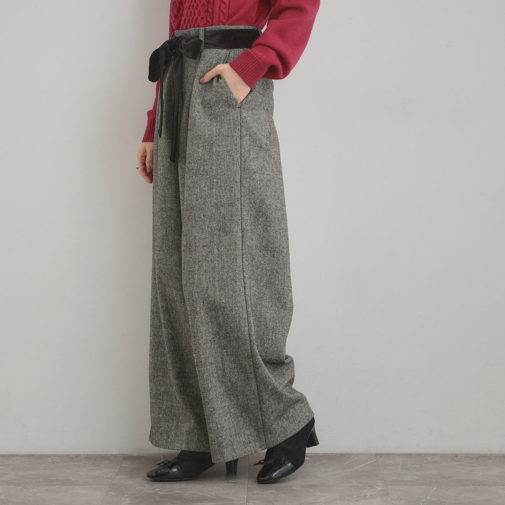 腰圍的絲帶腰帶的配色效果突出的寬鬆褲子