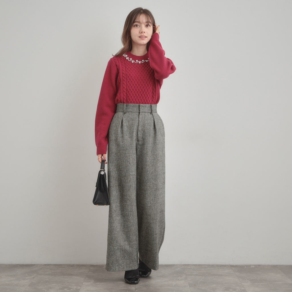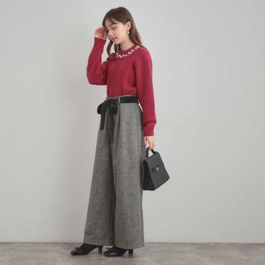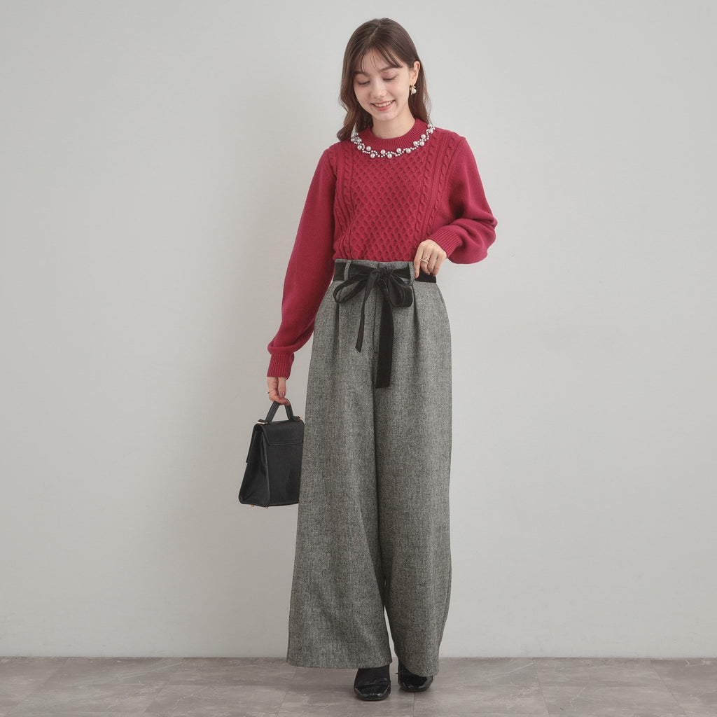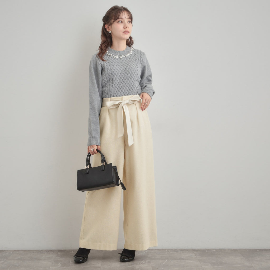 只需搭配簡單的上衣,搭配就會顯得華麗◎當搭配設計感強的上衣時,建議可以將絲帶取下來穿著!不經意閃爍的亮片感是優雅的亮點!