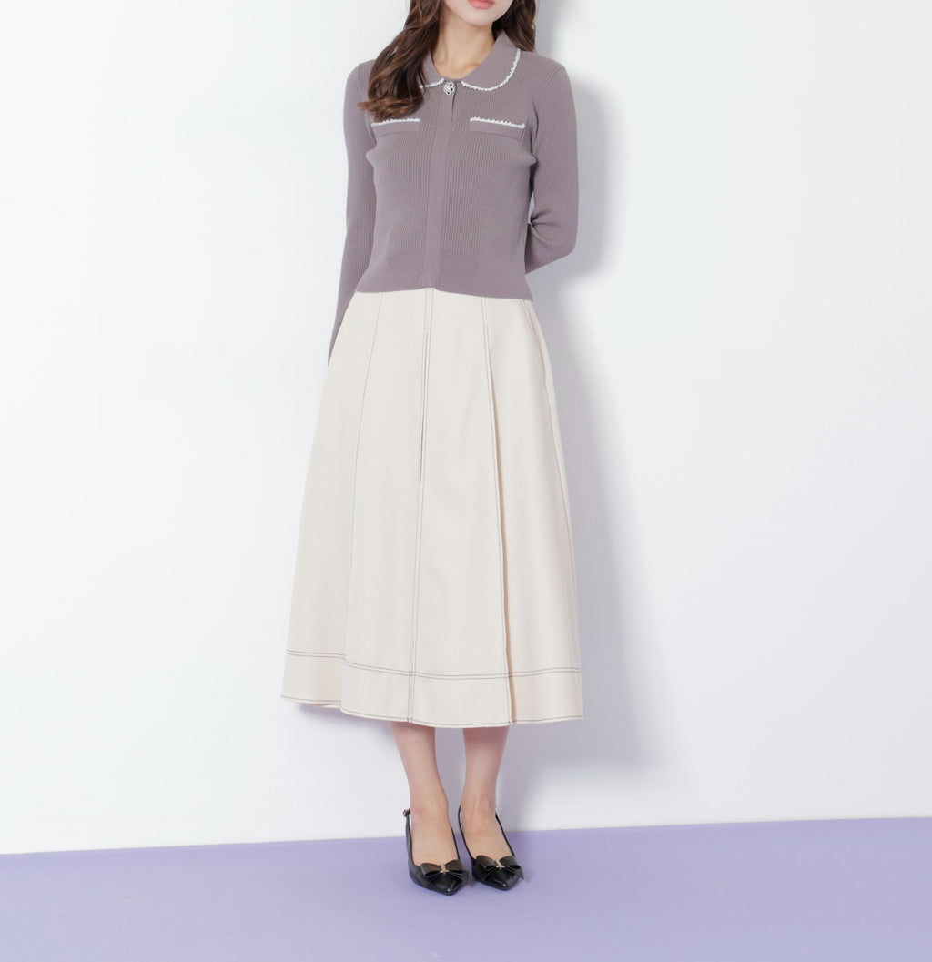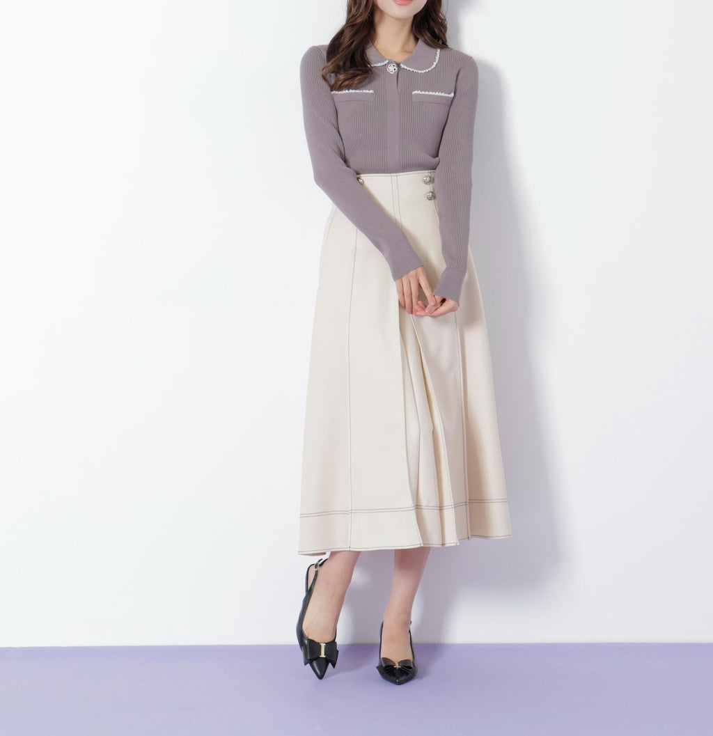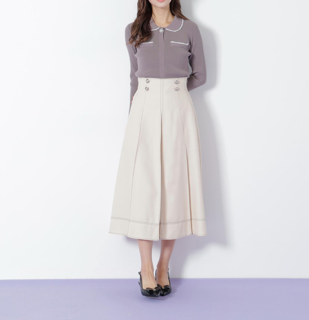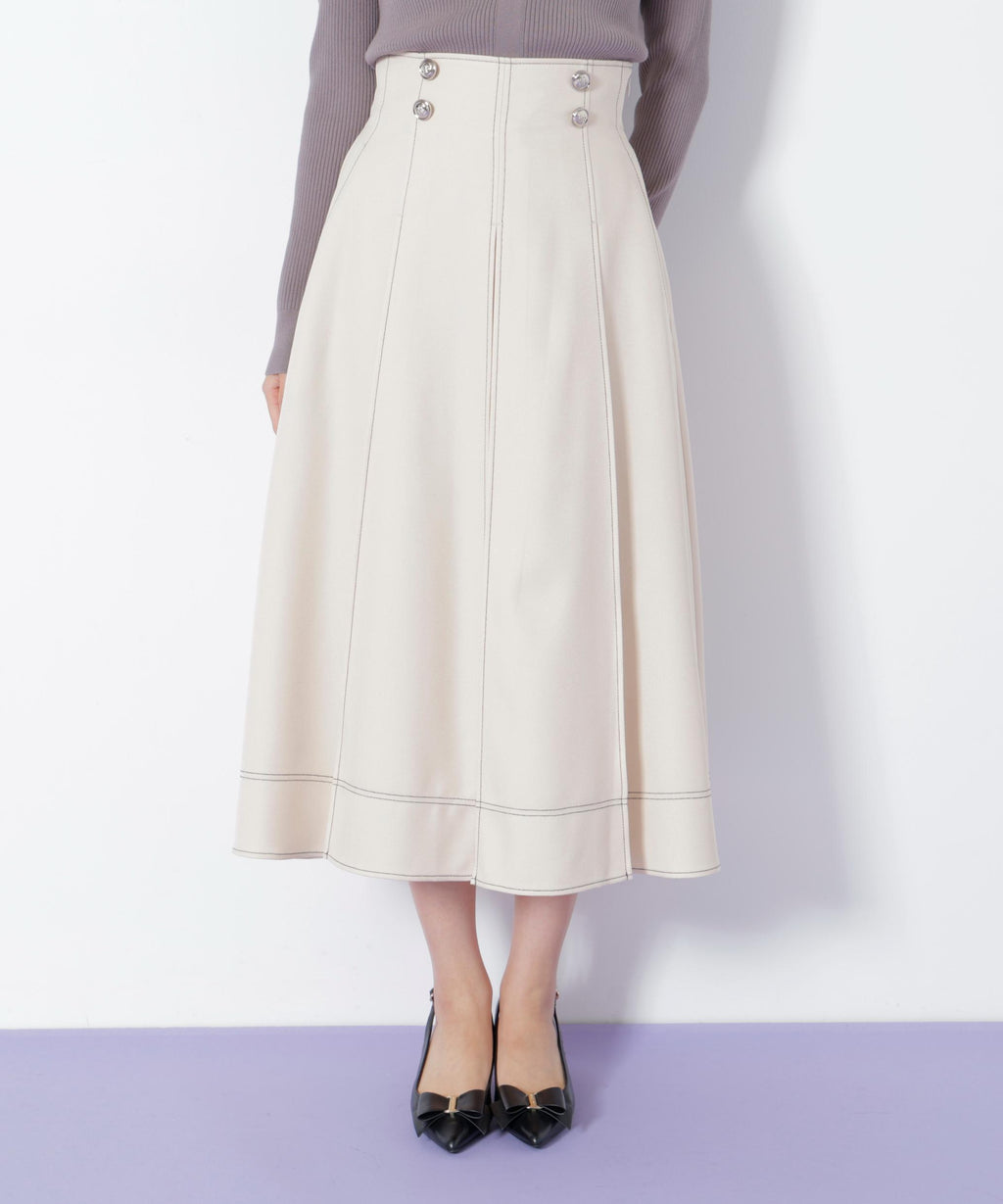 前釦和配色縫線成為亮點的裙子。簡潔的輪廓讓美腿顯現,從休閒到優雅風格都能廣泛應用。這是一個不挑上衣的設計,可以隨意搭配。※由於拍攝時的燈光關係,顏色可能會有所不同。