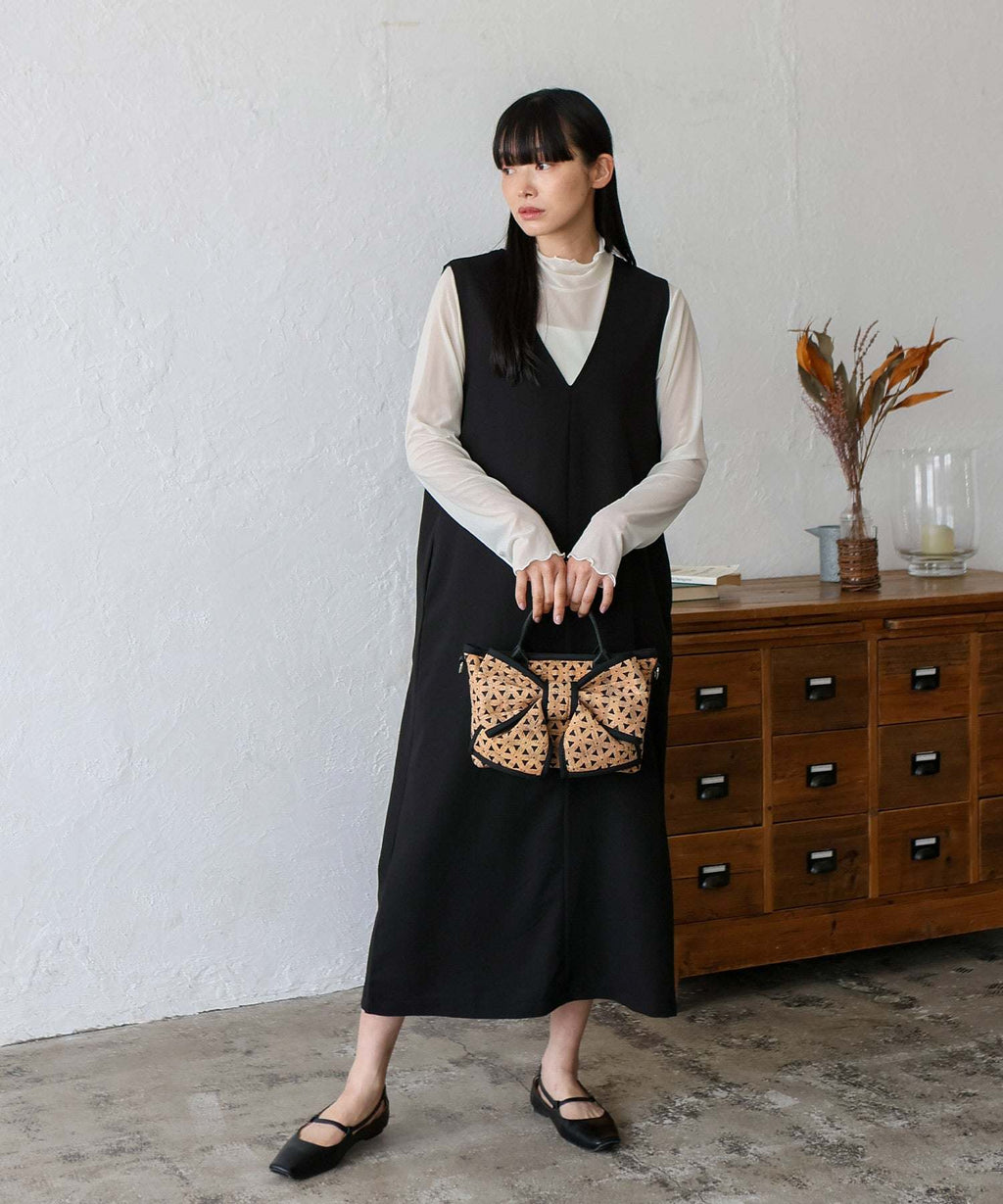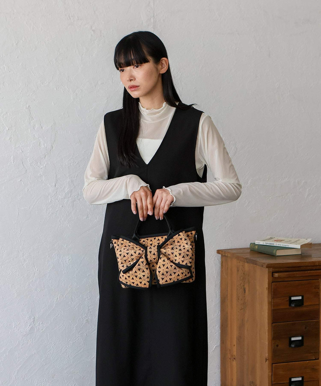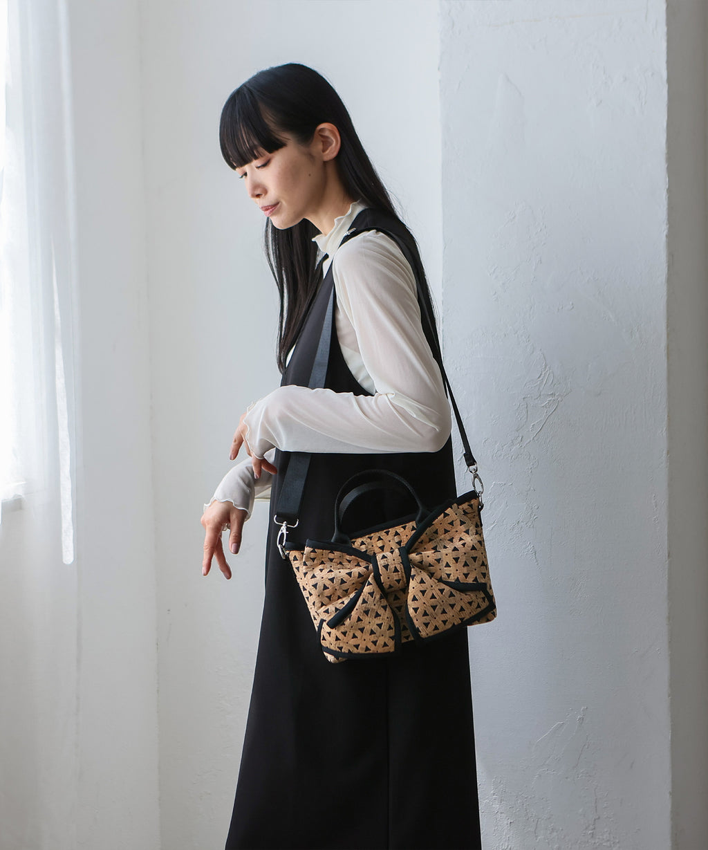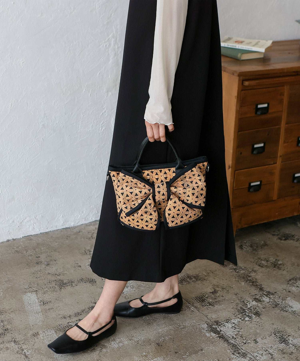個性的プチプラ ビッグトート 素材ミックス クラフト感 休日ルック バカンスシーズン ホリデー ロングハンドル