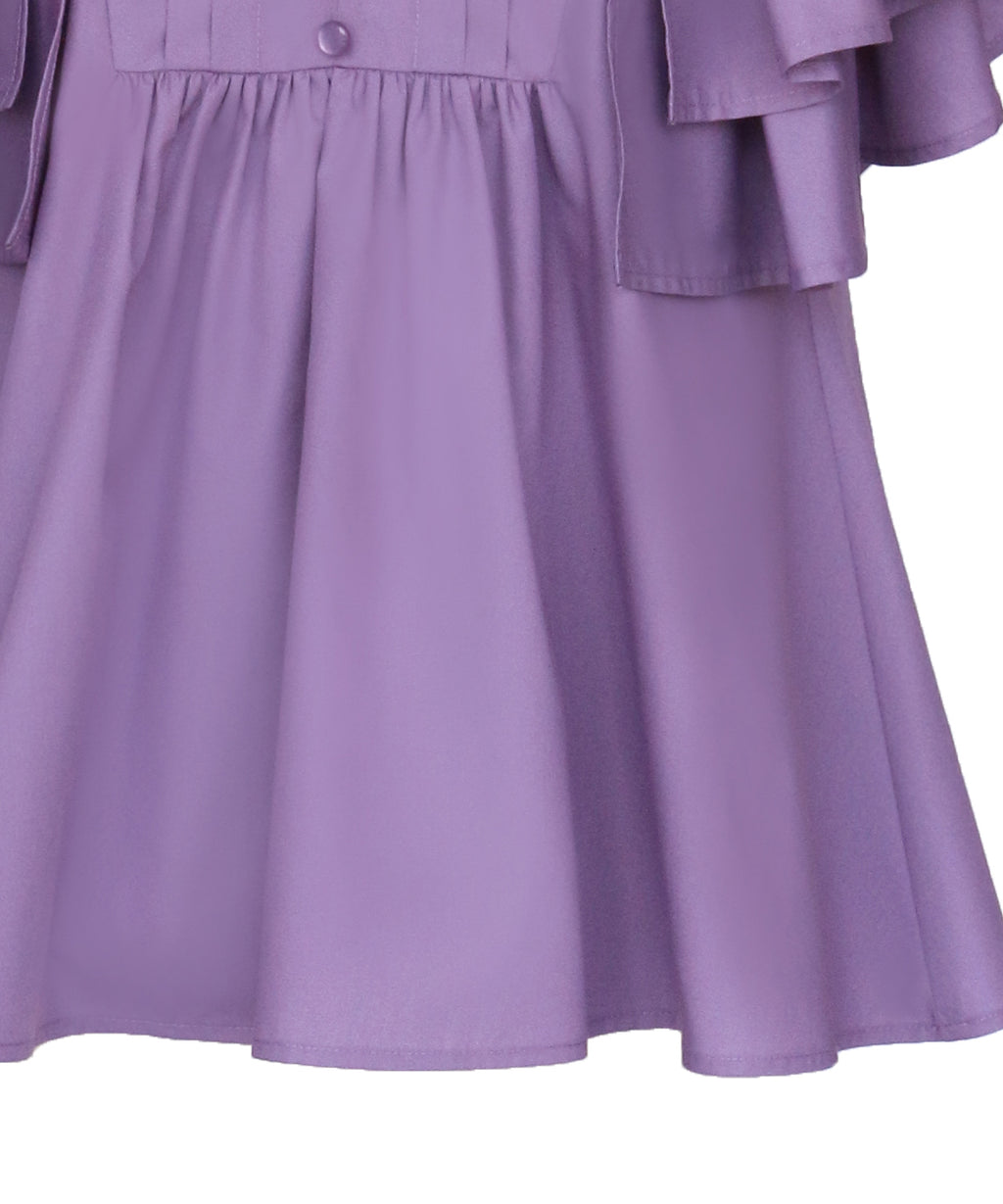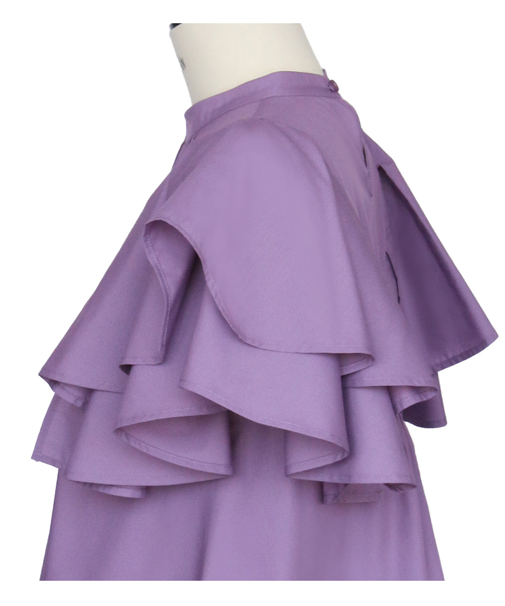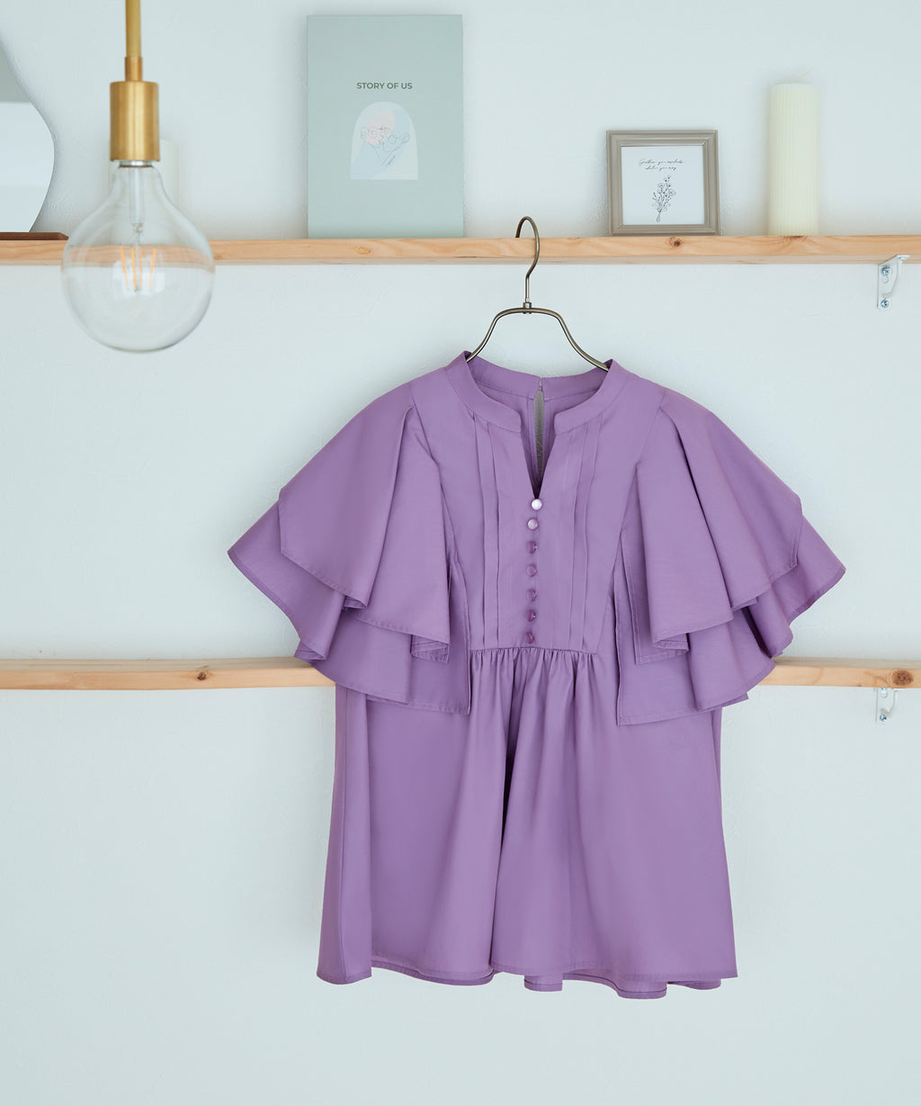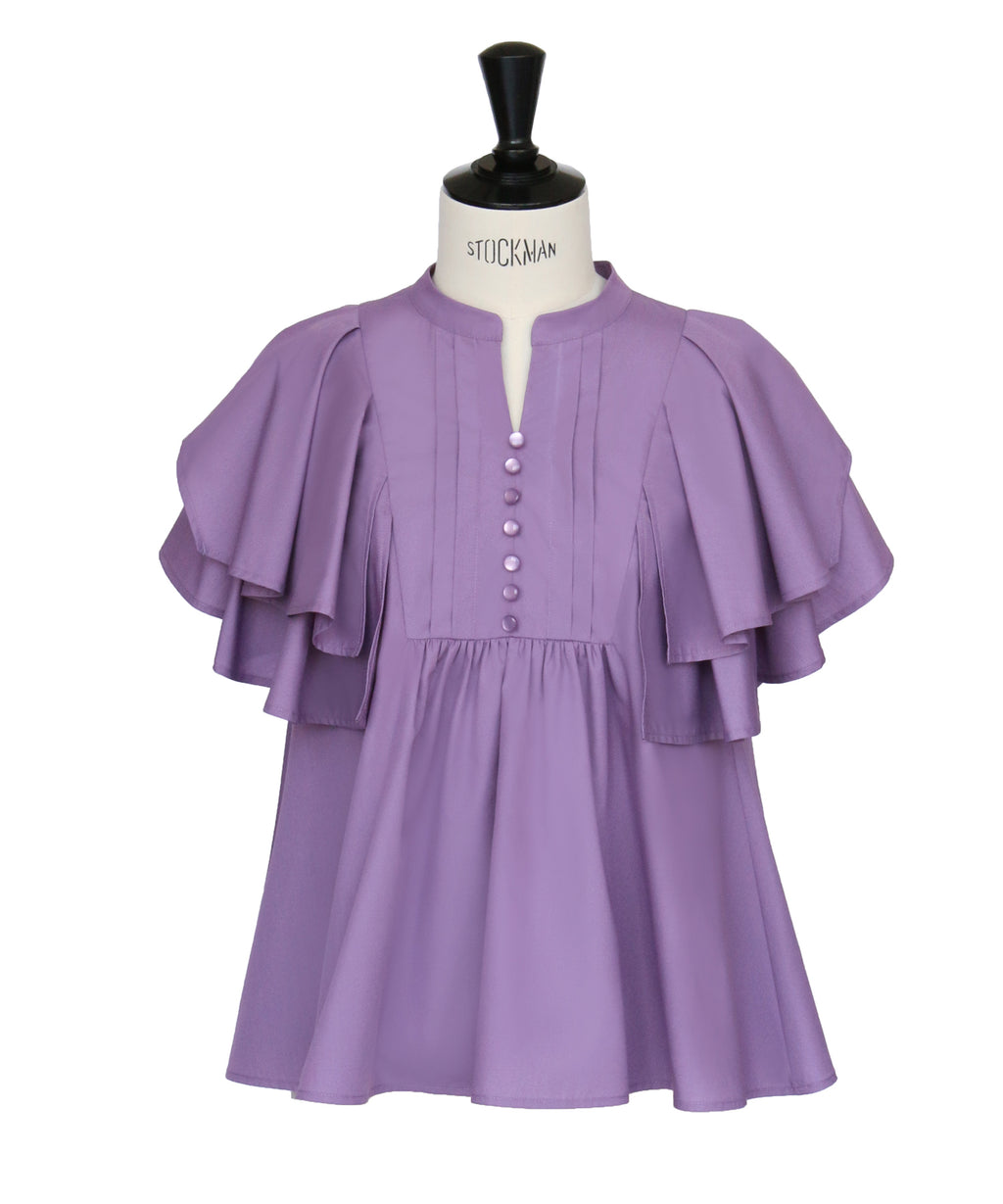 蓬鬆展開的層次披肩的寬鬆袖子,展現女性特有的輕盈感。