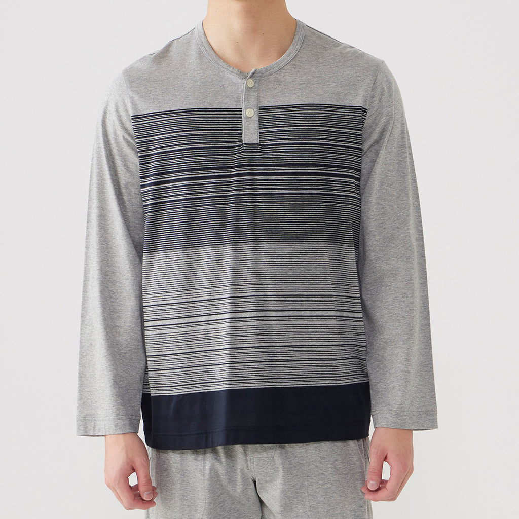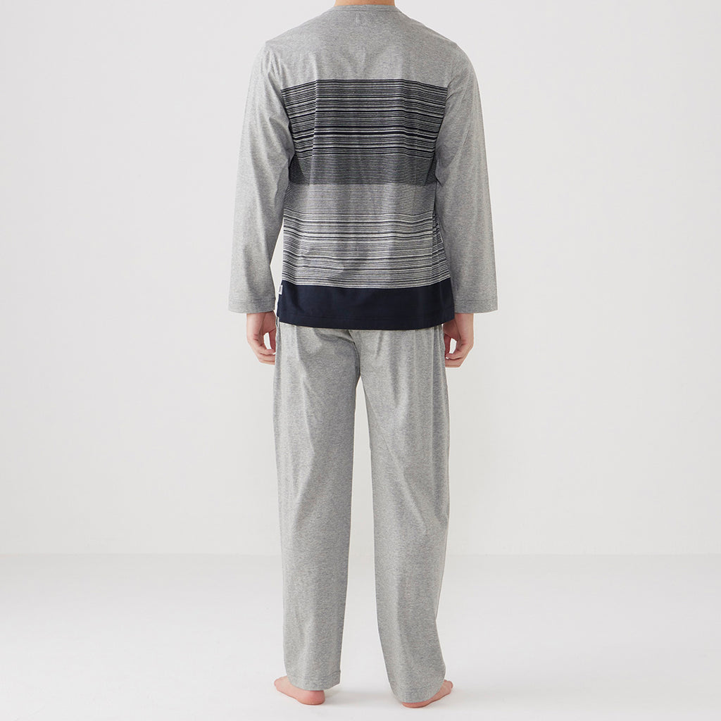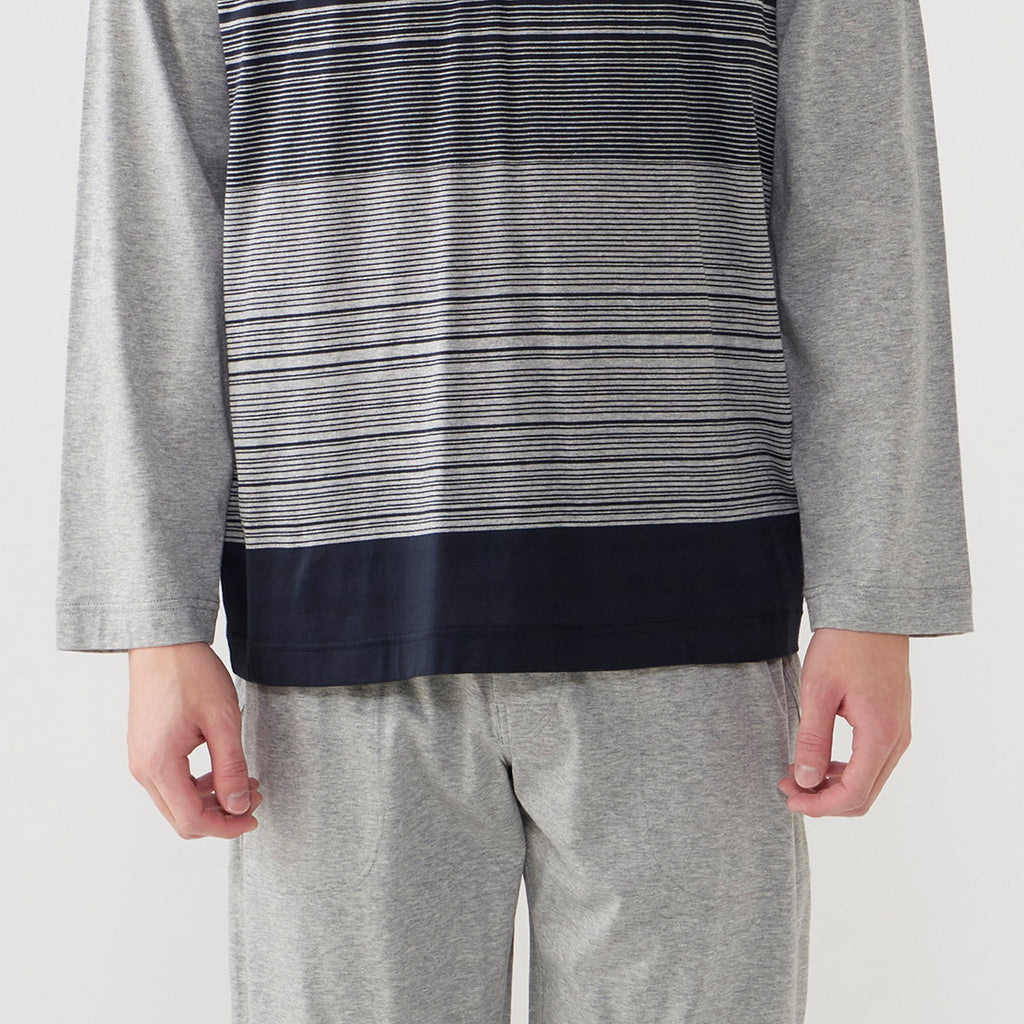 天竺面料條紋針織睡衣。