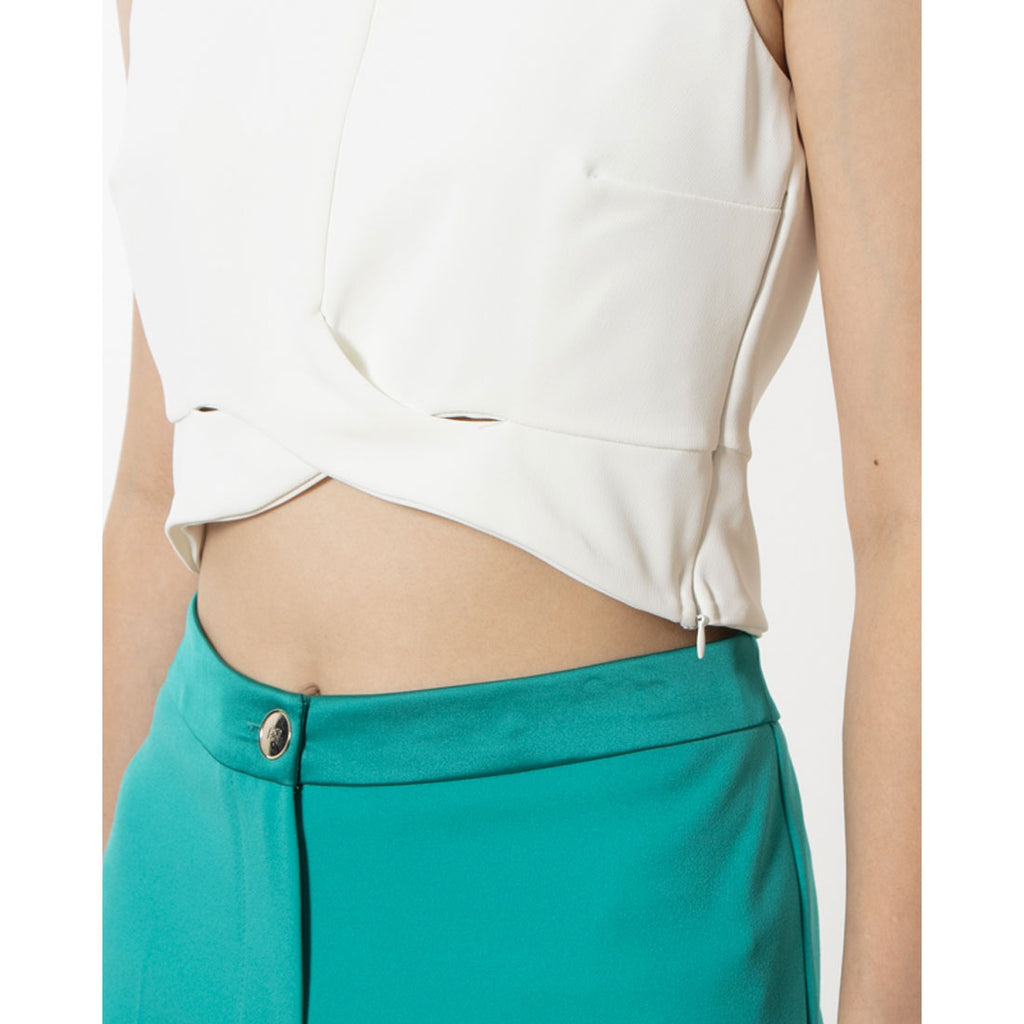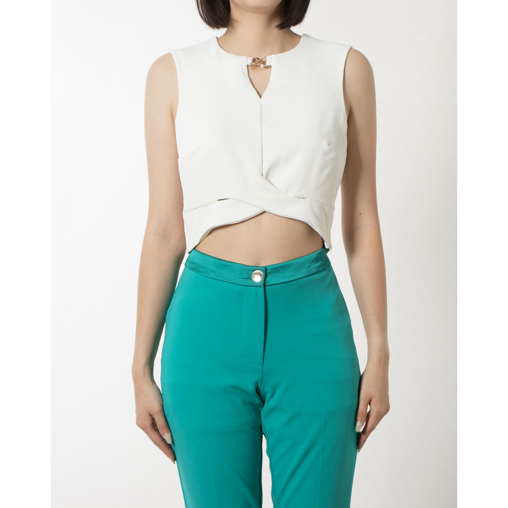 以流行的短款設計完成的上衣。