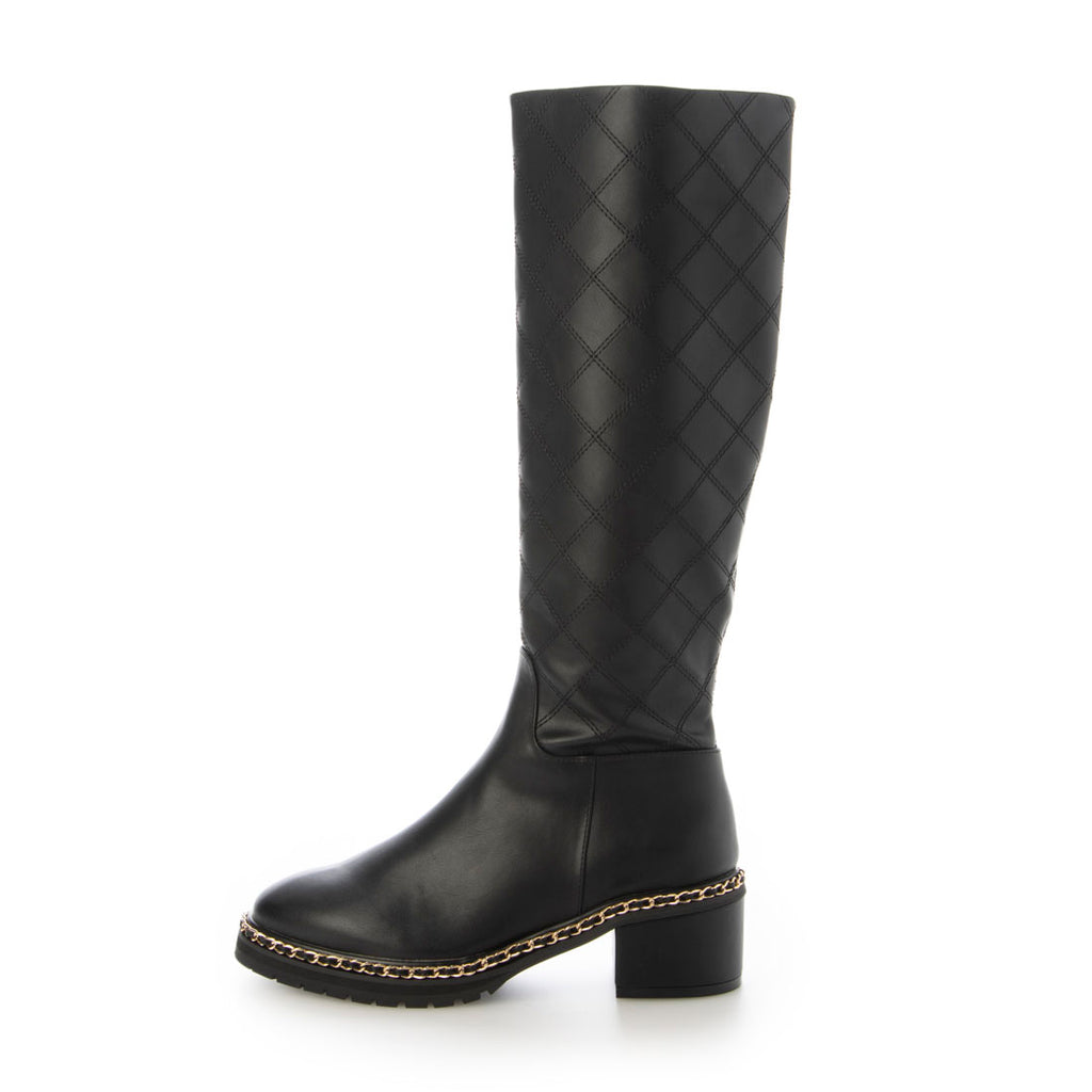 引人注目的長靴,擁有絎縫和鏈條設計。