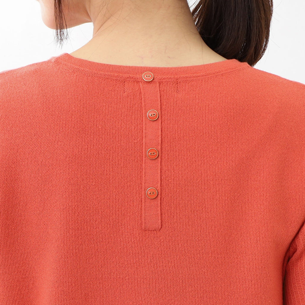 後身頃的後中心也以裝飾鈕扣作為重點,並在領口周圍加入鹿子紋樣的線條作為點綴。