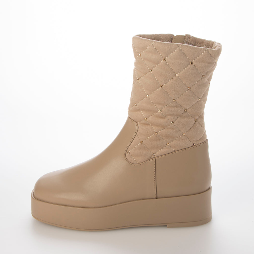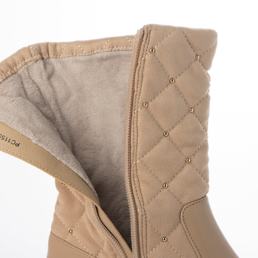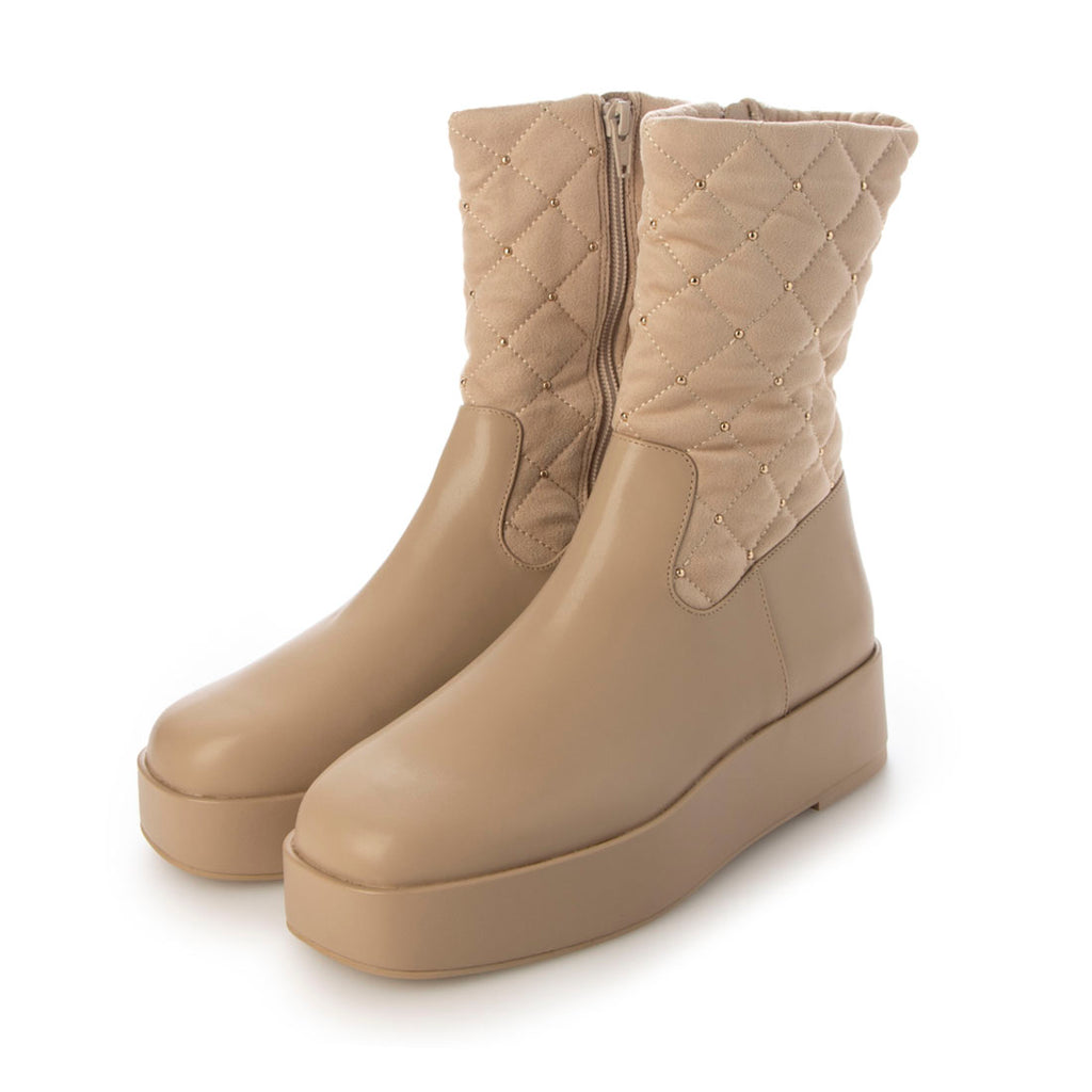 溫暖的材質和鉚釘裝飾提升季節氛圍的絎縫靴