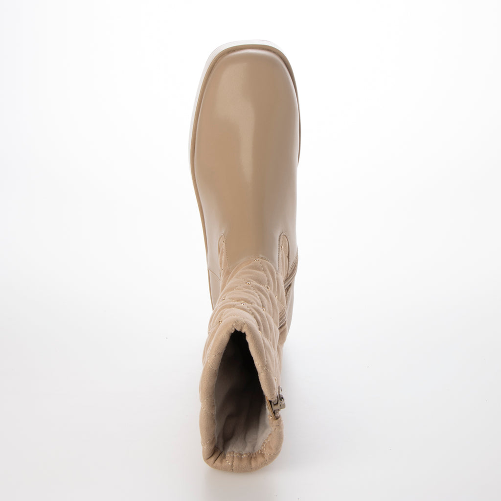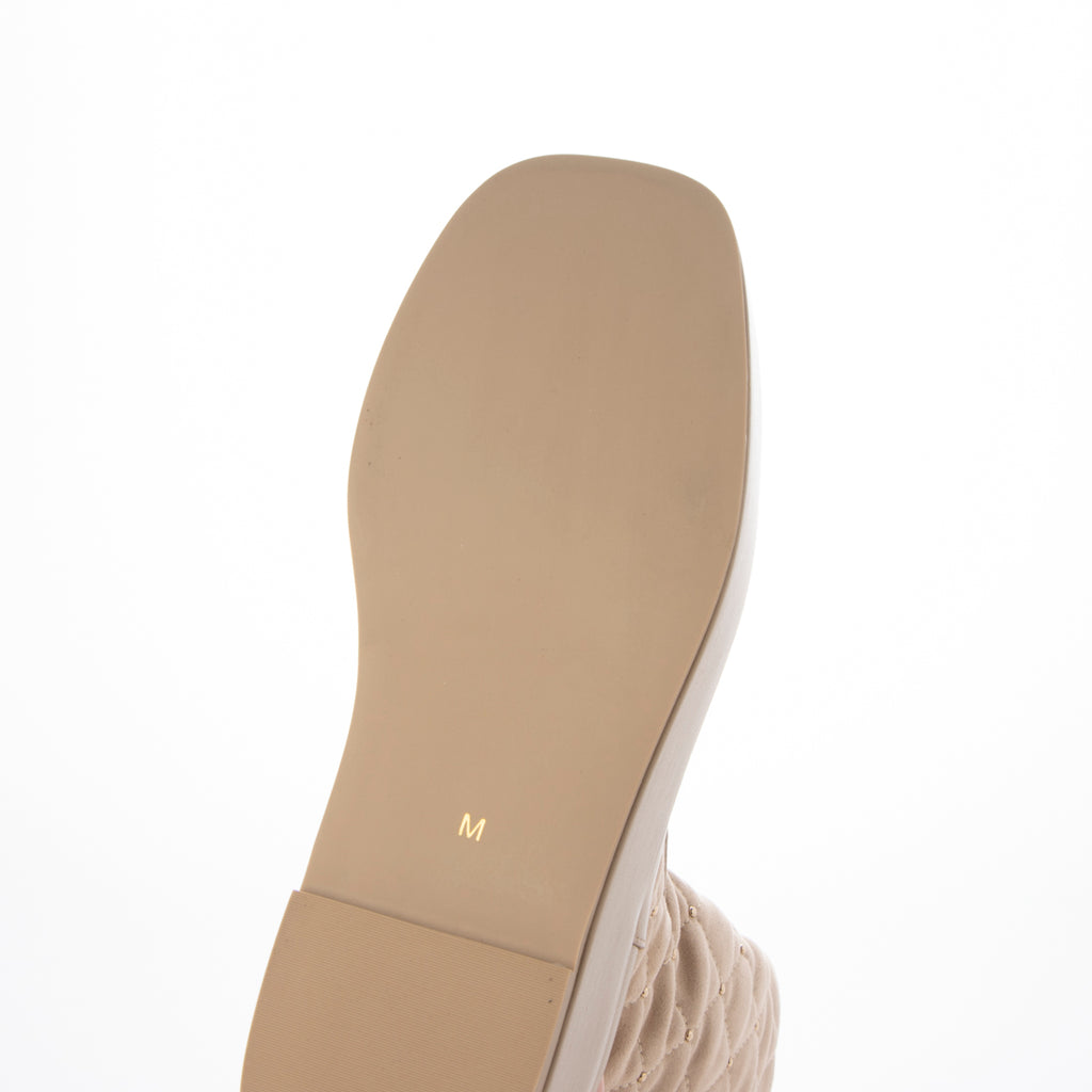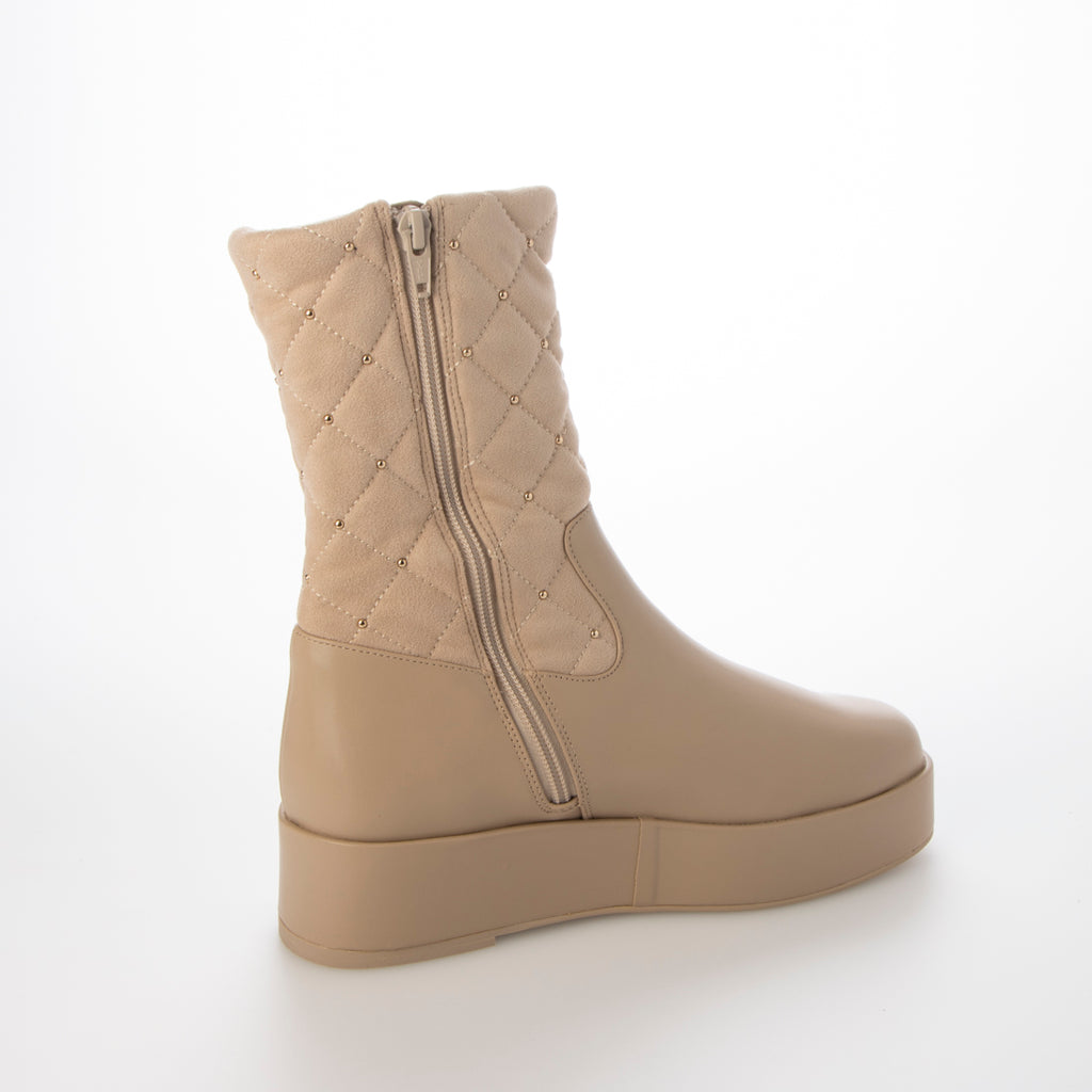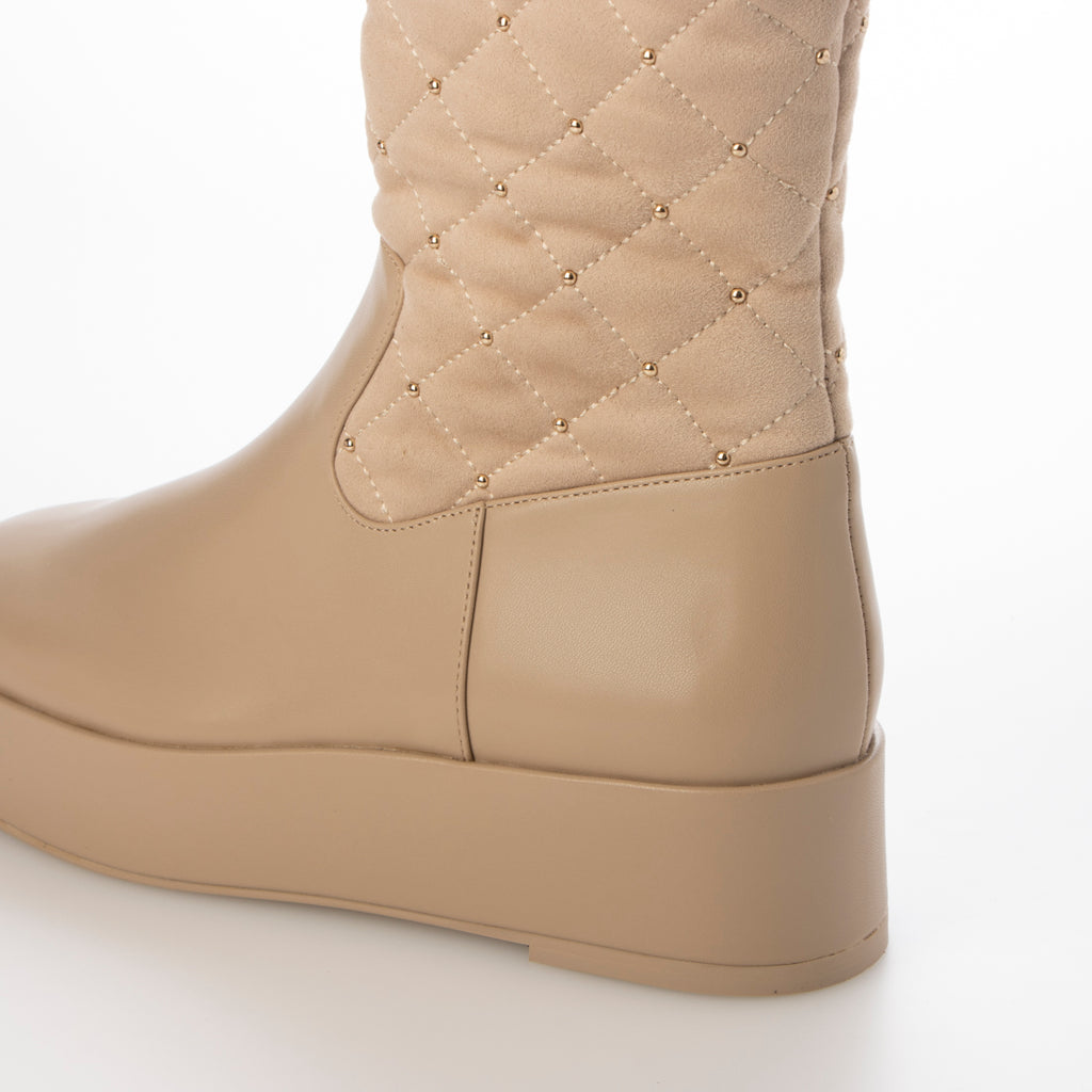 溫暖的材質和鉚釘裝飾提升季節氛圍的絎縫靴