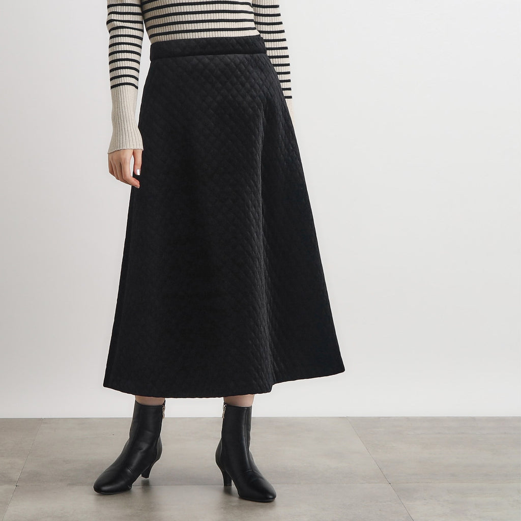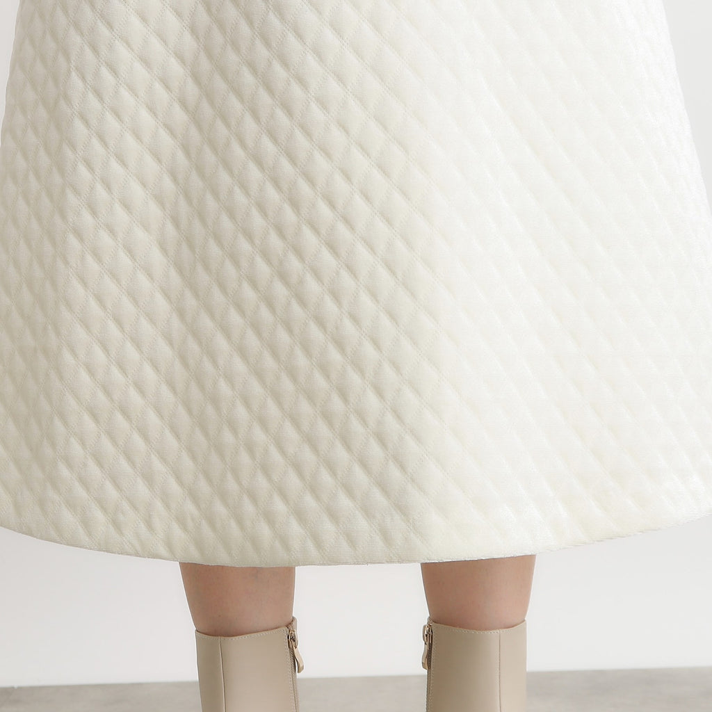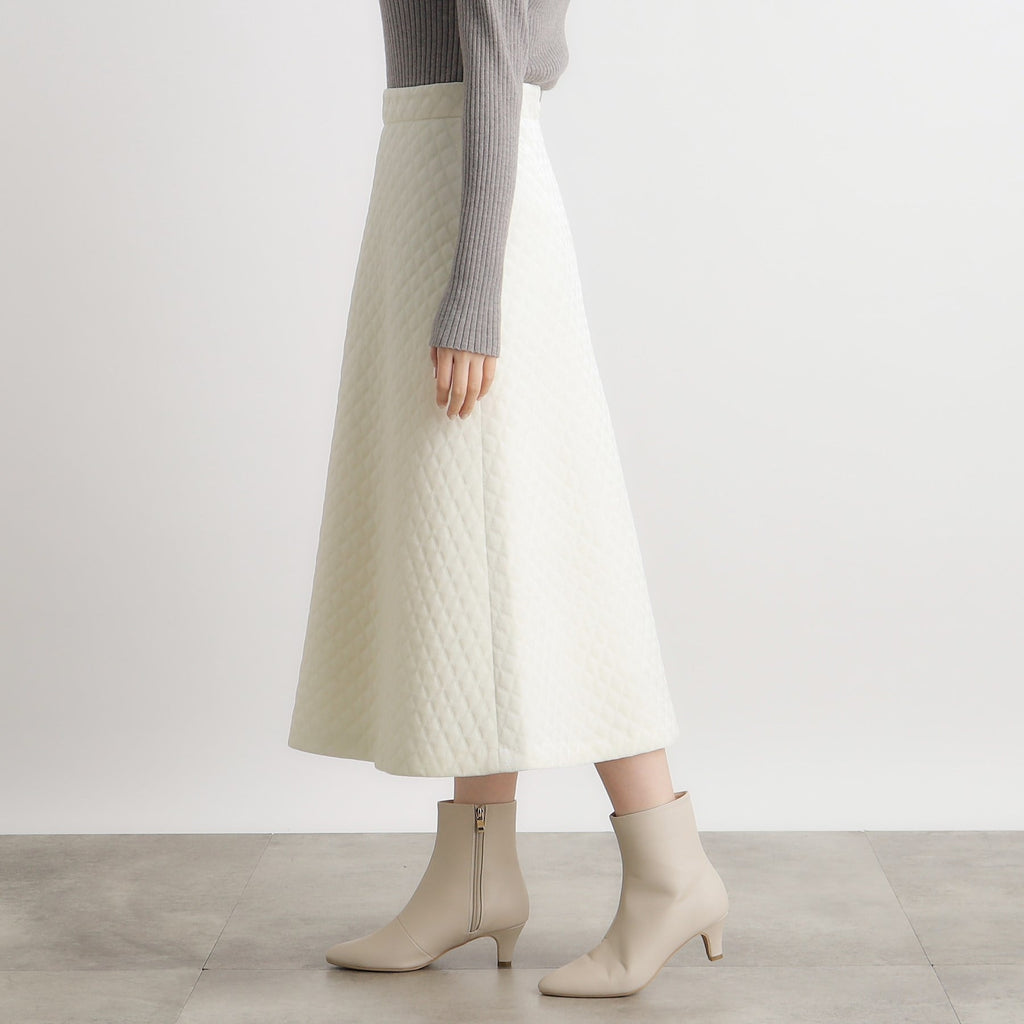 使用了具有暖和感的絨面材質,並施加了類似於絎縫的菱形壓紋,展現出濃厚的流行感。