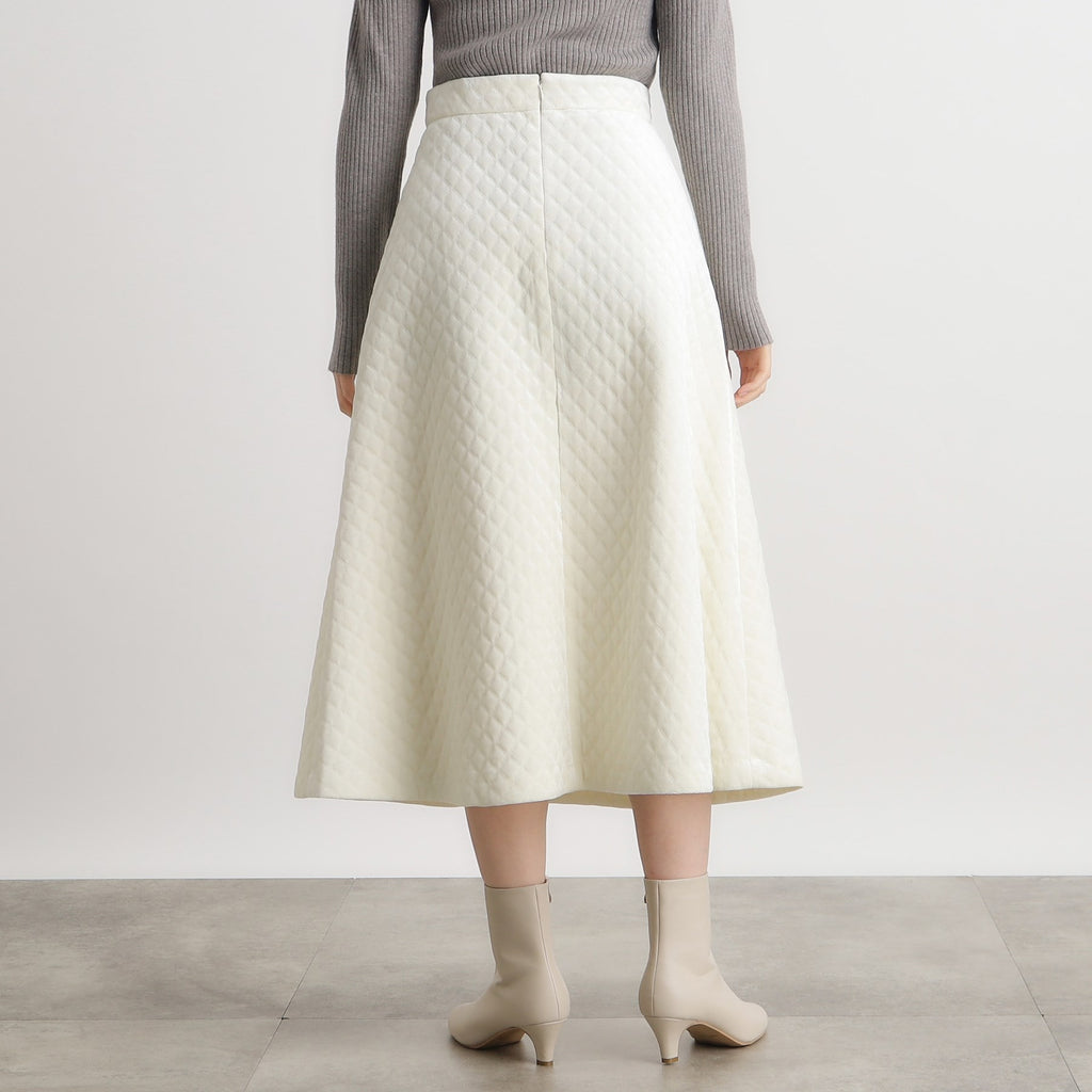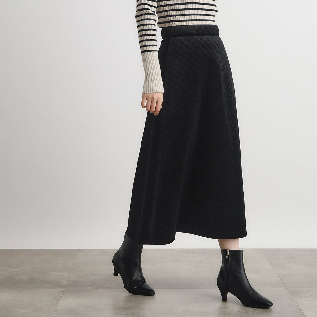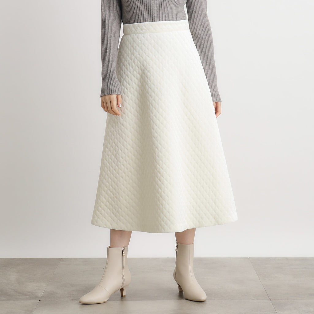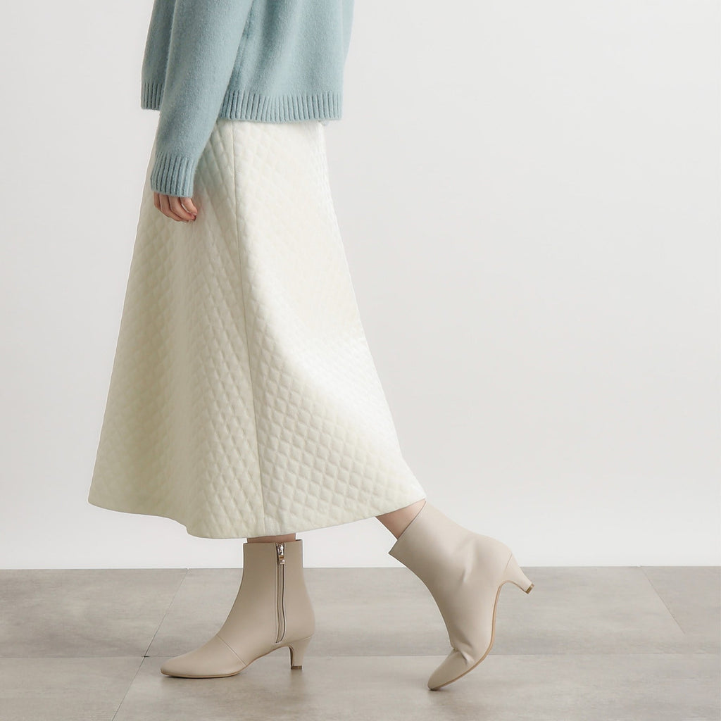 使用了具有暖和感的絨面材質,並施加了類似於絎縫的菱形壓紋,展現出濃厚的流行感。