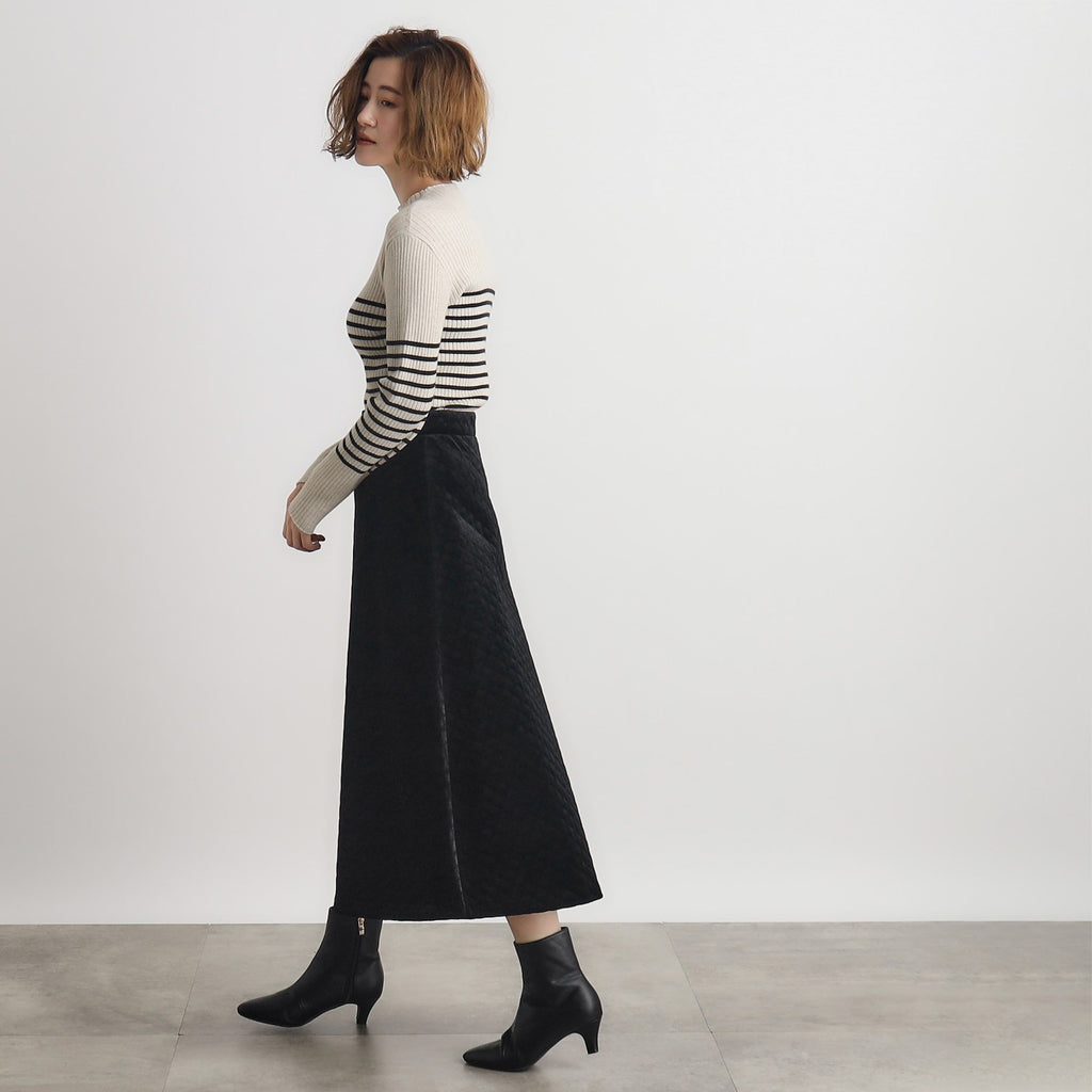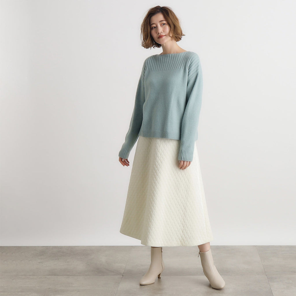因為裙子本身就有存在感,即使搭配簡單的針織衫也能華麗地呈現。