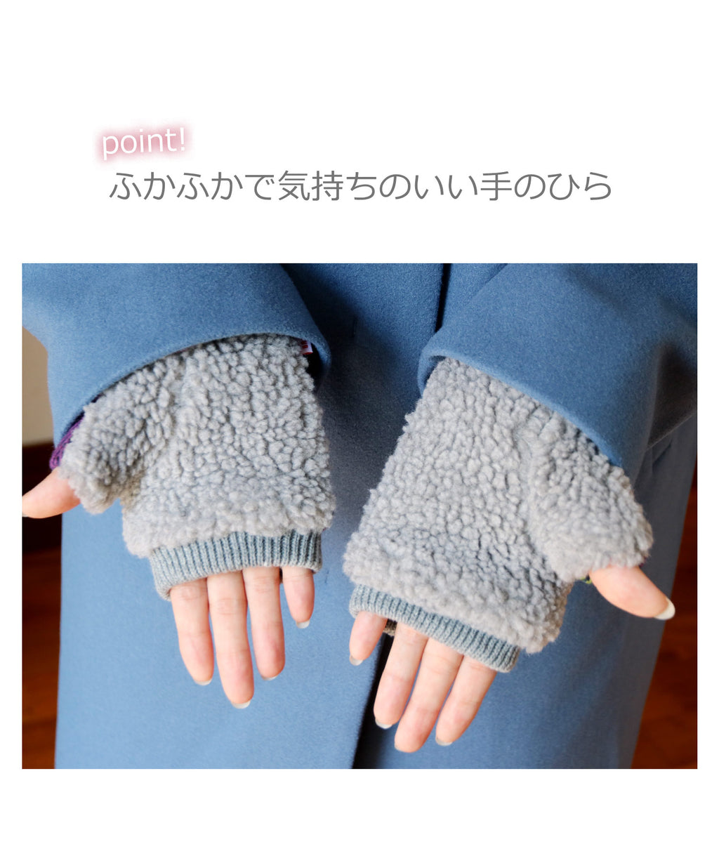 【素材】甲部、甲親指部:毛100% 掌部、掌親指部:聚酯纖維100% 編織部:丙烯酸纖維100%
