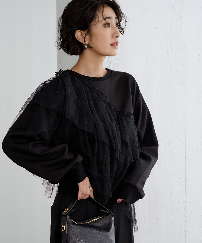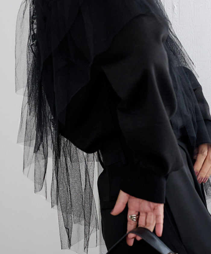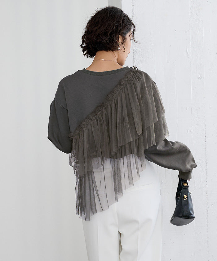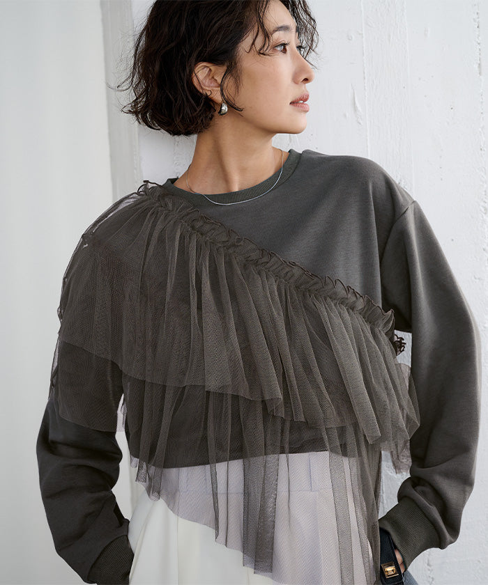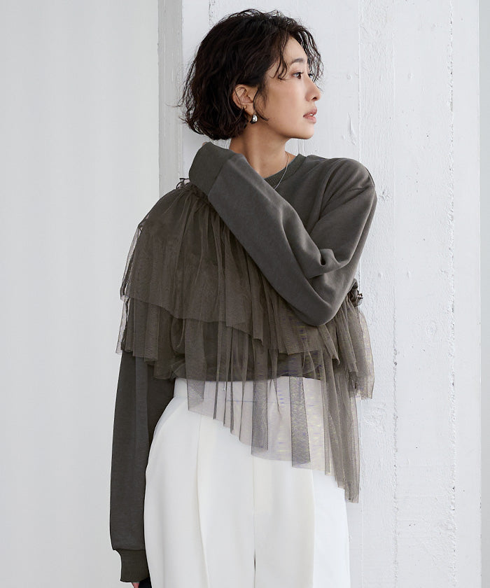 輕盈柔軟的薄紗拼接上衣。