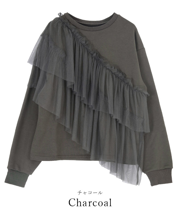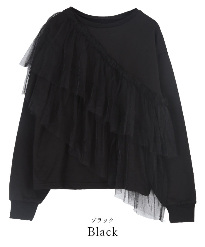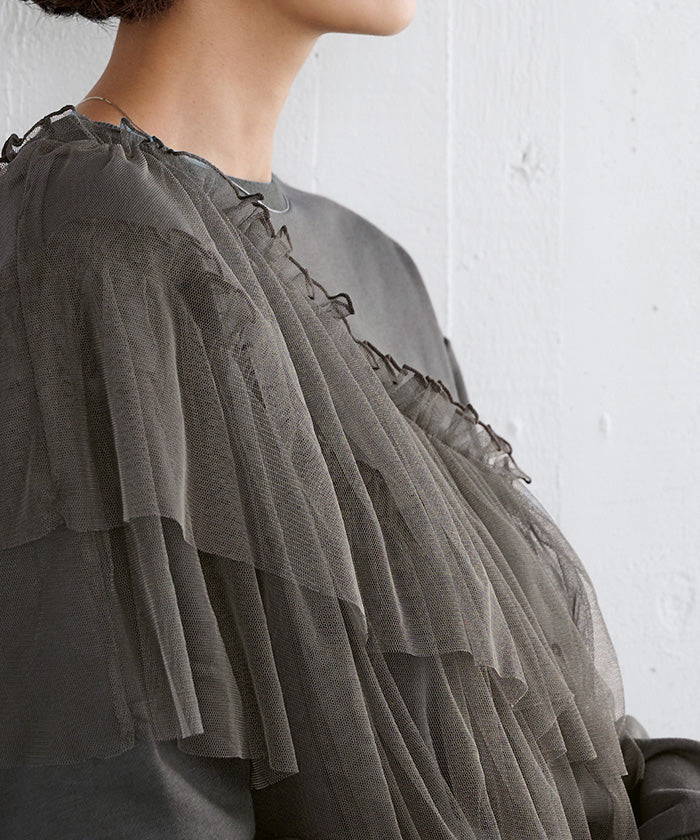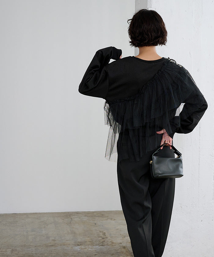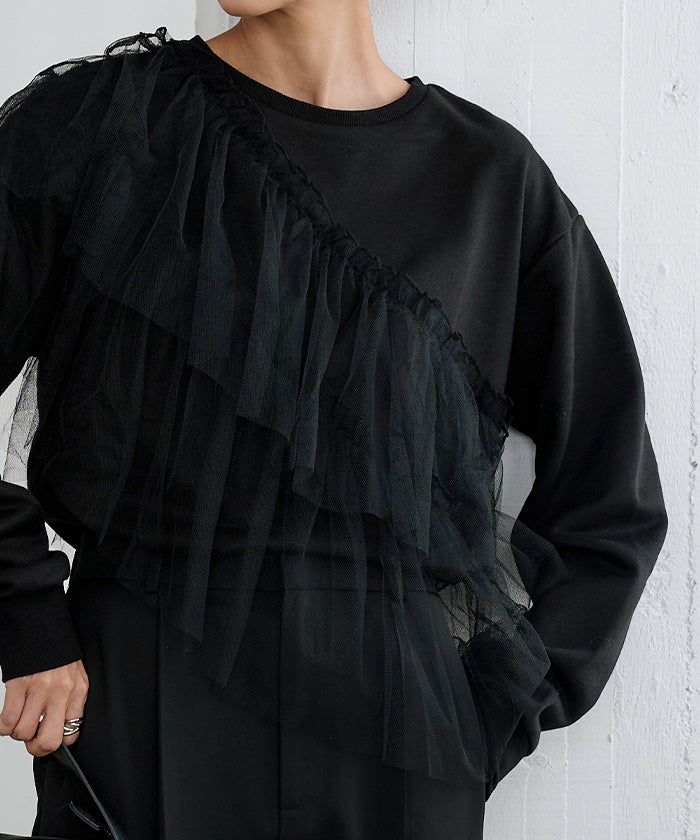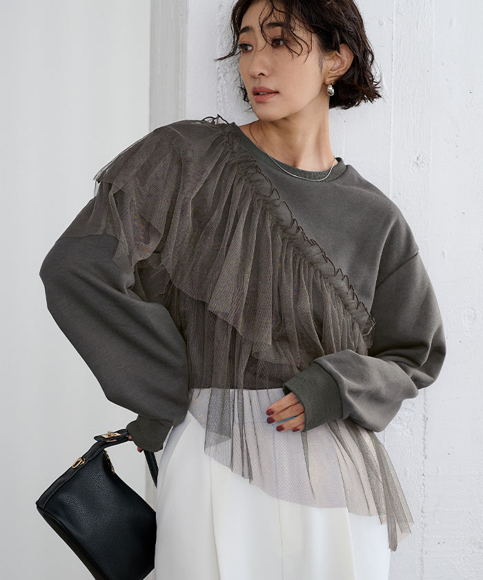 輕盈柔軟的薄紗拼接上衣。