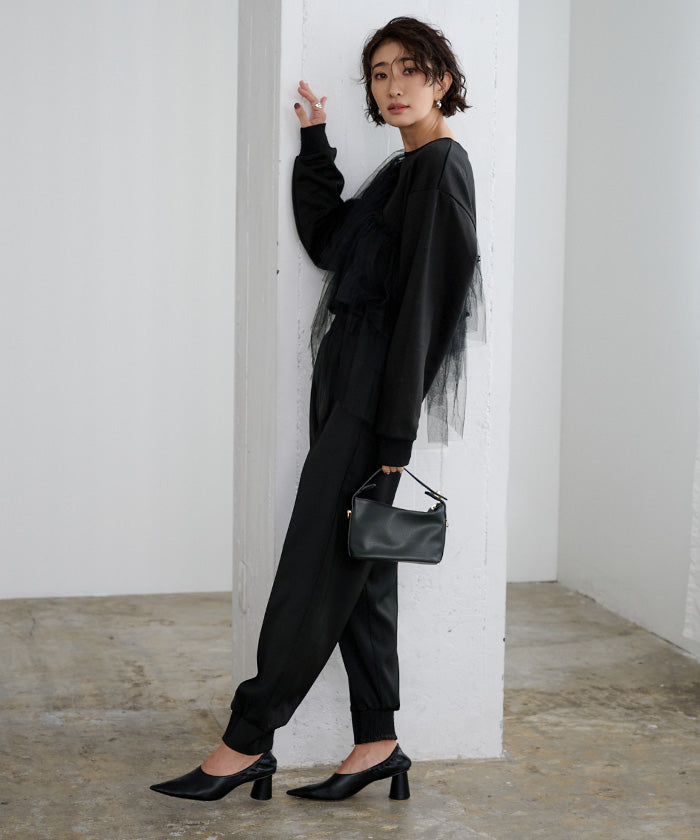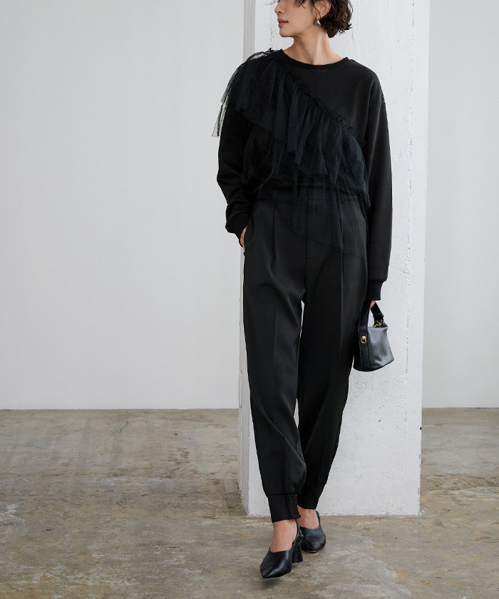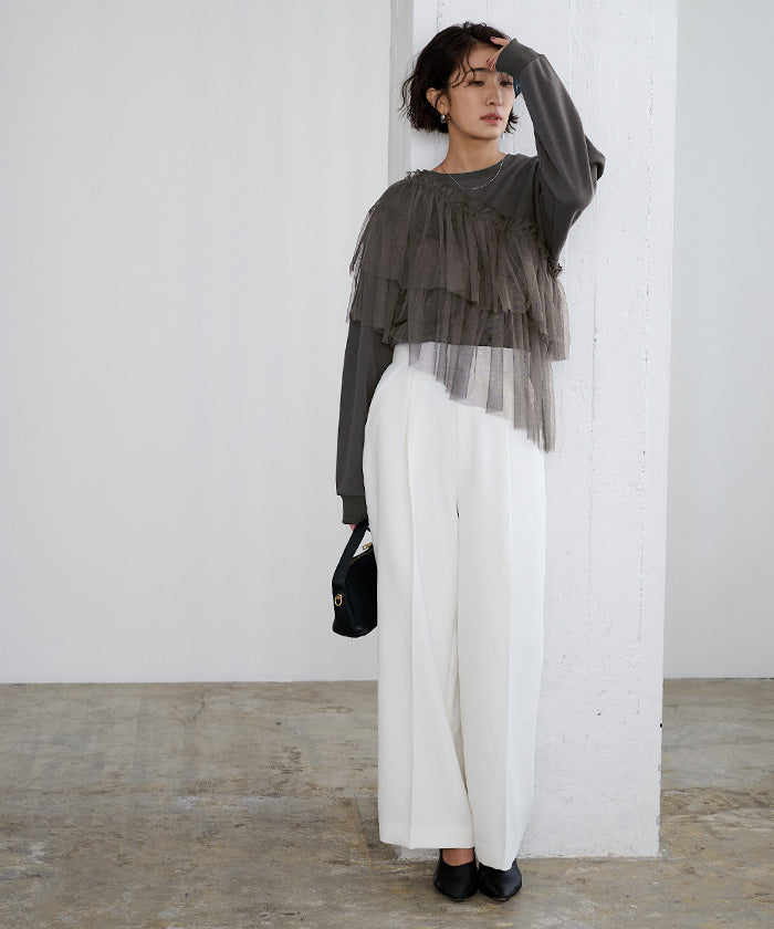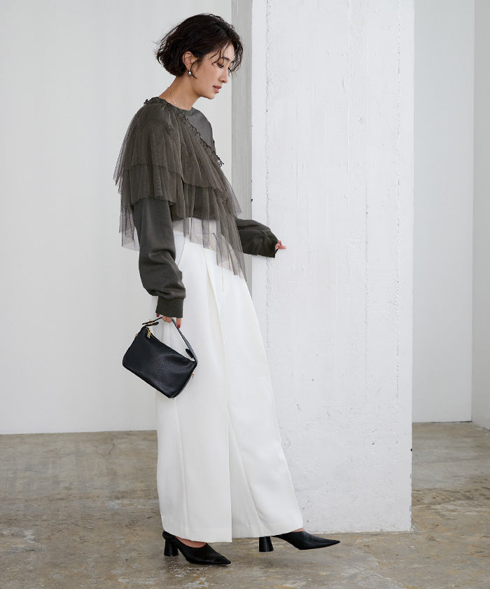 ・將薄紗素材疊加層次感,打造立體感的上衣。