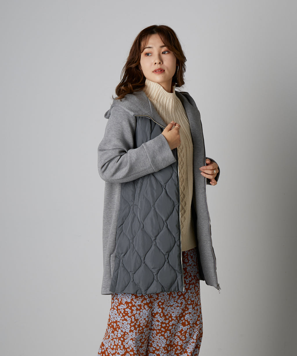 本體 針織部分:人造絲80.0% 尼龍15.0% 聚氨酯5.0% 本體 布料部分:聚酯纖維100.0% 中填充物:羽絨80.0% 羽毛20.0% 裡料:聚酯纖維100.0%