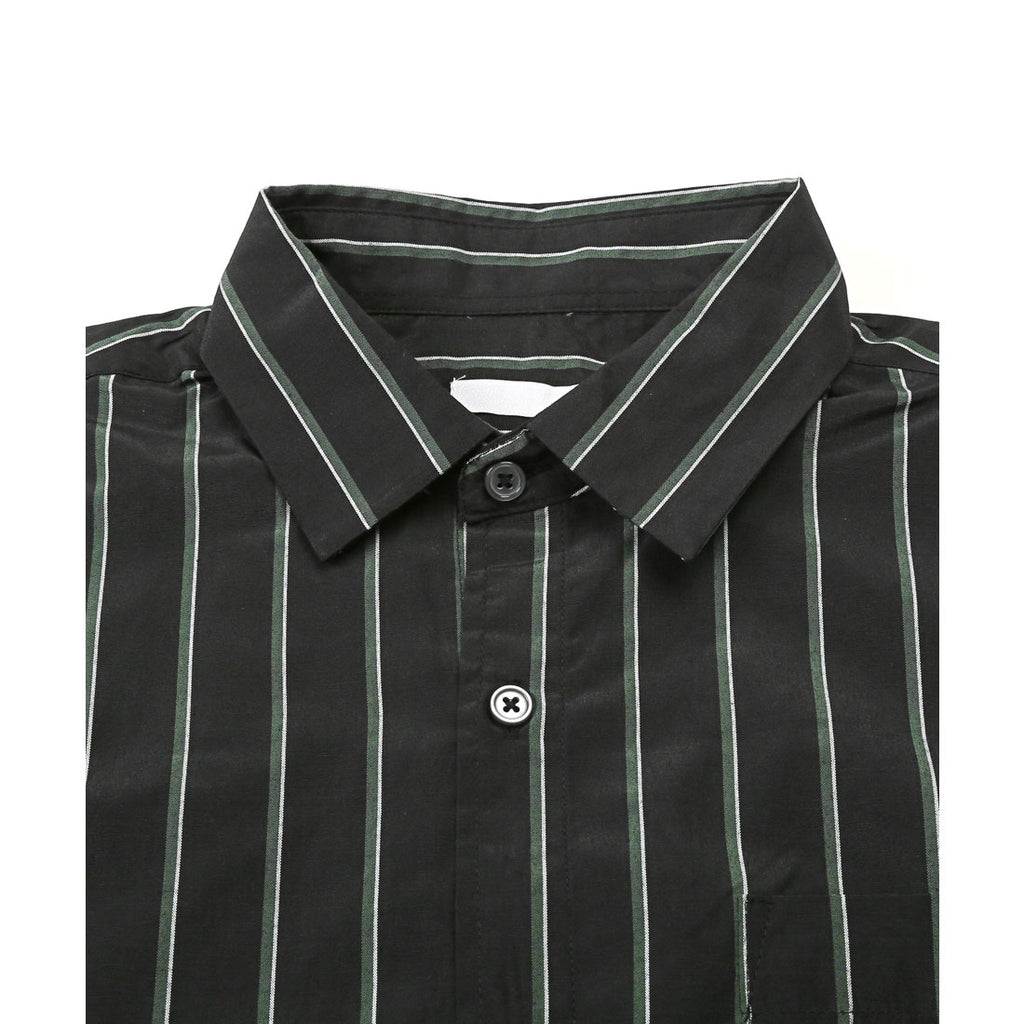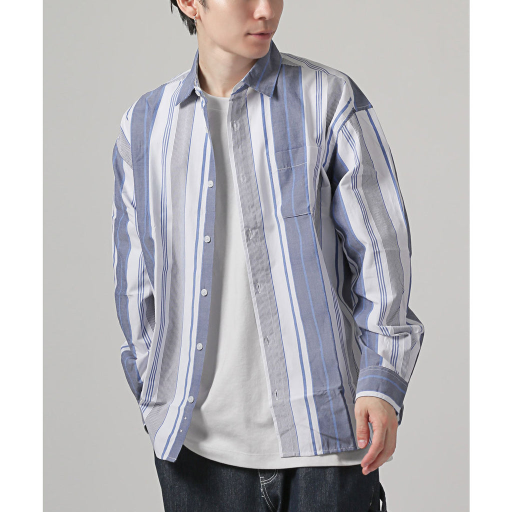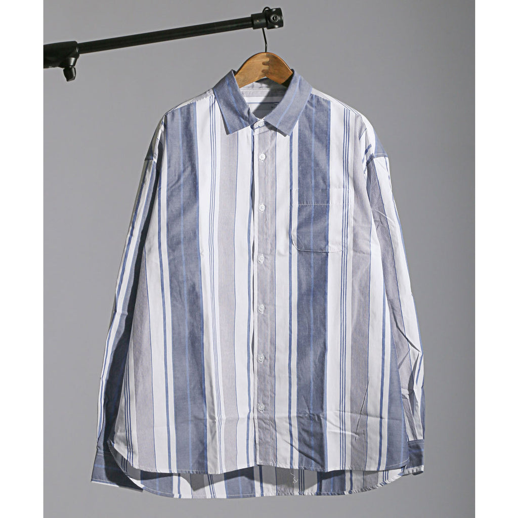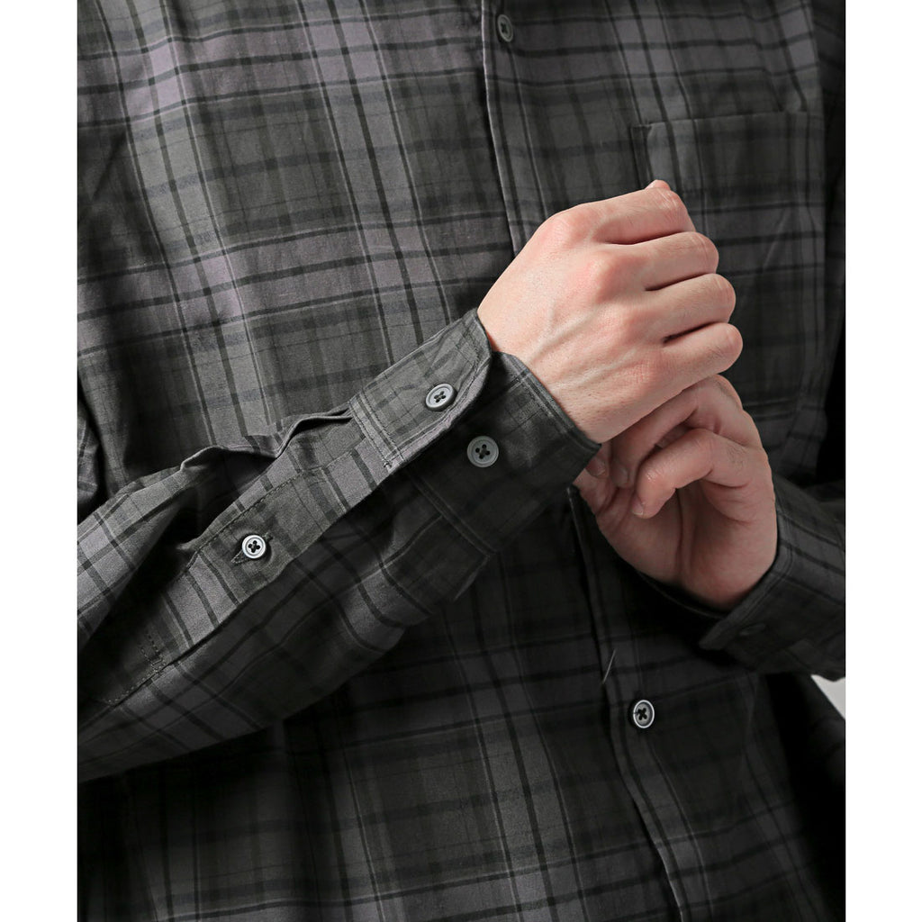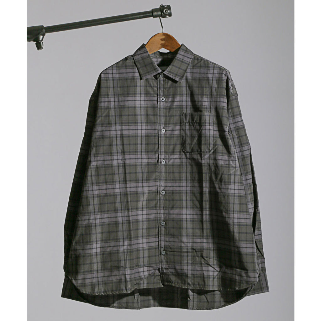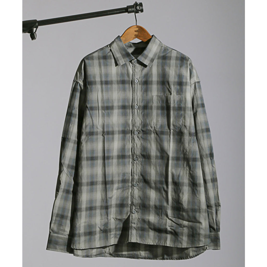 拉格風格 LUXSTYLE 總圖案常規領長袖襯衫/常規領 胸口袋 條紋 格子 總圖案 平紋布料