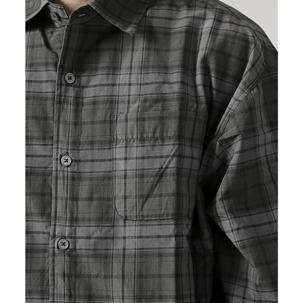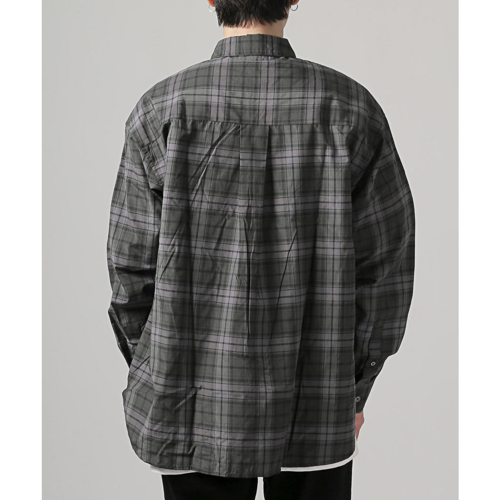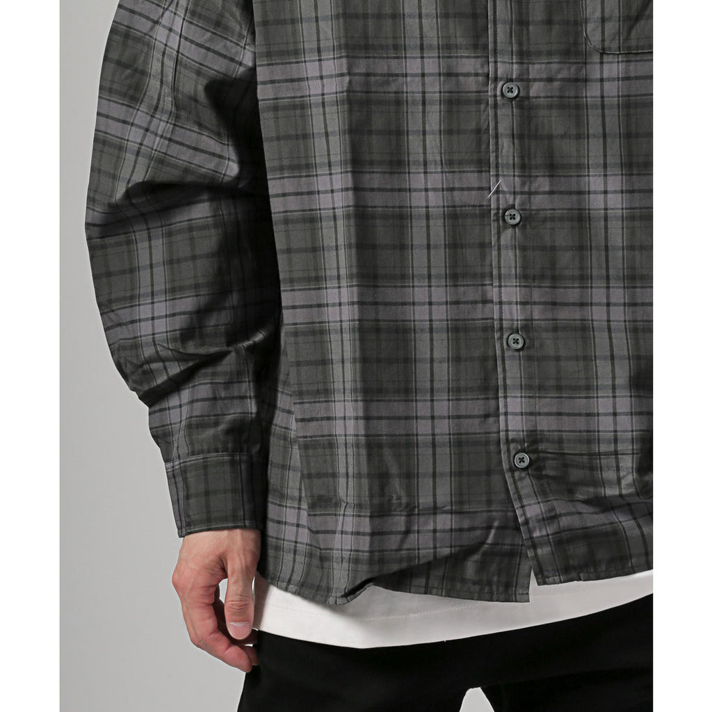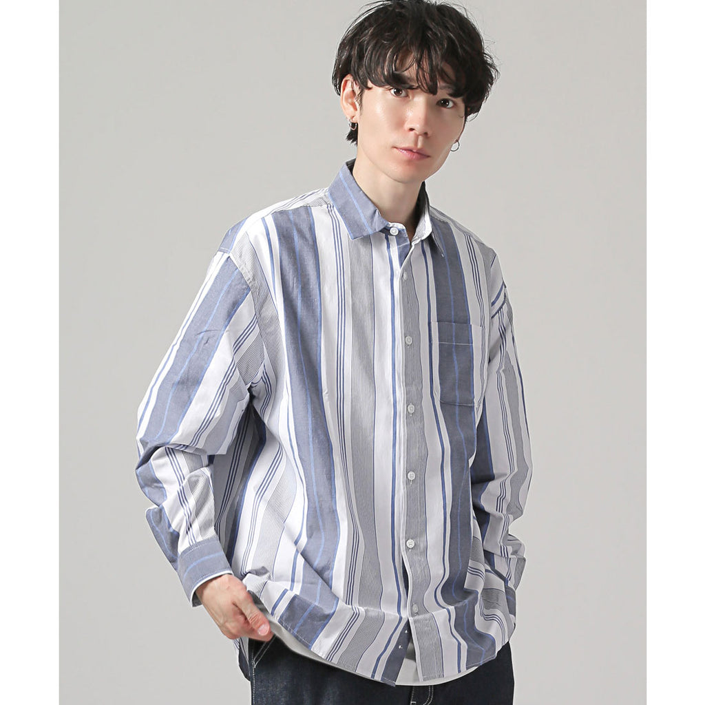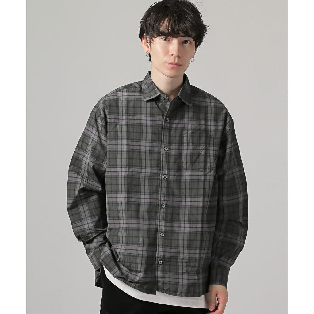 拉格風格 LUXSTYLE 總圖案常規領長袖襯衫/常規領 胸口袋 條紋 格子 總圖案 平紋布料