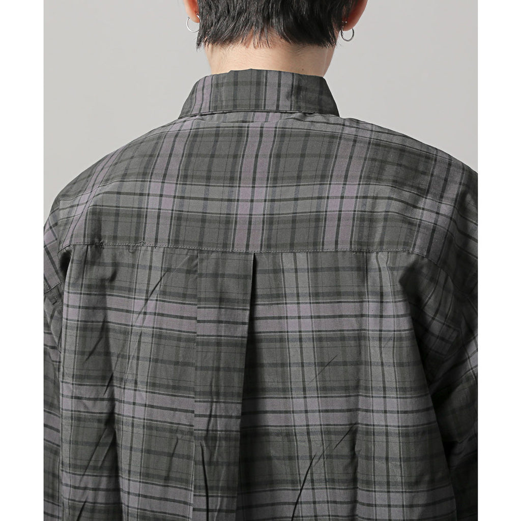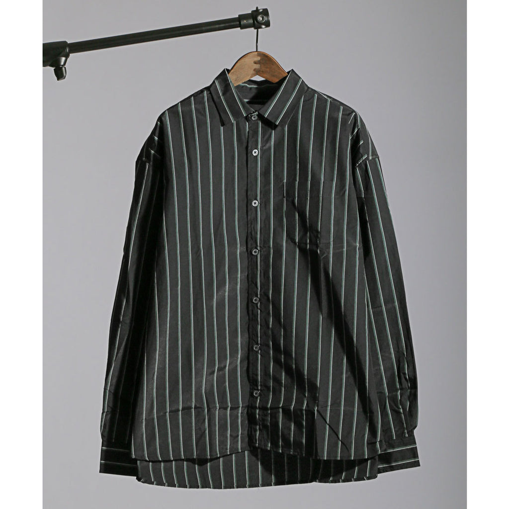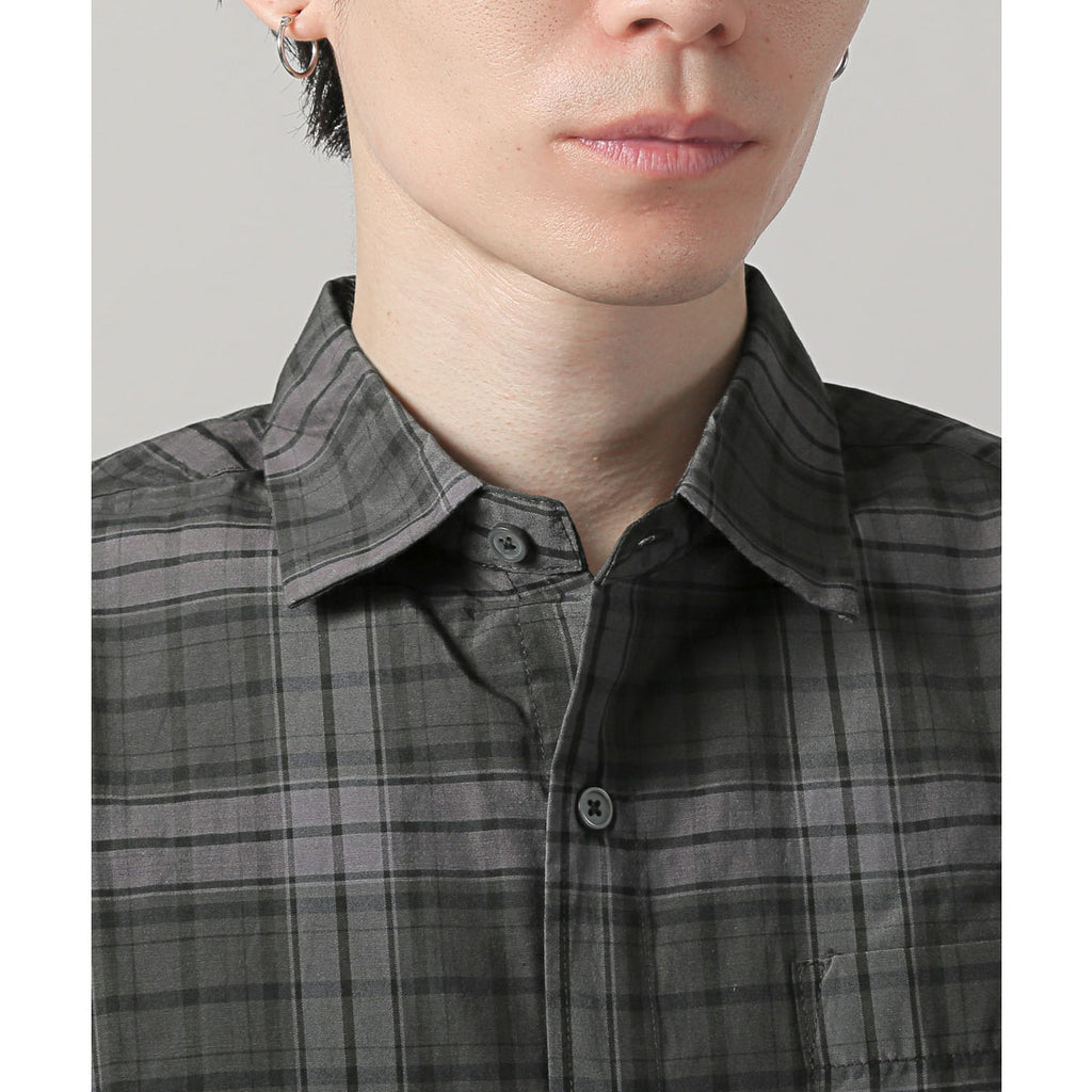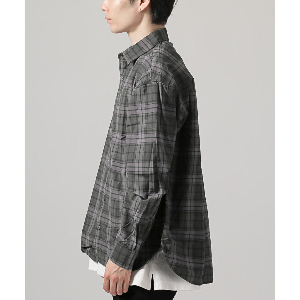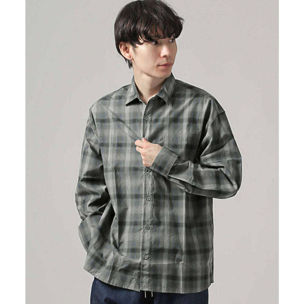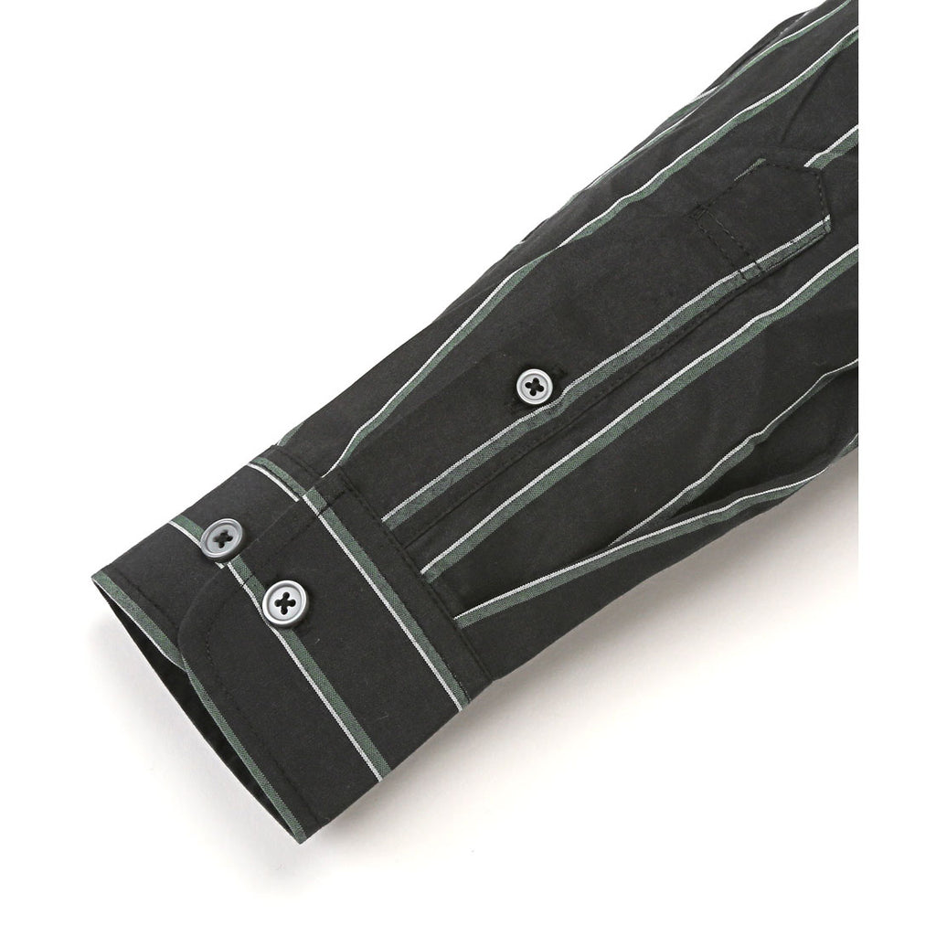 拉格風格 LUXSTYLE 總圖案常規領長袖襯衫/常規領 胸口袋 條紋 格子 總圖案 平紋布料