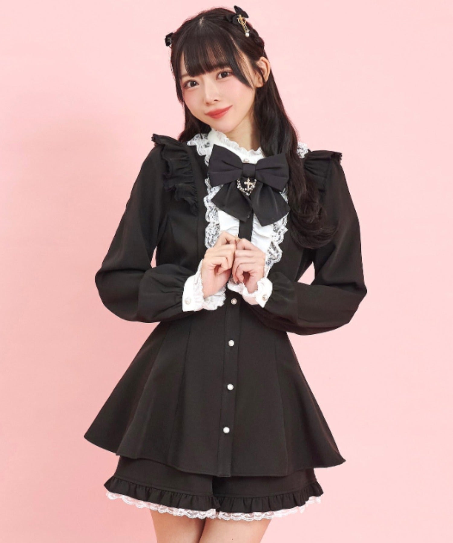 滿是荷葉邊的立領和前襟,讓搭配散發古典氛圍!