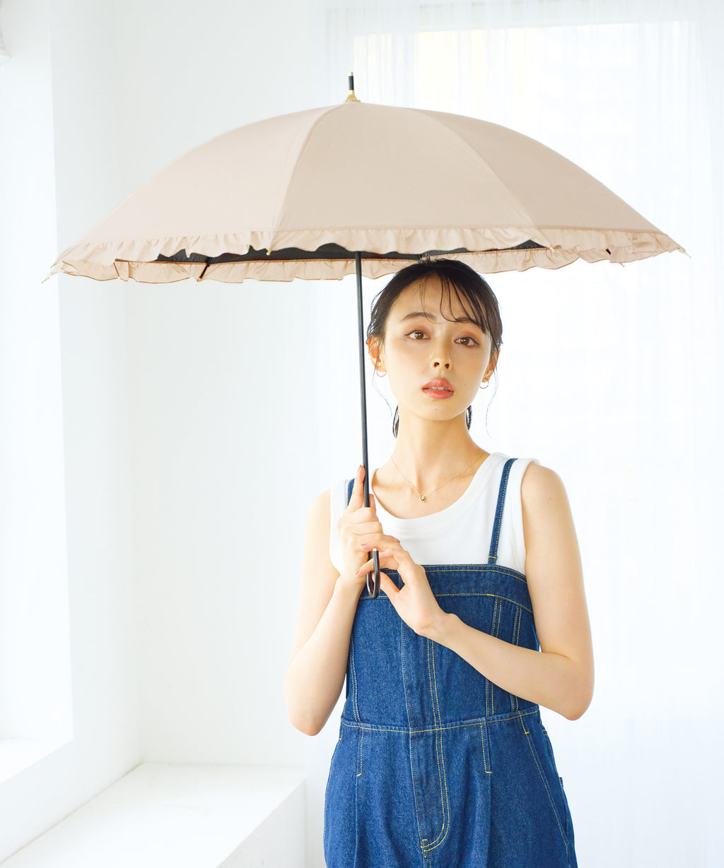 上品的褶邊非常受歡迎!使用完全遮光100%的面料製作的女性化陽傘
