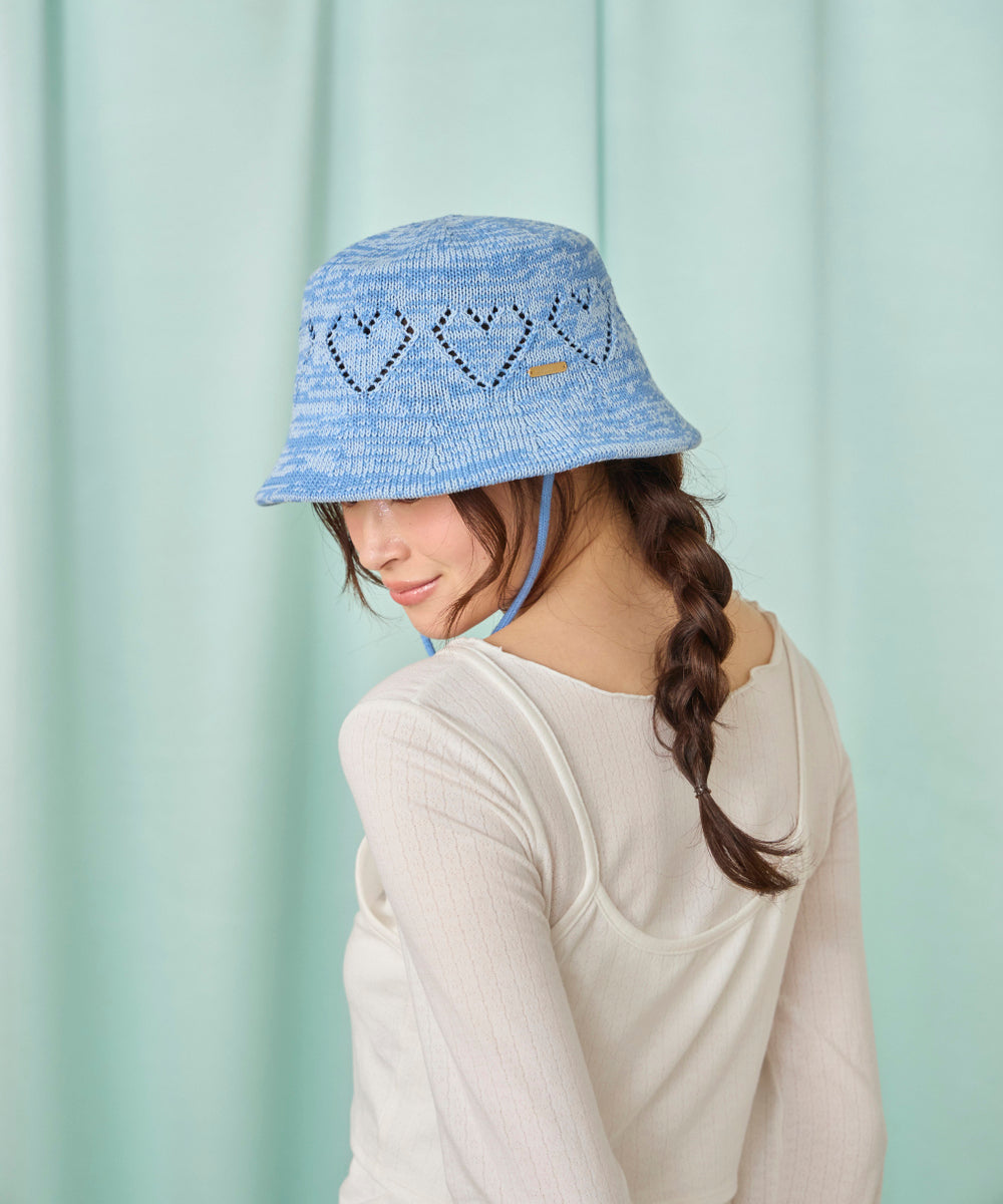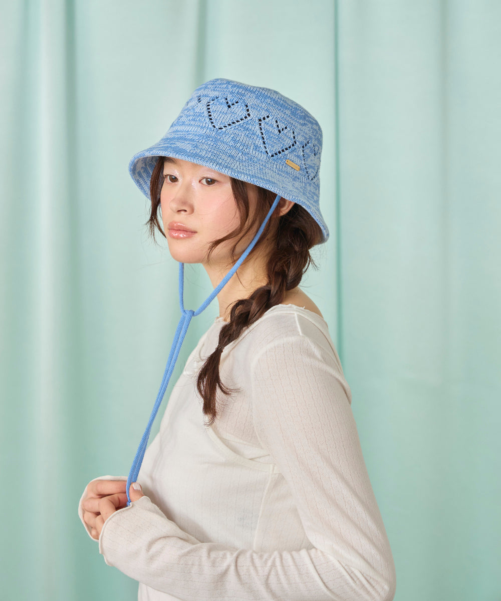 透視心形的夏季針織帽,使用棉線製作的帶繩針織帽。