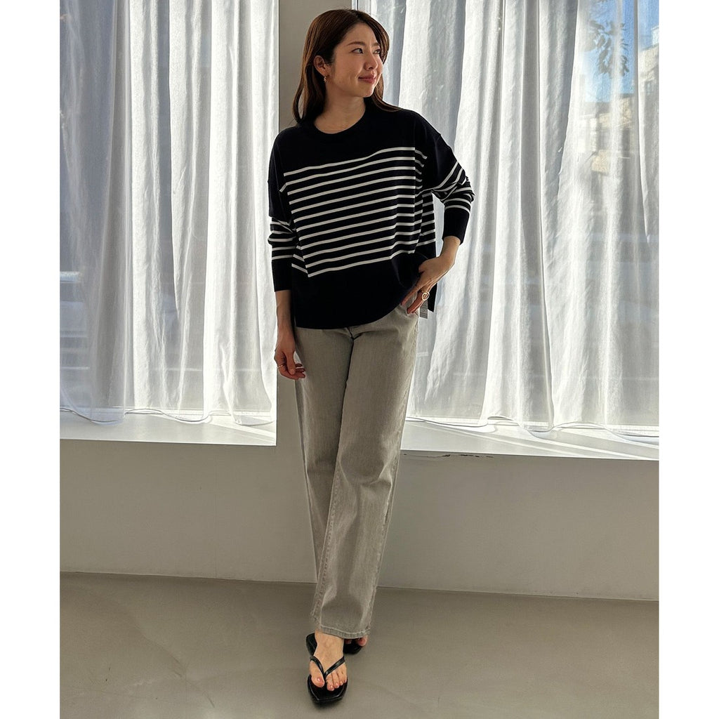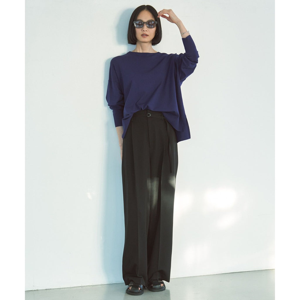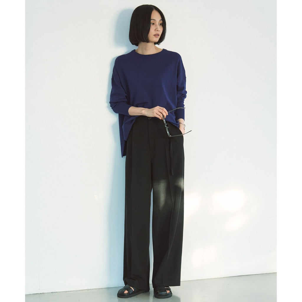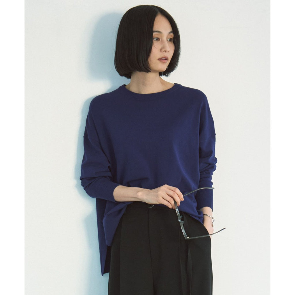 ■每個季節都受到好評的寬鬆剪裁圓領針織衫。本季節我們減少了蓬鬆感,尺寸設計更容易與各種下裝搭配。前後不對稱的側邊開衩設計,使得層次感更佳,衣擺線條流暢,穿著輕便舒適。