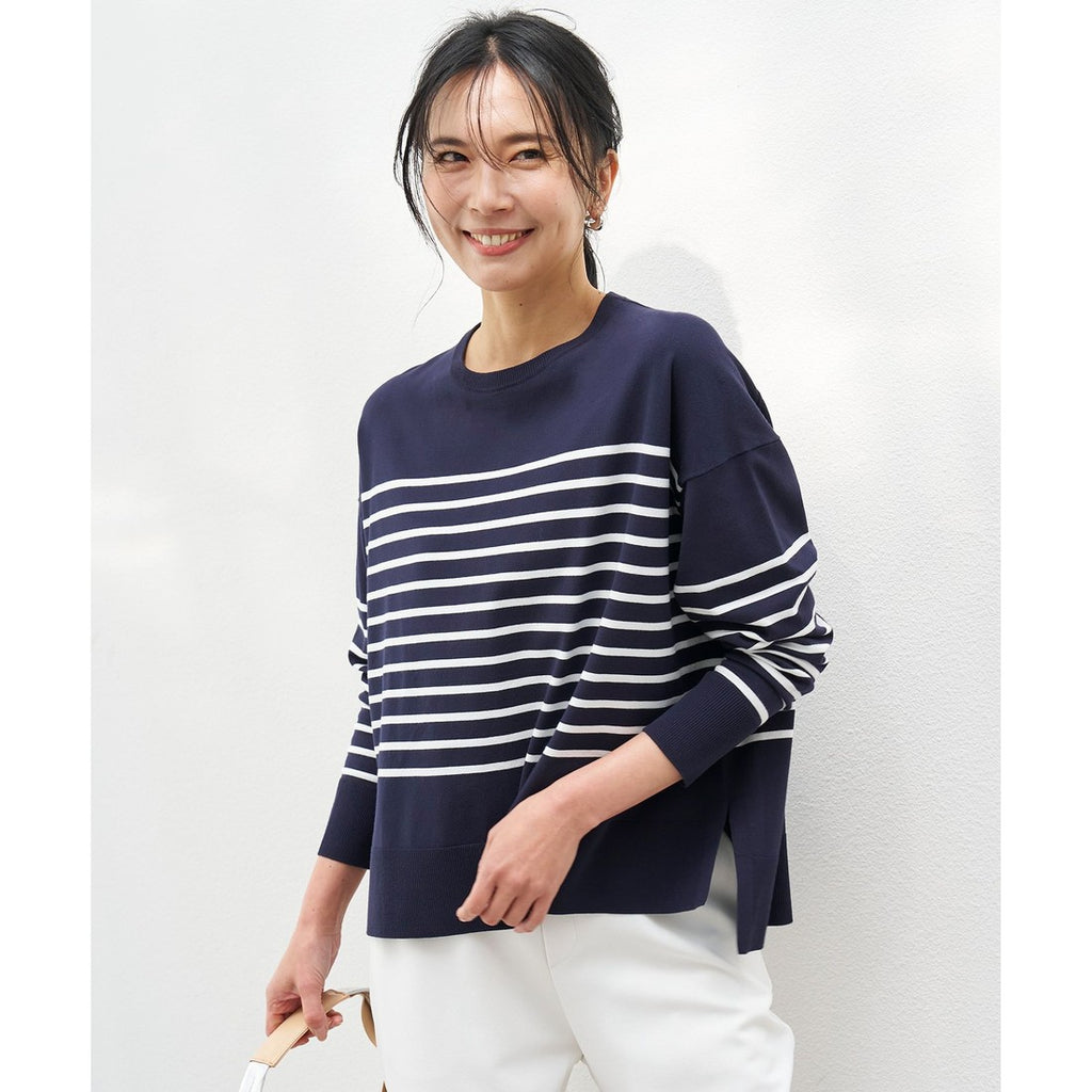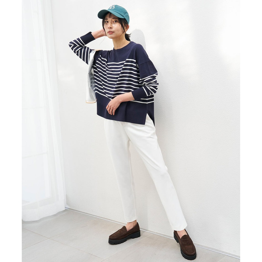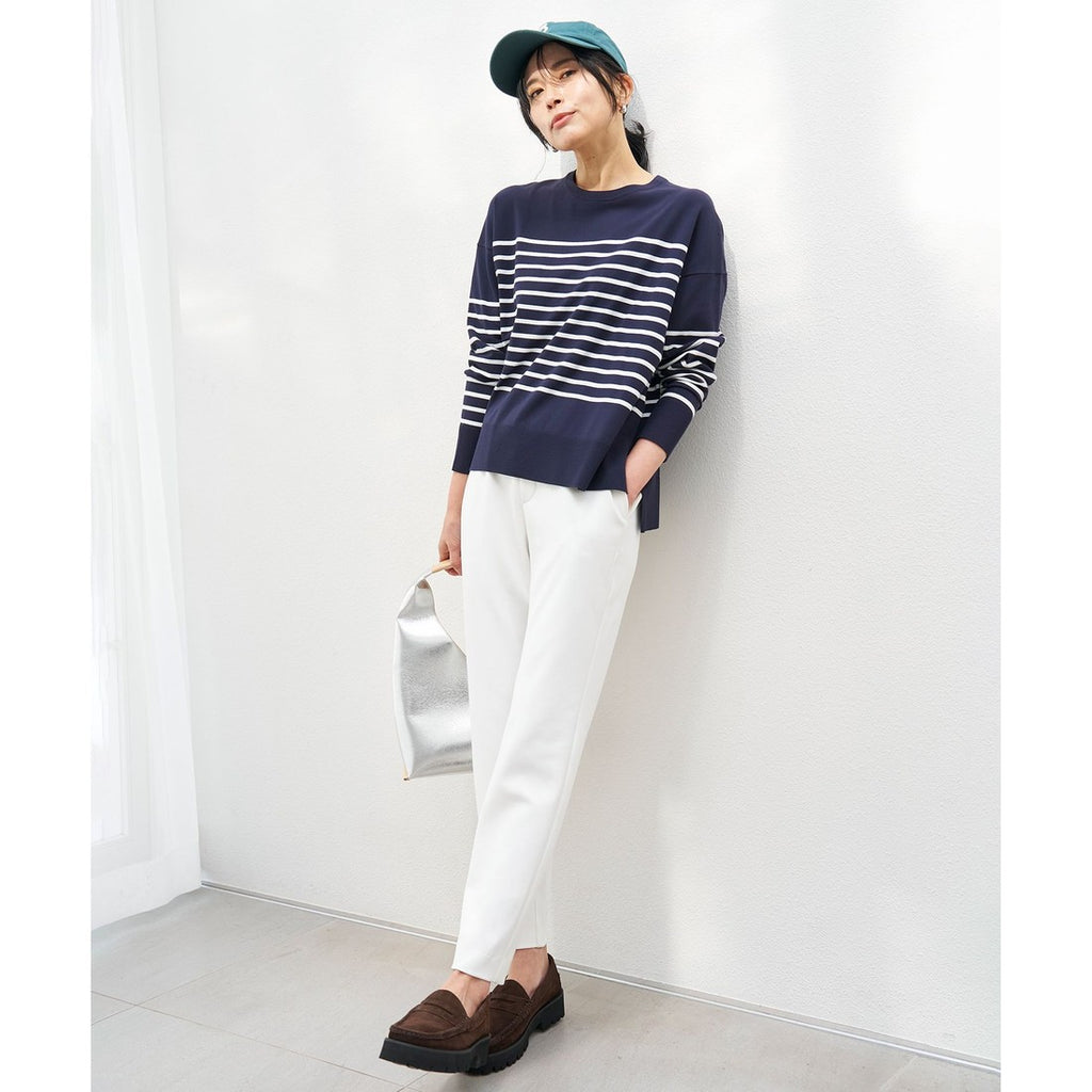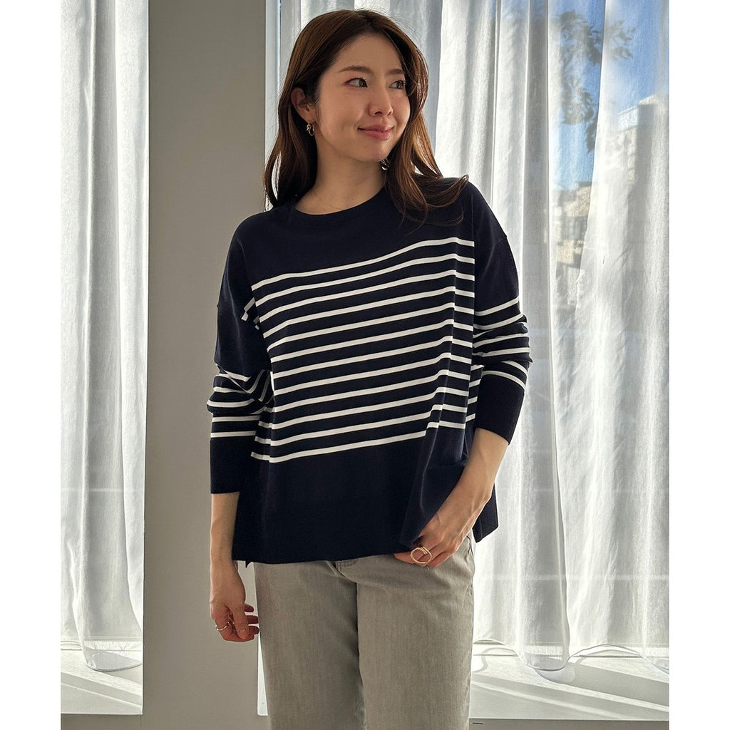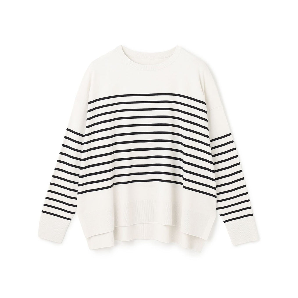 ■每個季節都受到好評的寬鬆剪裁圓領針織衫。本季節我們減少了蓬鬆感,尺寸設計更容易與各種下裝搭配。前後不對稱的側邊開衩設計,使得層次感更佳,衣擺線條流暢,穿著輕便舒適。