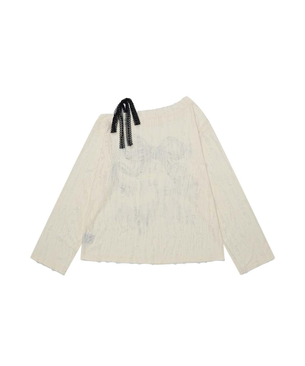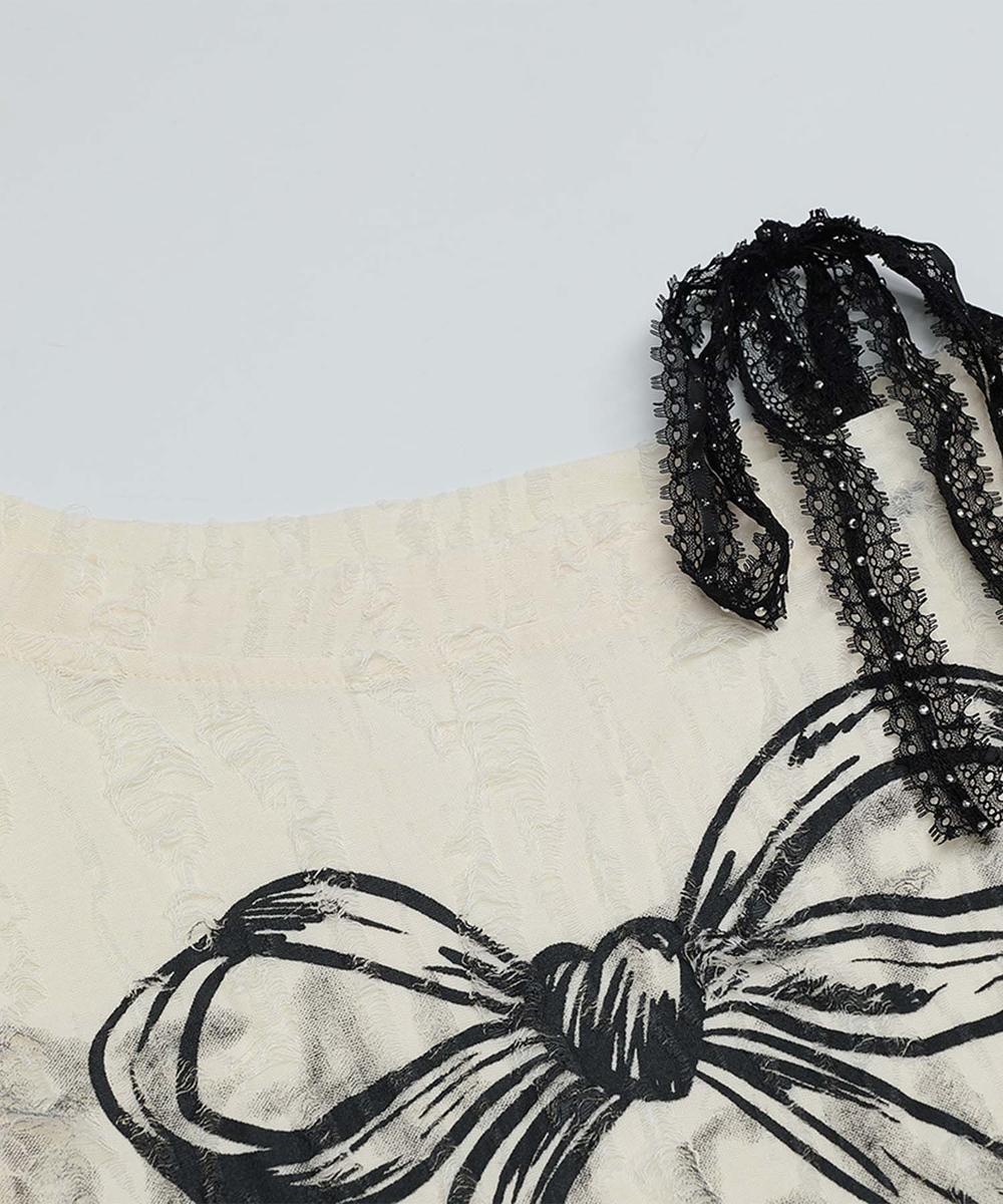 フック HOOK 【HOOK】for girls 蝴蝶結印花露肩破損上衣