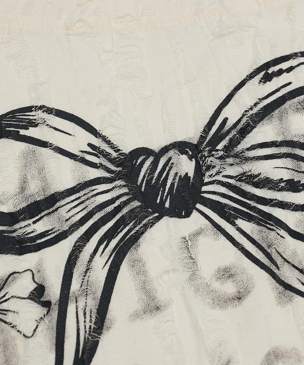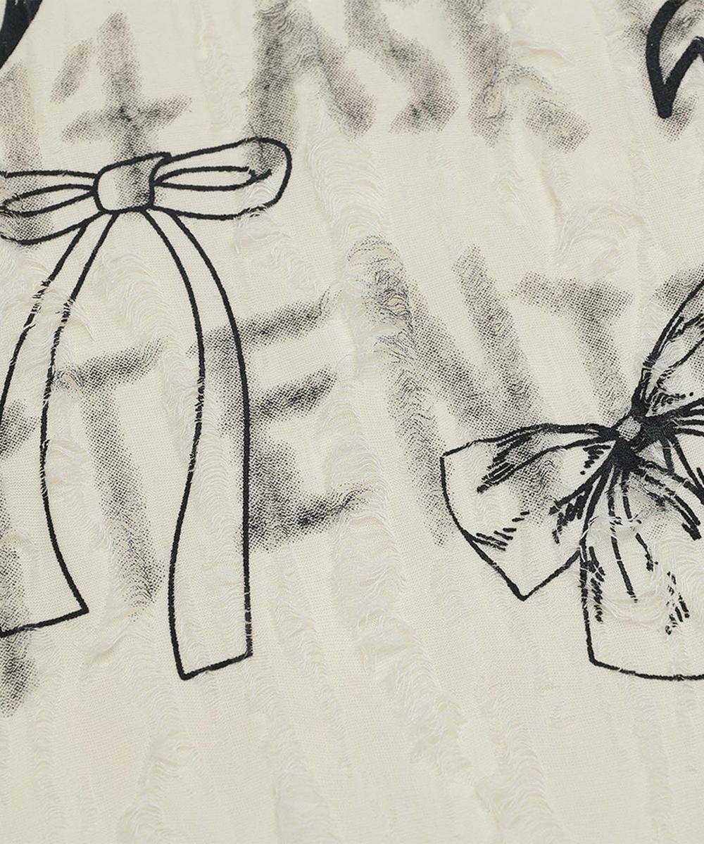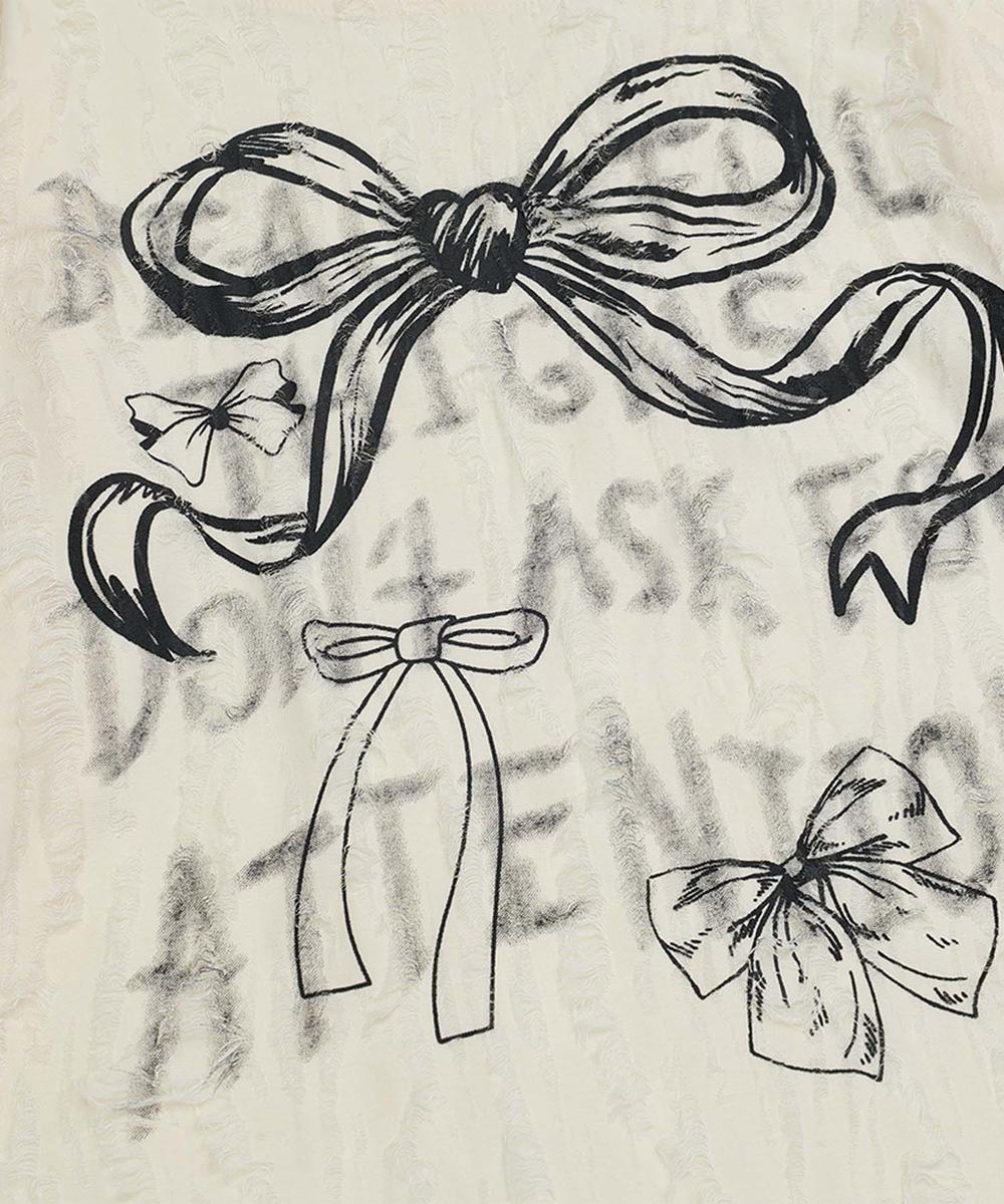 前面大面積施加的蝴蝶結印花令人印象深刻,兼具可愛感與時尚感的設計。