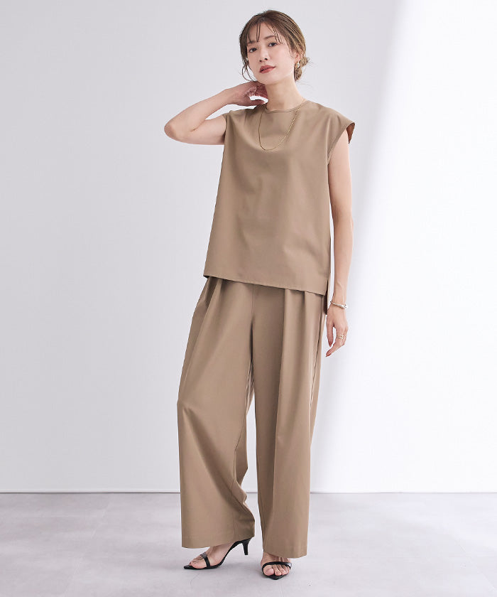 ユアーズ ur's 撥水腰圍鬆緊兩側摺寬褲