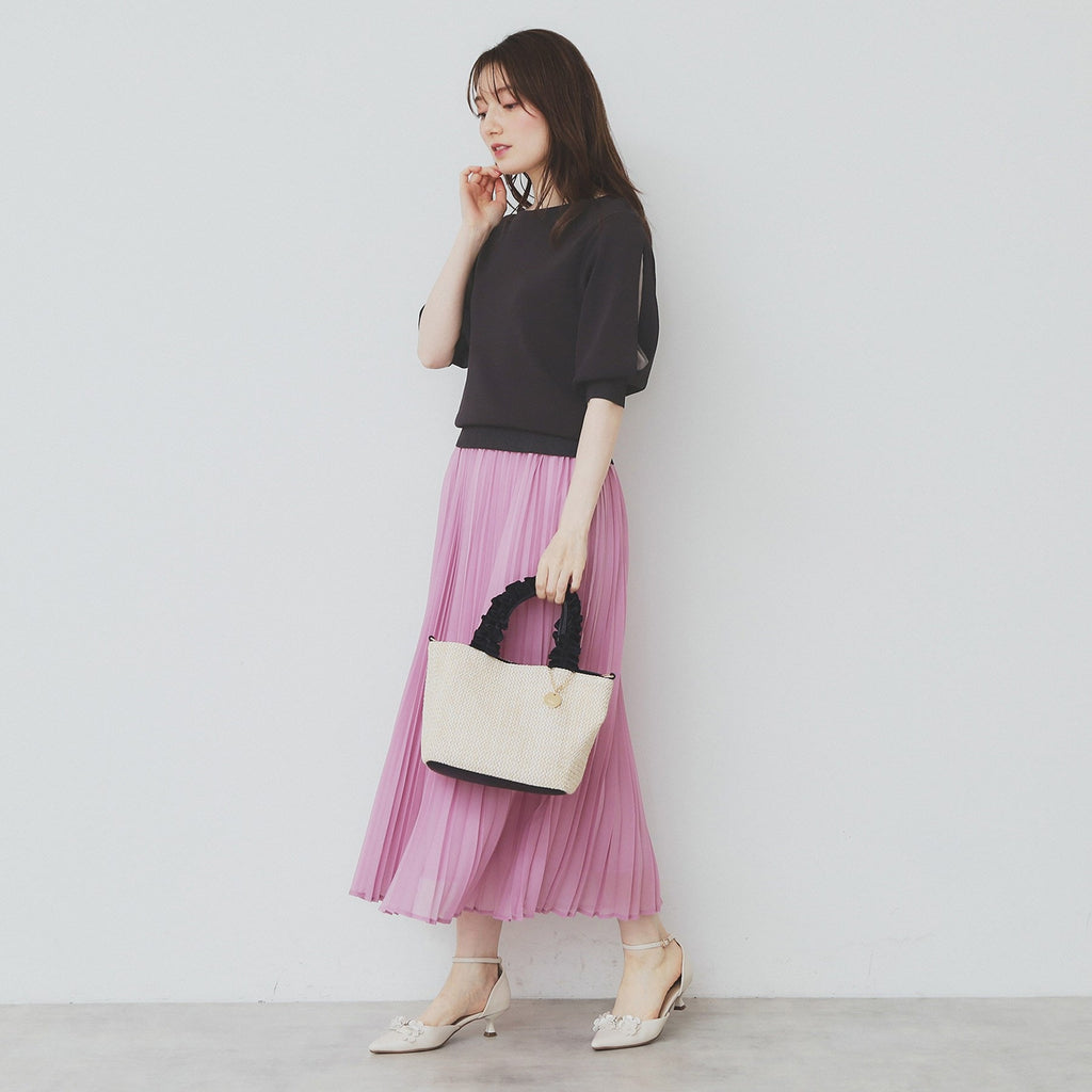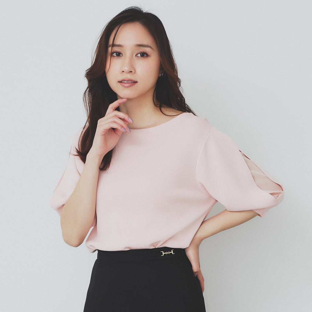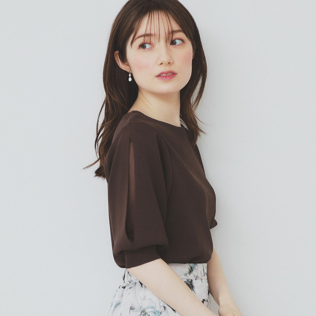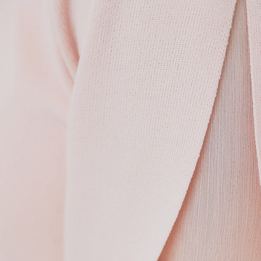 ・搭配有表面感的雪紡的包裹袖設計針織衫。