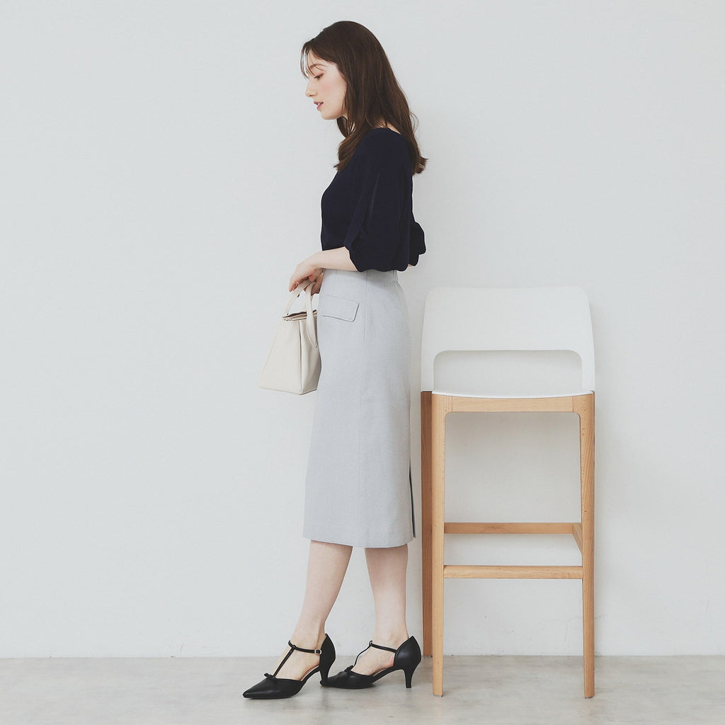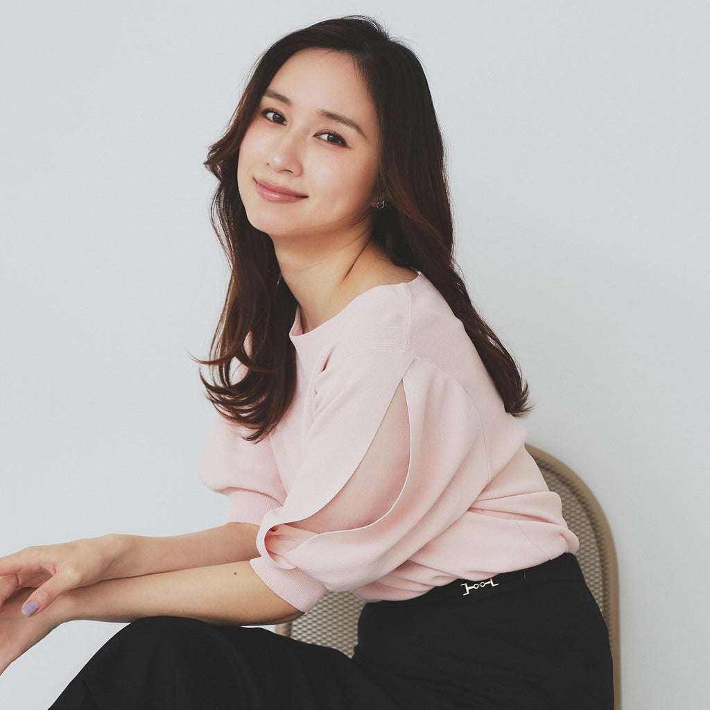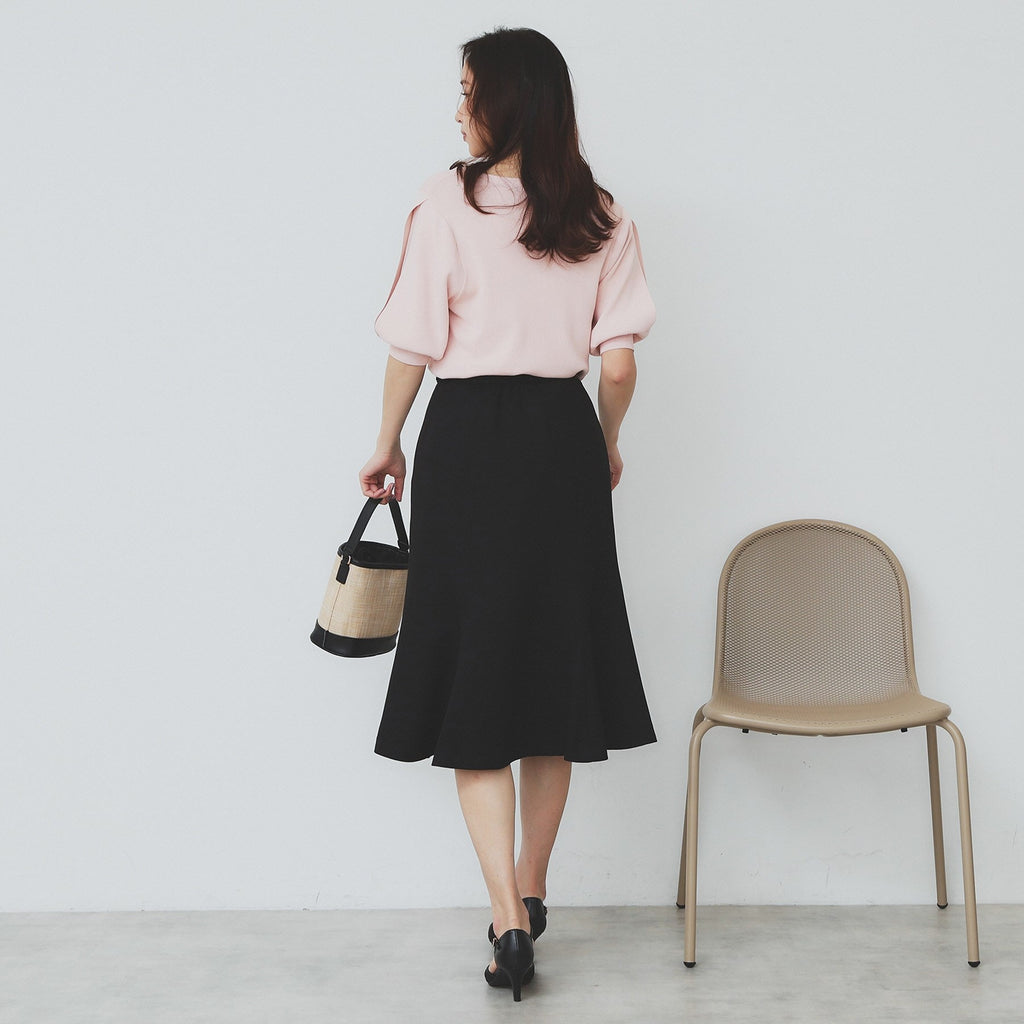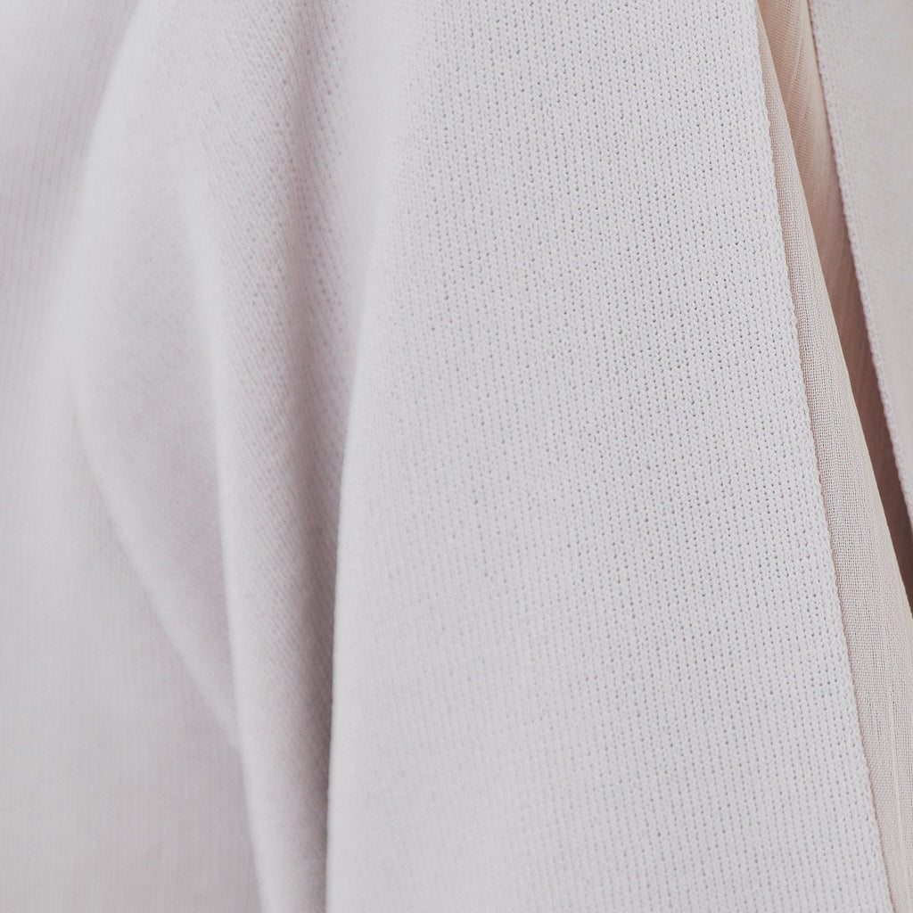 ・搭配有表面感的雪紡的包裹袖設計針織衫。