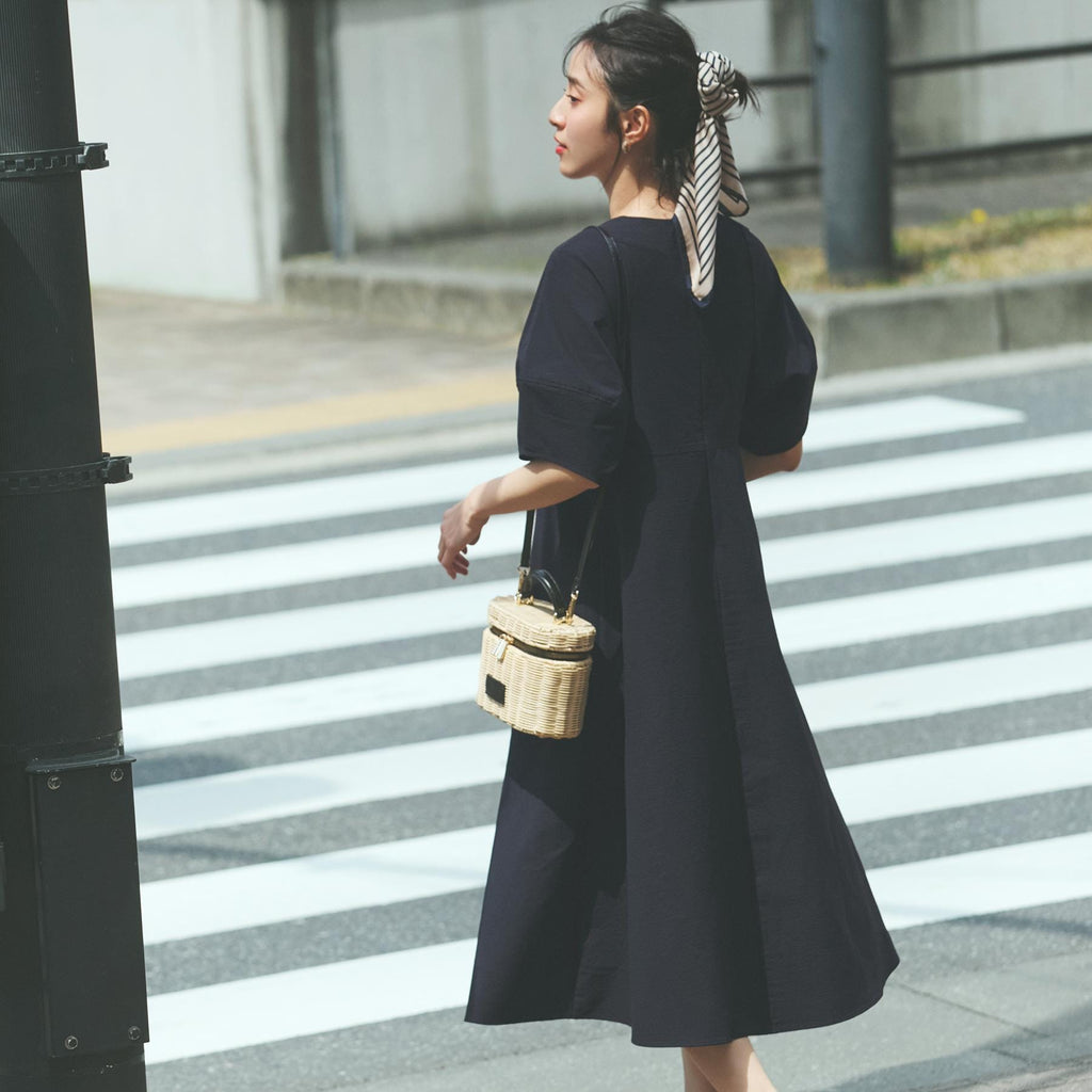 ・寬鬆的輪廓,搭配燈籠袖,單件即可完美穿搭的連衣裙。
