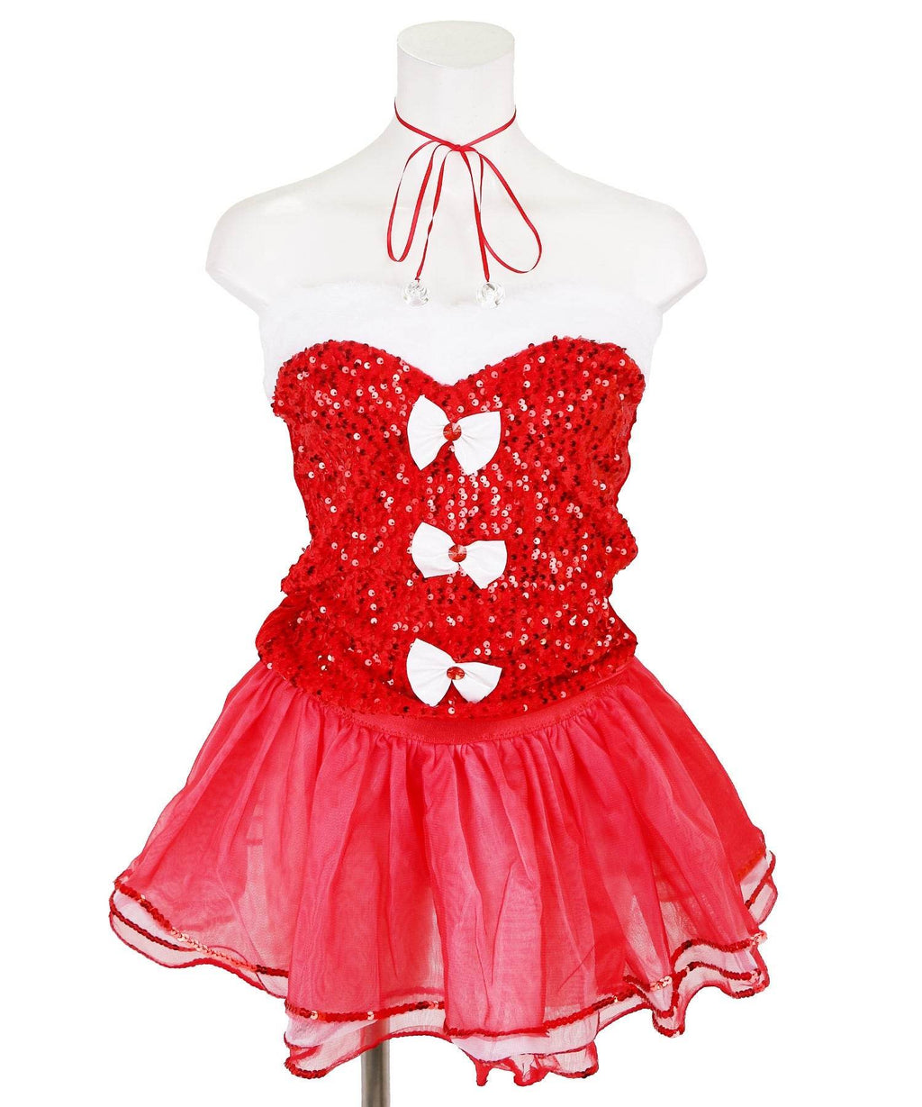 亮片無肩帶上衣×薄紗迷你裙套裝馴鹿×聖誕老人服裝7件套♪