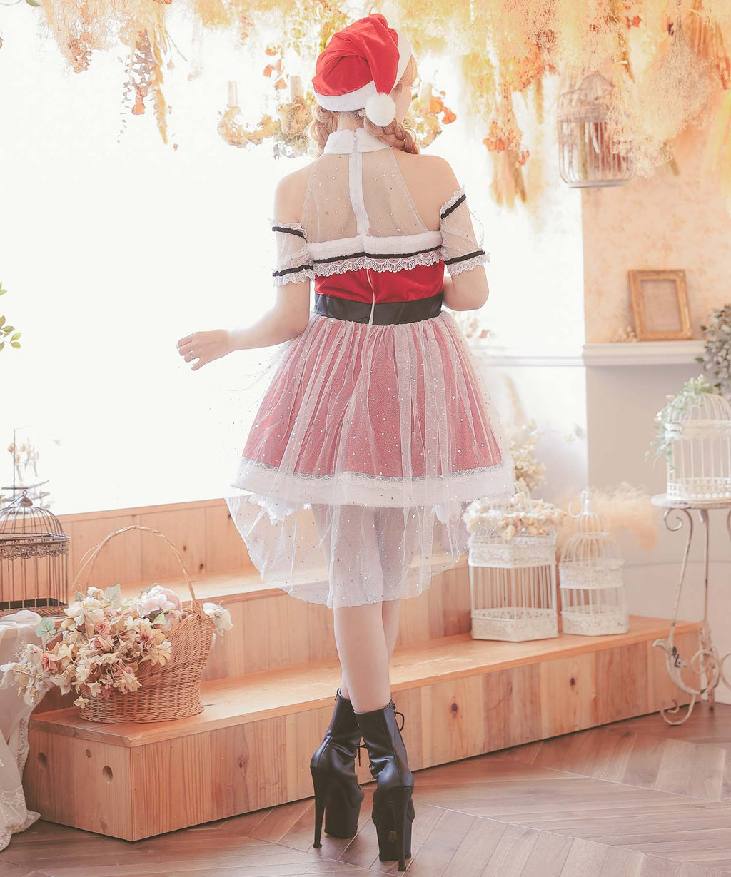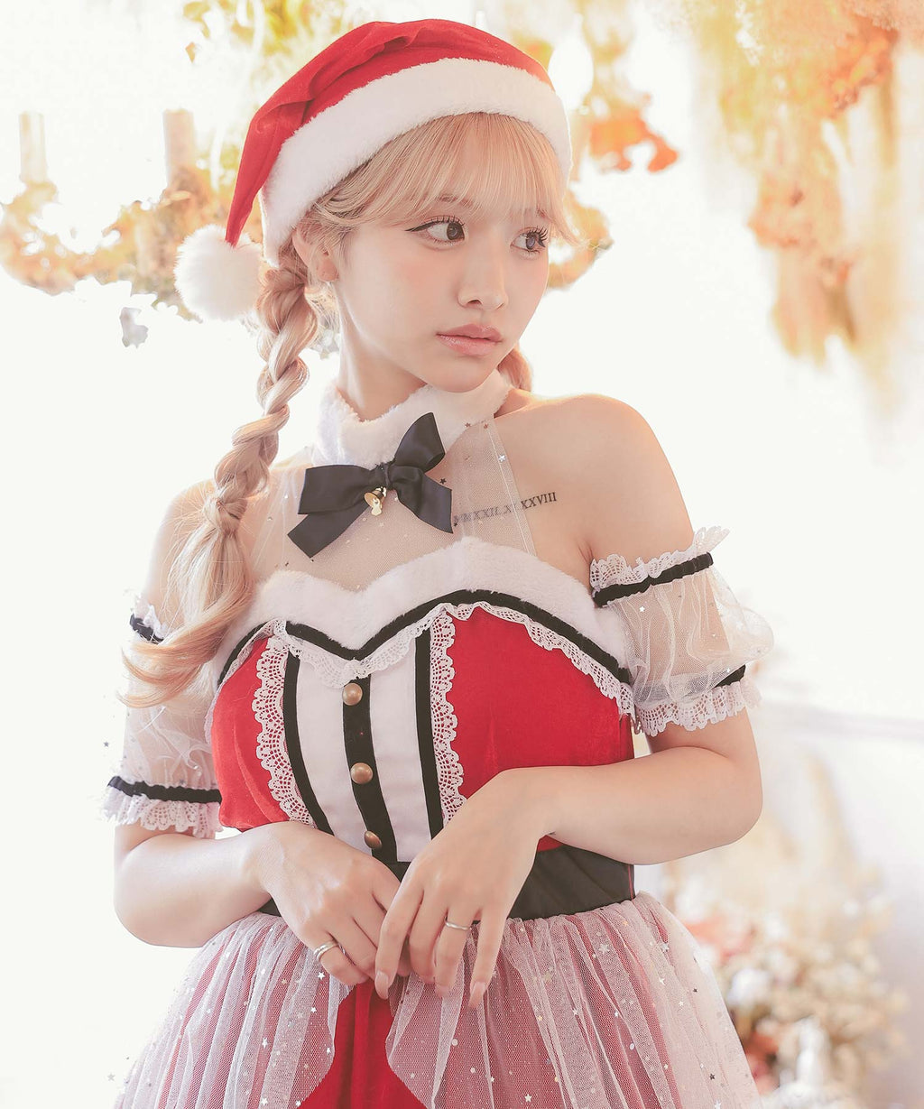Tika Tika Tika Santa Cos 3分套裝Glitter Tulle Lace Flare Skirt Classical Girly Royal Roare Roard Santa Cosplay [返回產品]