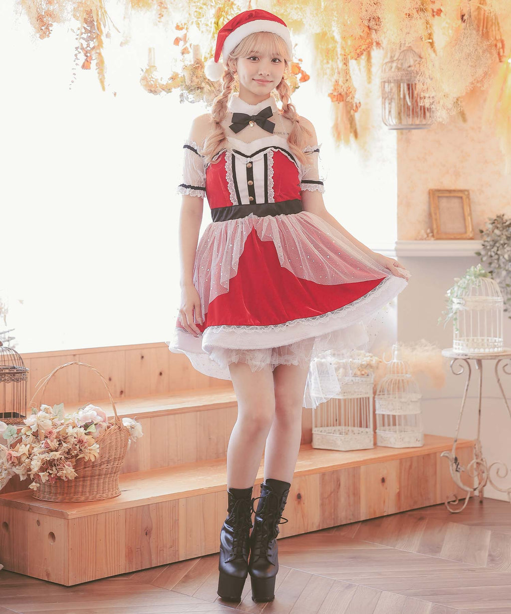 連衣裙+聖誕帽+袖子