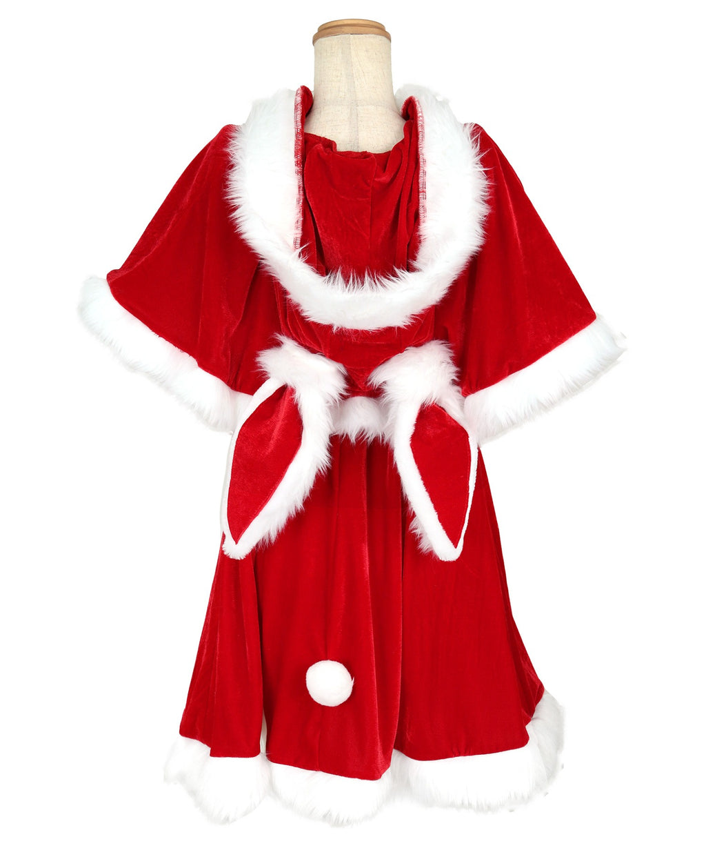 兔耳帽斗篷×無袖A字裙聖誕服裝4件套♪