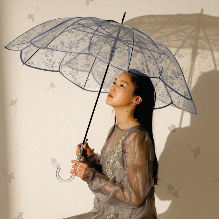 金木犀採用金色,銀木犀採用銀色的花朵滲線,展現華麗又可愛的大人風塑膠傘。